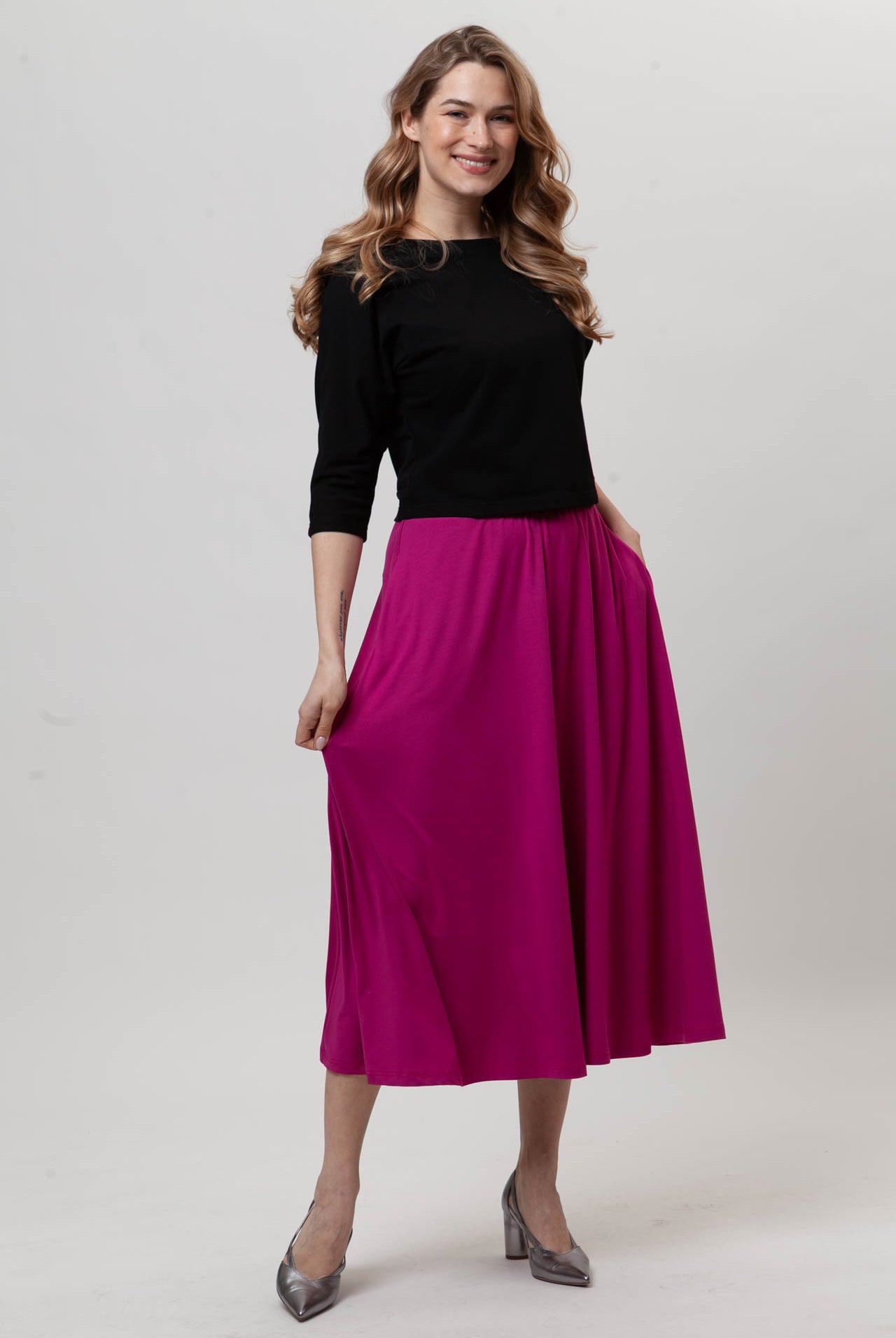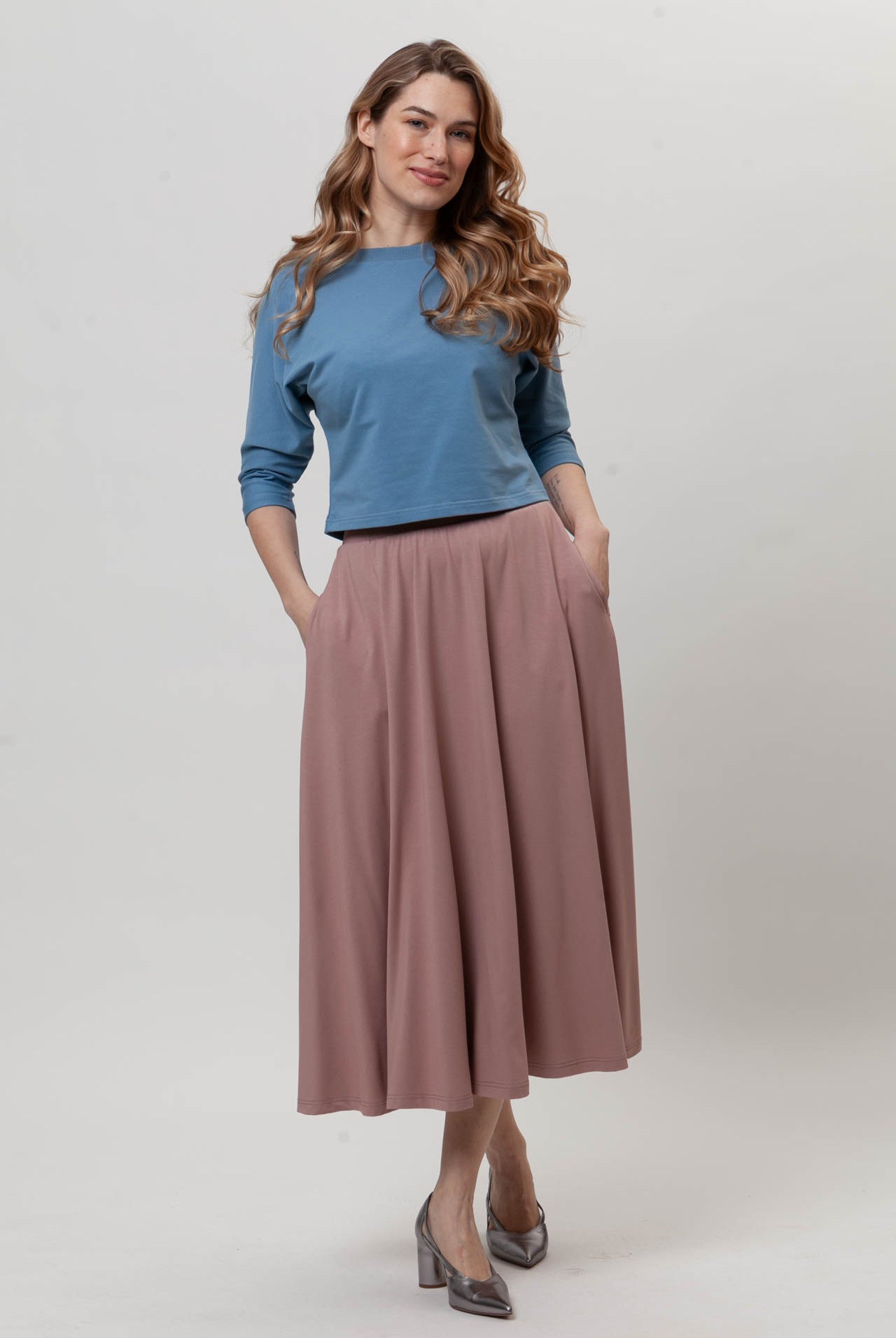 opiera się na wykorzystywaniu najwyższej jakości polskich dzianin, pochodzących od lokalnych dostawców, co minimalizuje ślad węglowy i wspiera rodzime rzemiosło. Dzięki transparentnemu procesowi szycia w naszej pracowni, dbamy o etyczne warunki pracy i środowisko, tworząc odzież, która łączy ekologię, wyjątkowy styl i komfort.