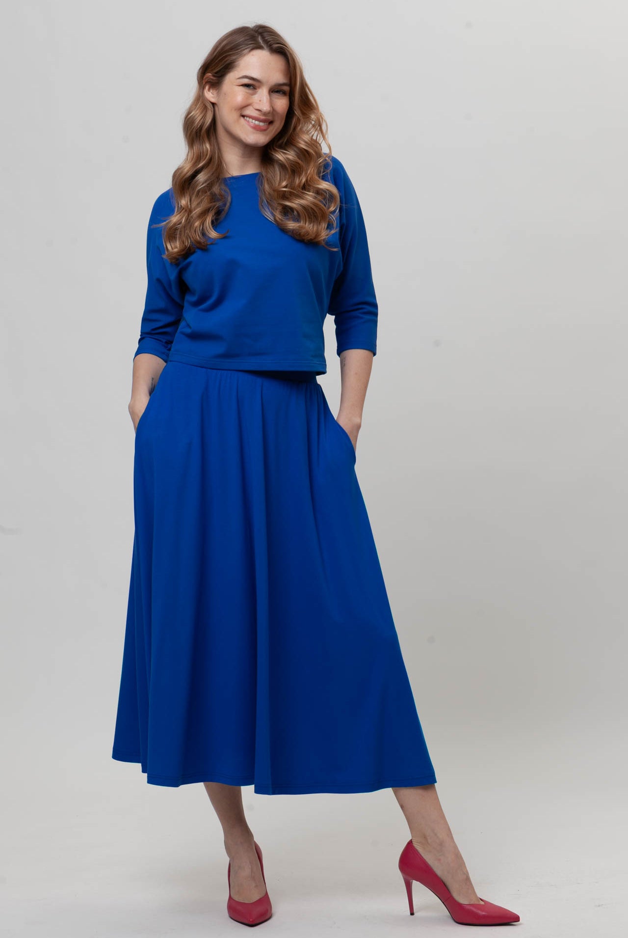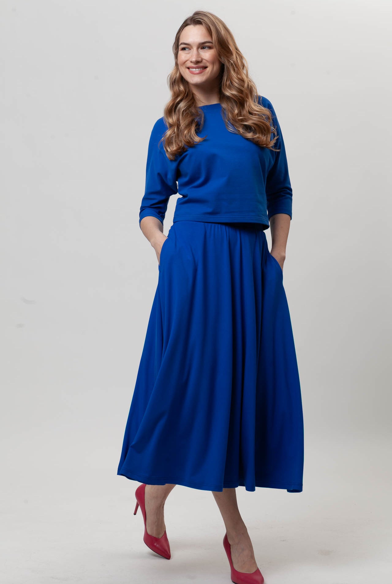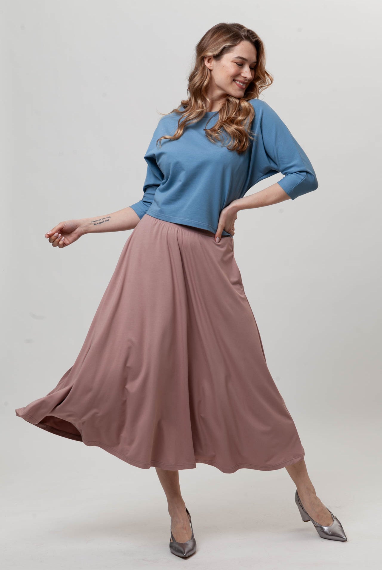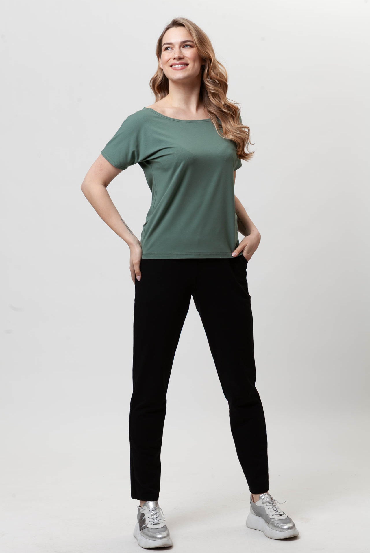 Wszystko świetnie się nosi. Kolory bez zmian mimo wielokrotnego prania. Bardzo wygodne ubrania, uniwersalne, i na co dzień i na okazję. Bardzo fajnie uszyte, dobra bawełna. Polecam