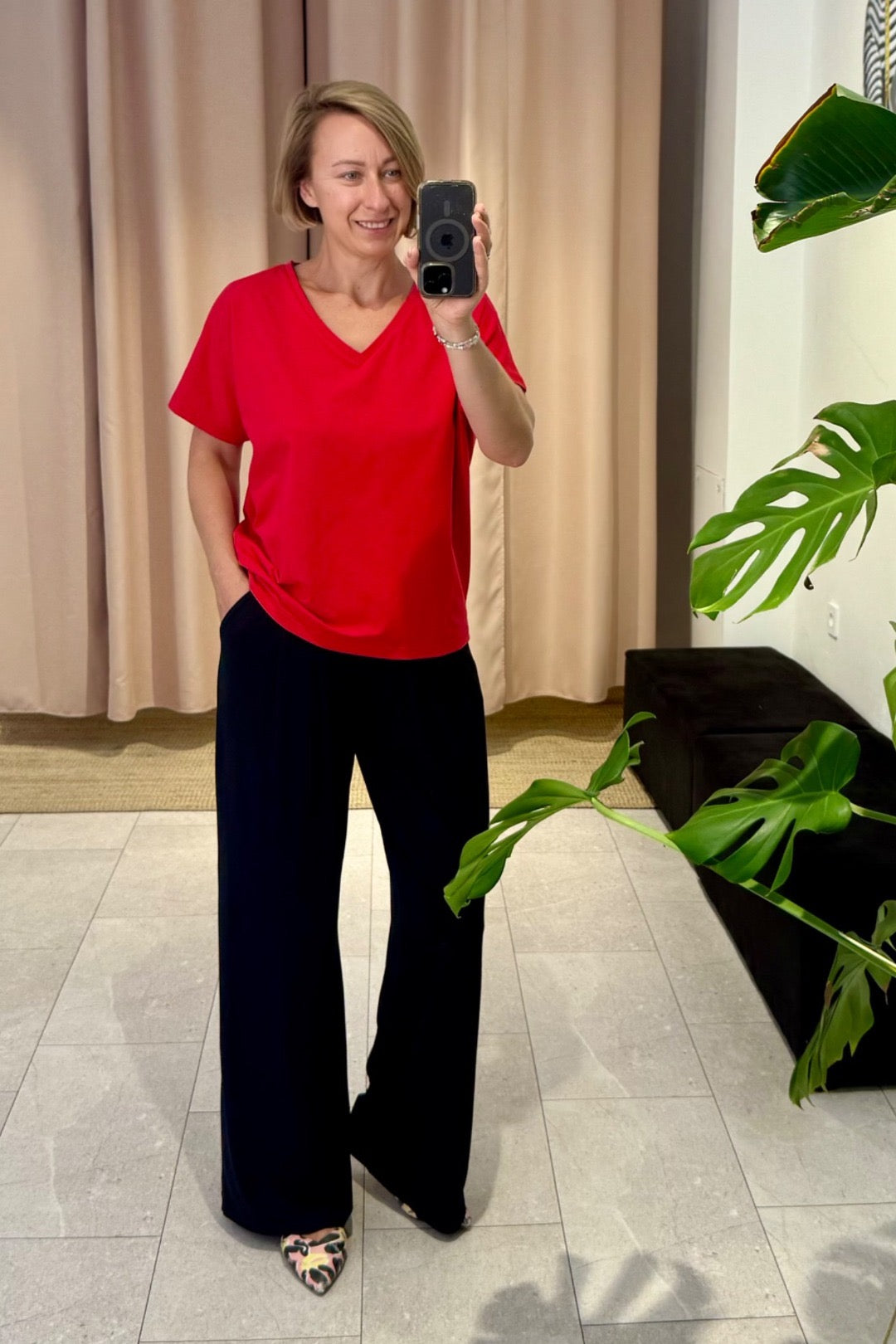 Bluzka DELIA – kobieca, bawełniana bluzka z dekoltem V i luźnym fasonem.Poznaj bluzkę DELIA – najnowszy projekt oparty na naszym bestsellerowym modelu ODELIA. To propozycja dla kobiet, które szukają połączenia wygody, kobiecego stylu i ponadczasowego kroju. Bluzka została uszyta z wysokiej jakości bawełny, która jest przyjemna w dotyku, oddychająca i delikatna dla skóry.Luźny fason zapewnia pełną swobodę ruchów i świetnie sprawdza się w codziennych stylizacjach. Krótkie rękawy i subtelny dekolt w serek (V-neck) dodają bluzce lekkości i kobiecego uroku. To idealna opcja zarówno do jeansów, spodni materiałowych, jak i spódnic – świetnie wygląda w wersji na luzie, jak i z dodatkami w stylu smart casual.Bluzka DELIA to nie tylko modny wygląd, ale także funkcjonalność. Doskonale sprawdzi się w sezonie wiosna–lato, ale dzięki uniwersalnemu krojowi możesz nosić ją przez cały rok – wystarczy dobrać odpowiednie dodatki.Najważniejsze cechy: