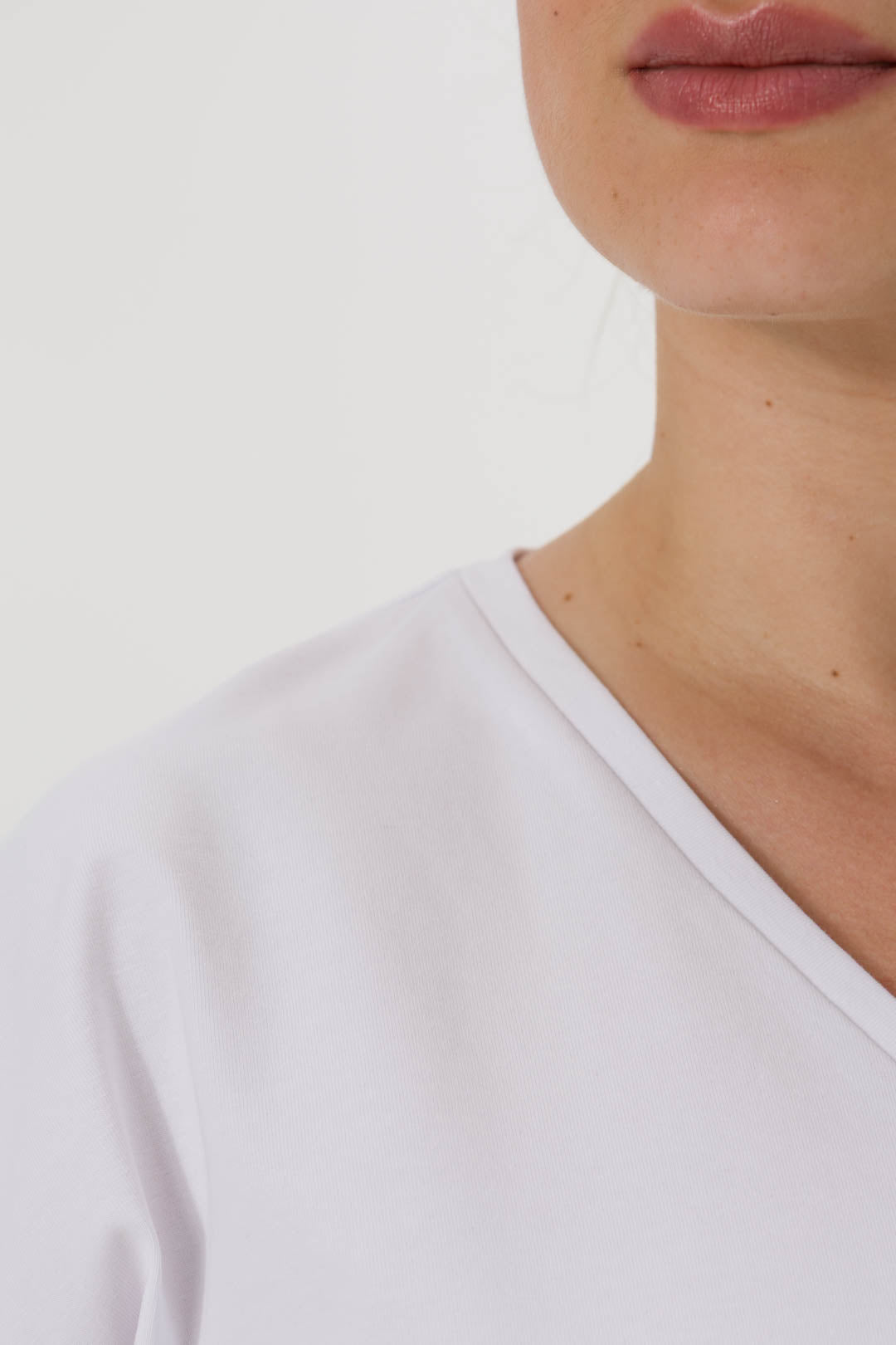- Bluzka DELIA to połączenie komfortu i kobiecego stylu. Luźny fason, wygodny krój i dekolt w kształcie litery V czynią ją idealnym wyborem na co dzień. Uszyta z miękkiej, oddychającej bawełny.