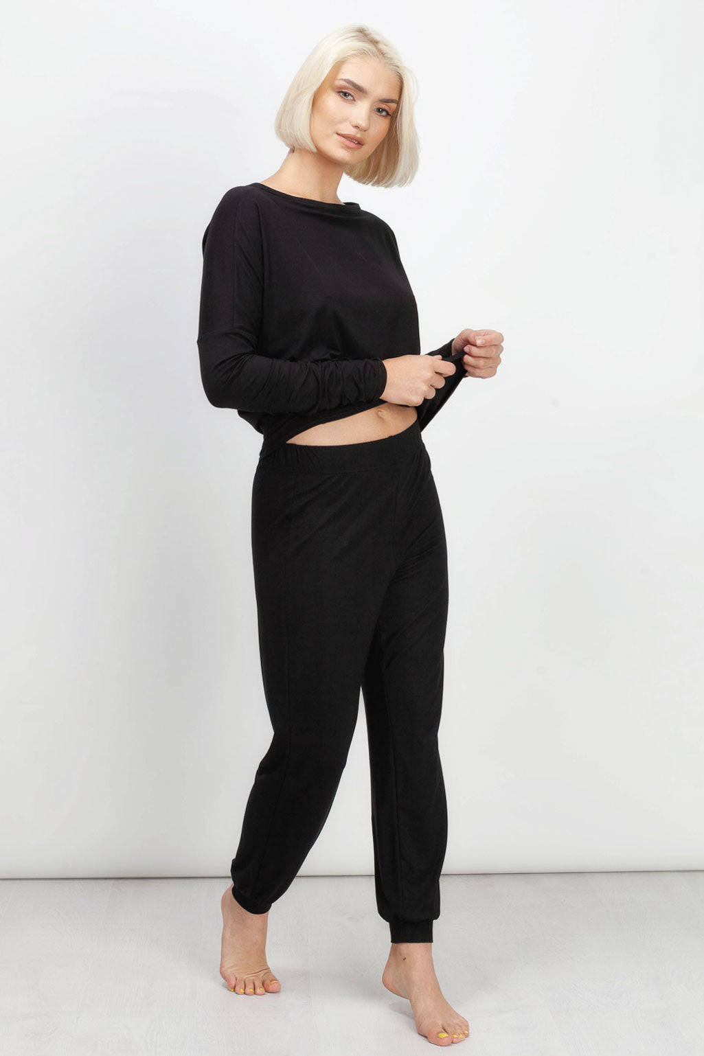 W pasie umieściliśmy elastyczną gumę, która dopasowuje się do sylwetki bez ucisku, a nogawki zakończone mankietem zapobiegają podwijaniu się podczas snu.