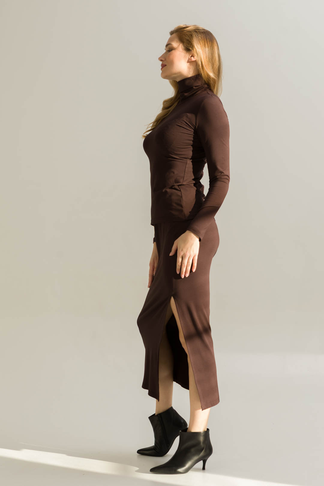 Klasyczny, dopasowany golf to element, którego nie może zabraknąć w żadnej garderobie. Nasz model został uszyty z wysokiej jakości dzianiny wiskozowej, która jest miękka, elastyczna i przyjemna w dotyku. Dzięki temu idealnie dopasowuje się do sylwetki, gwarantując wygodę przez cały dzień.