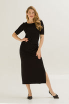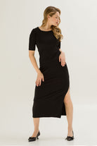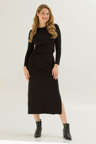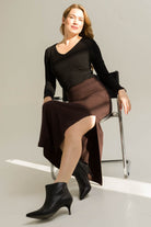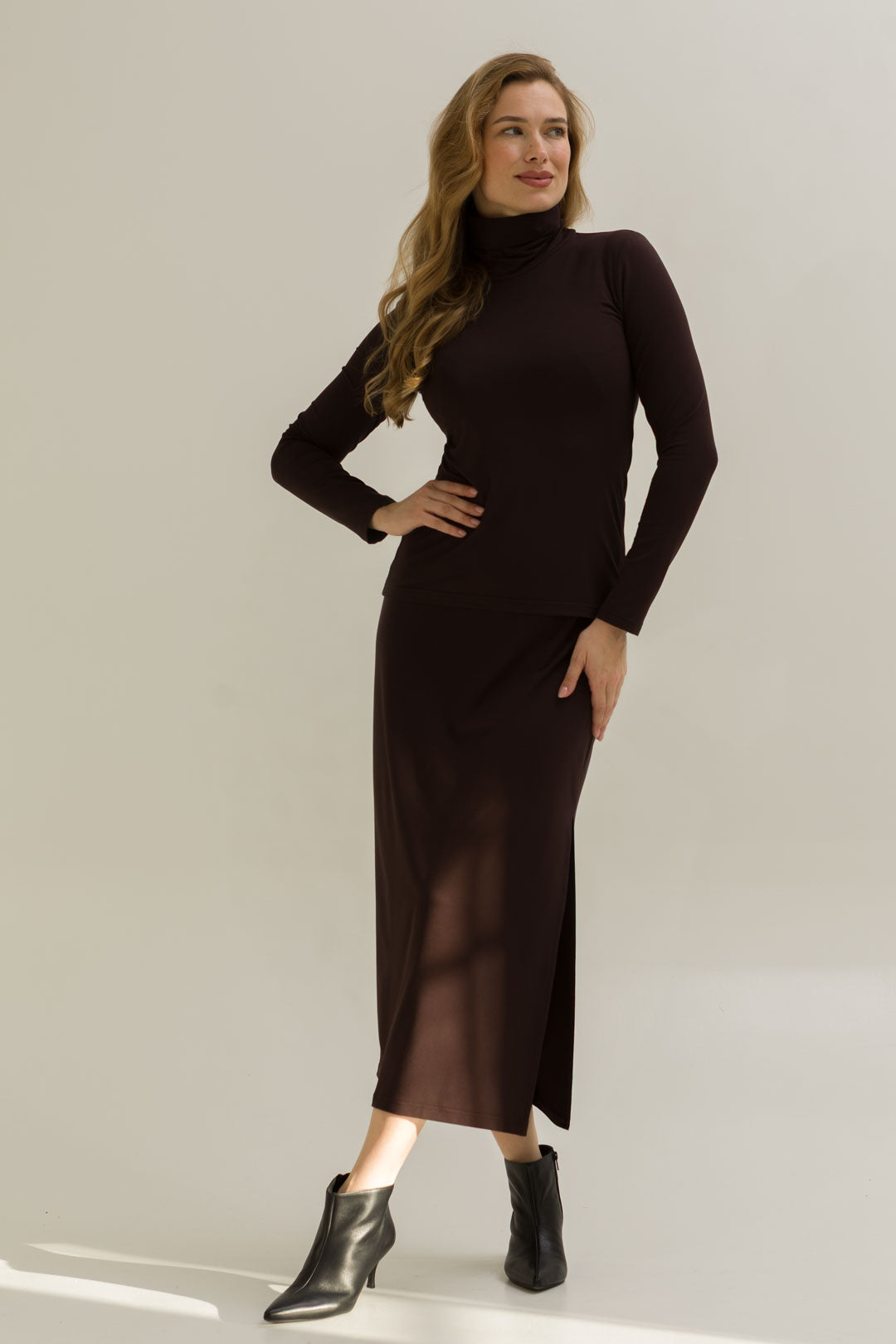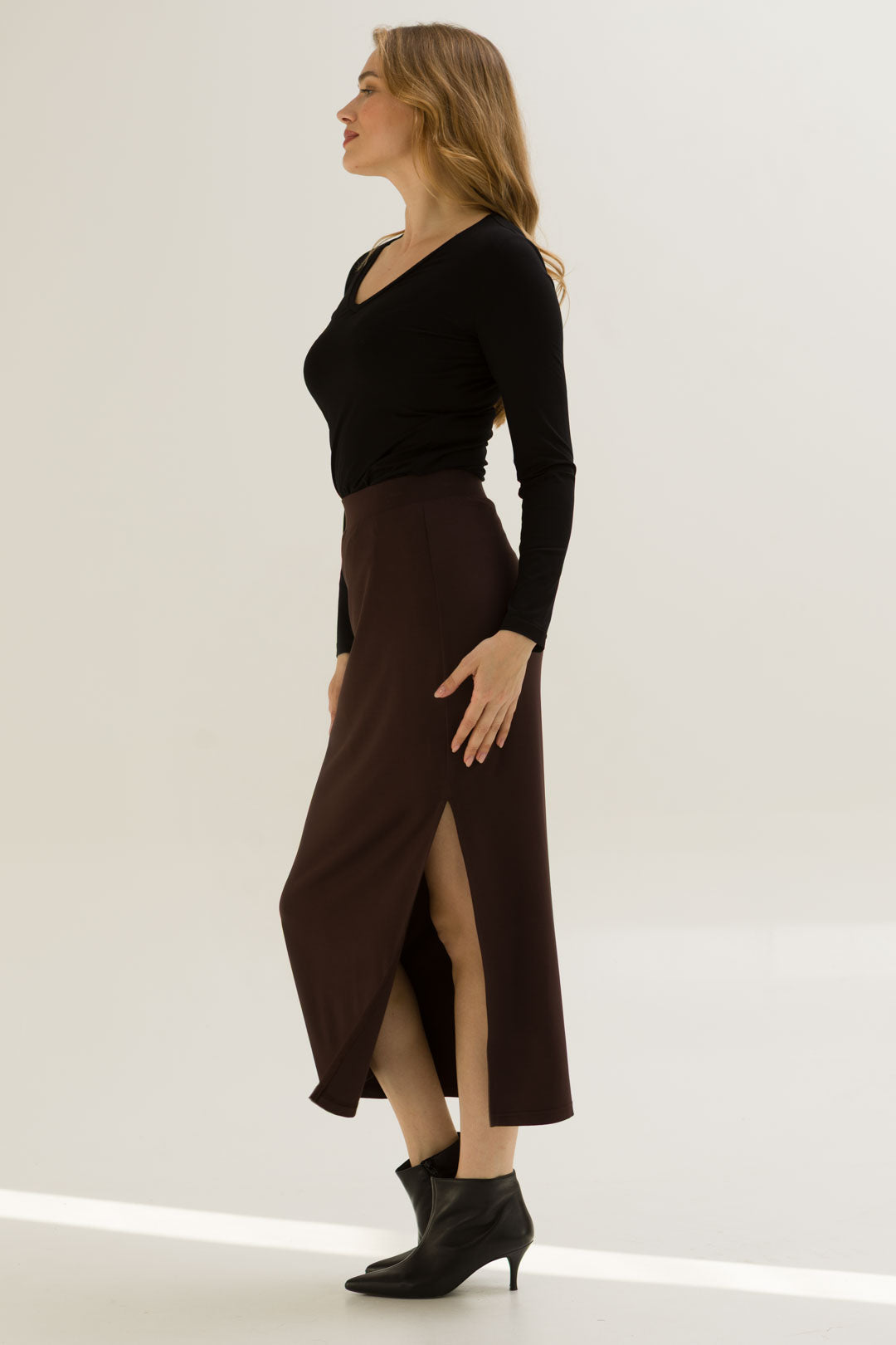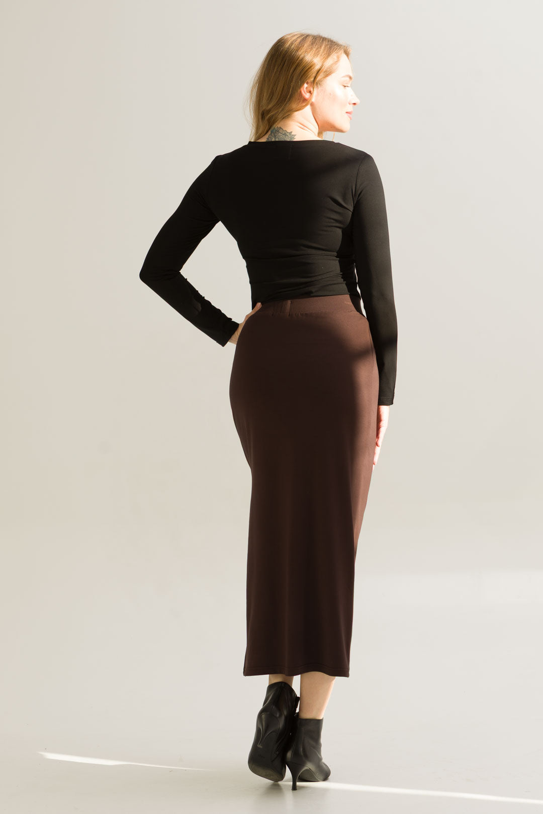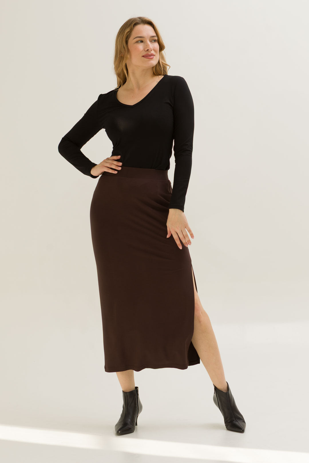 Spódnica INA to esencja kobiecego stylu i subtelnej elegancji. Uszyta z miękkiej, przyjemnej w dotyku wiskozy, delikatnie otula ciało i pięknie podkreśla sylwetkę. Jej prosty, dopasowany krój wspaniale wydłuża nogi, a rozporek z boku subtelnie odsłania nogę przy każdym ruchu, dodając lekkości, swobody i pewności siebie.