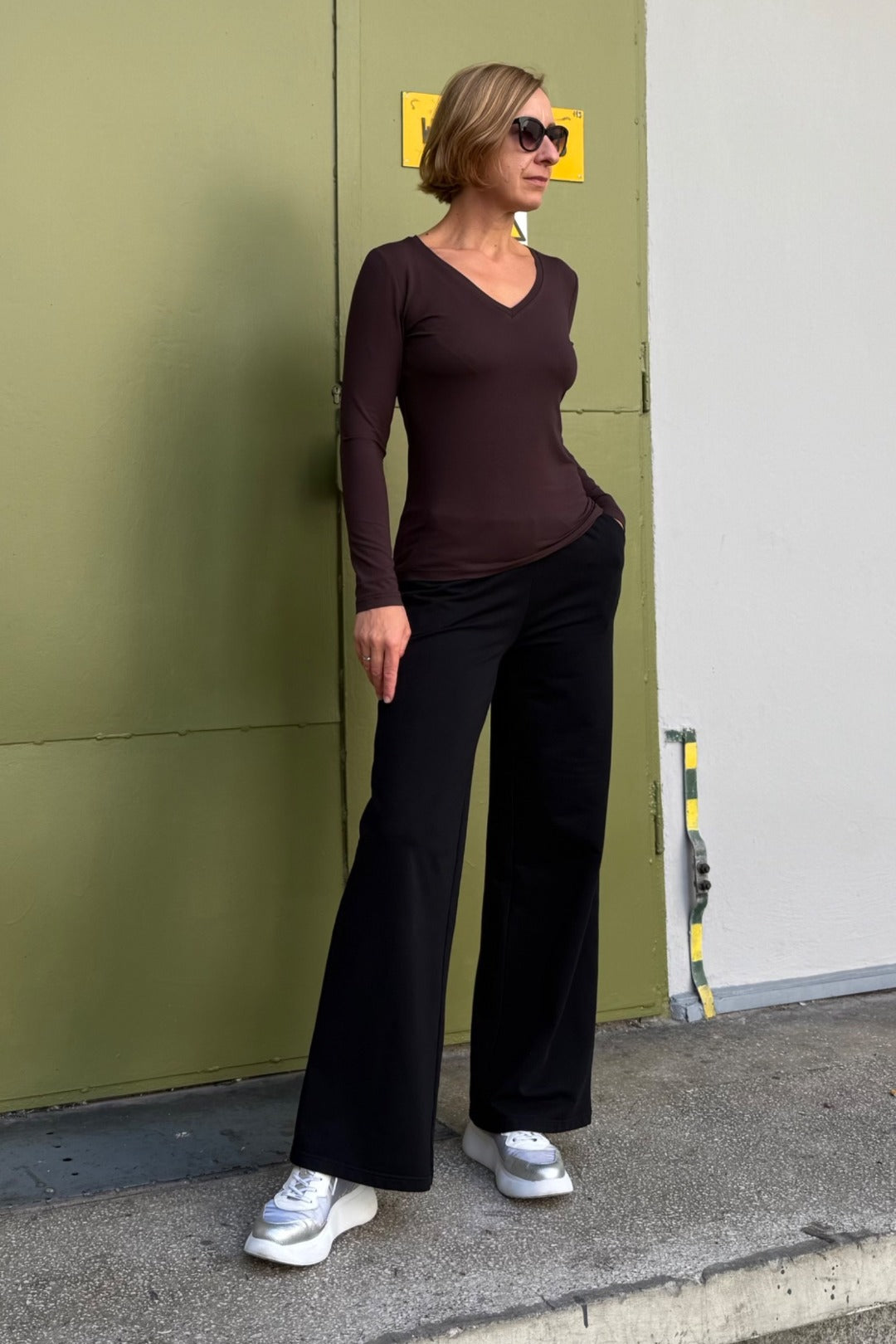 Spodnie EMMA to połączenie minimalistycznej formy z maksymalnym komfortem noszenia. Uszyte z miękkiej dzianiny bawełnianej, pięknie układają się na sylwetce i są przyjemne w dotyku - idealne na co dzień, do pracy czy na luźne spotkanie.