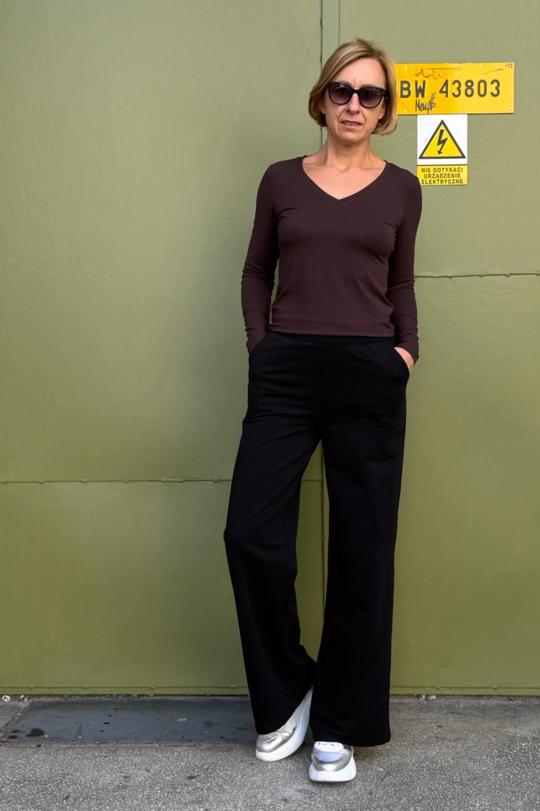 - Proste, długie nogawki - optycznie wydłużają sylwetkę i dodają elegancji.