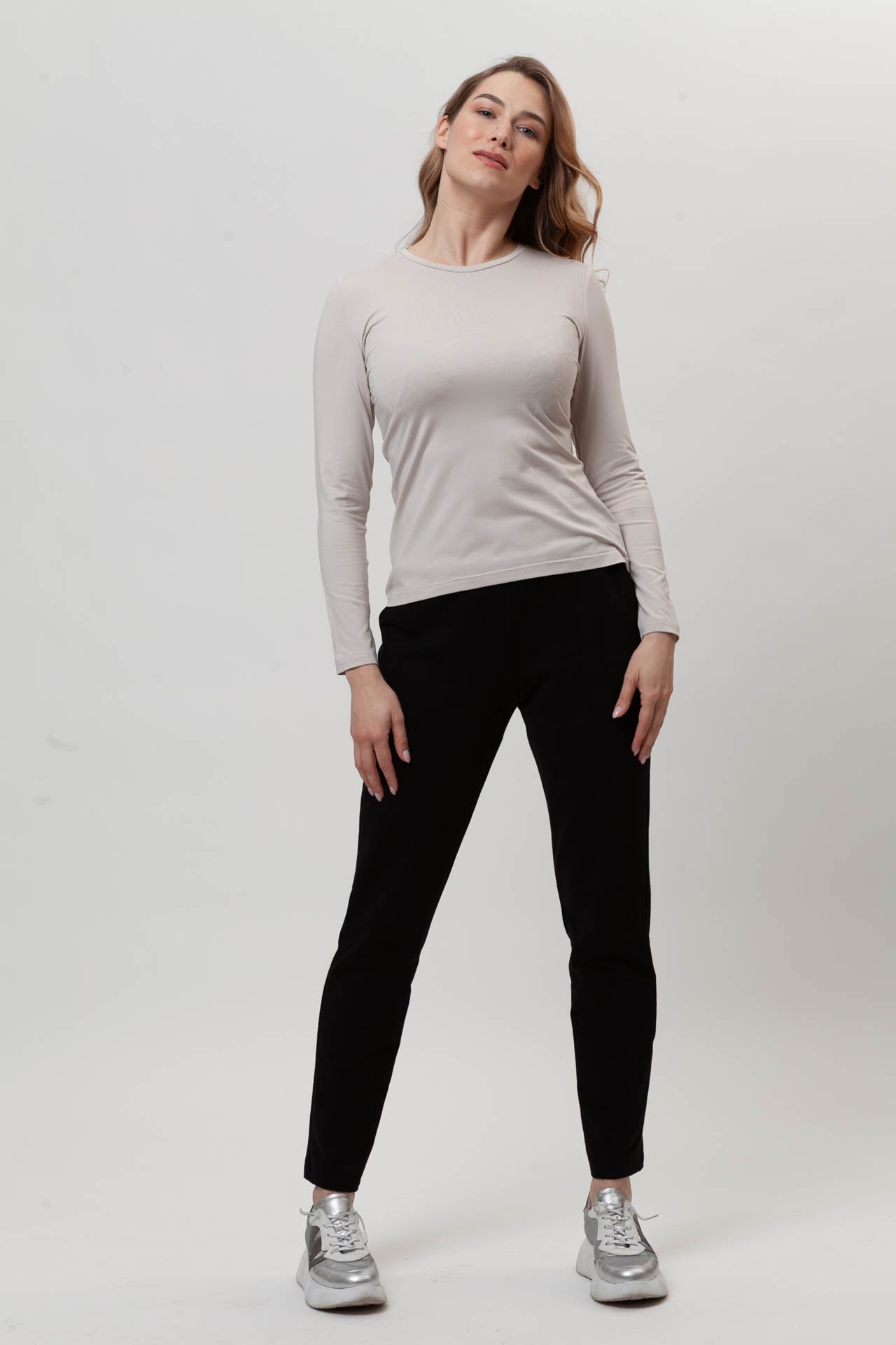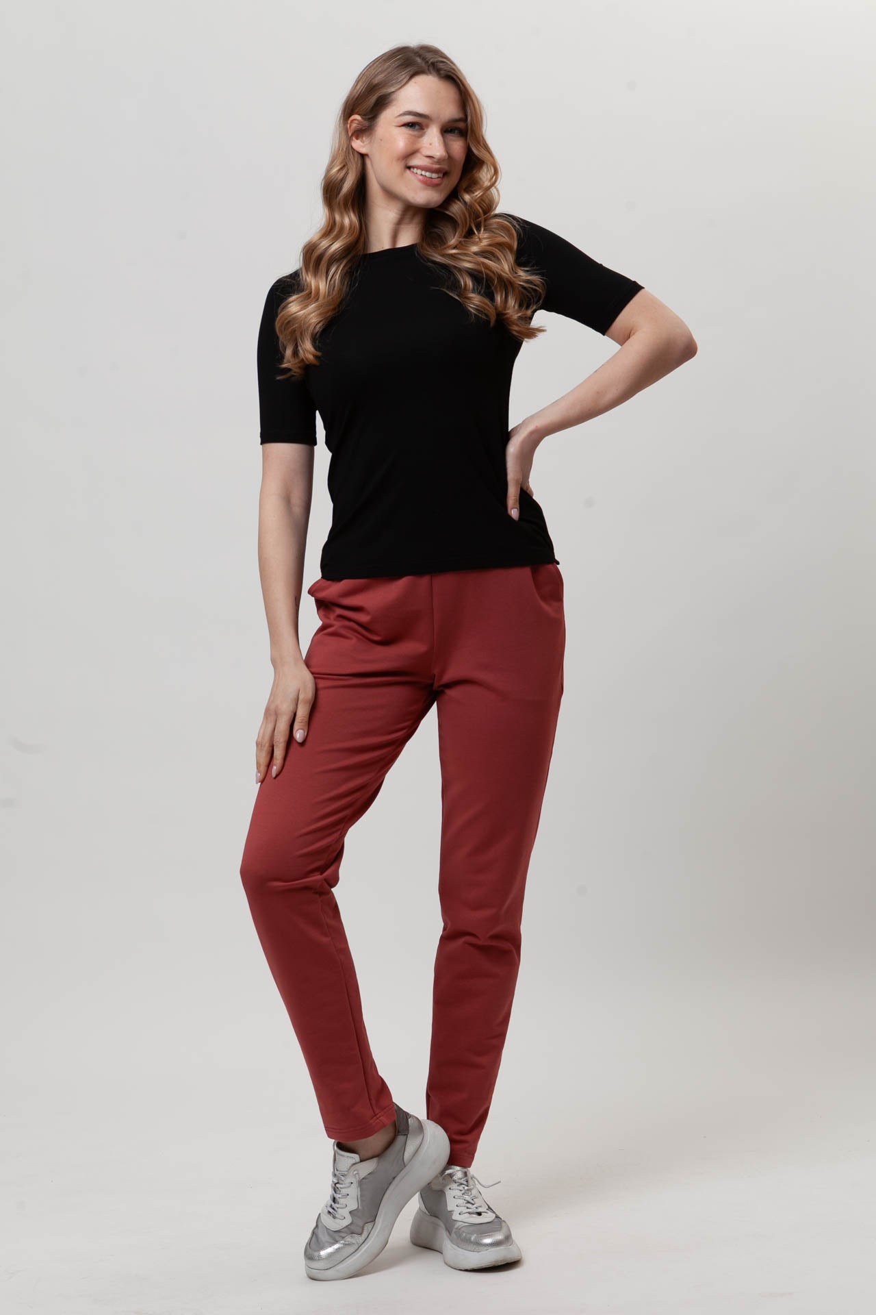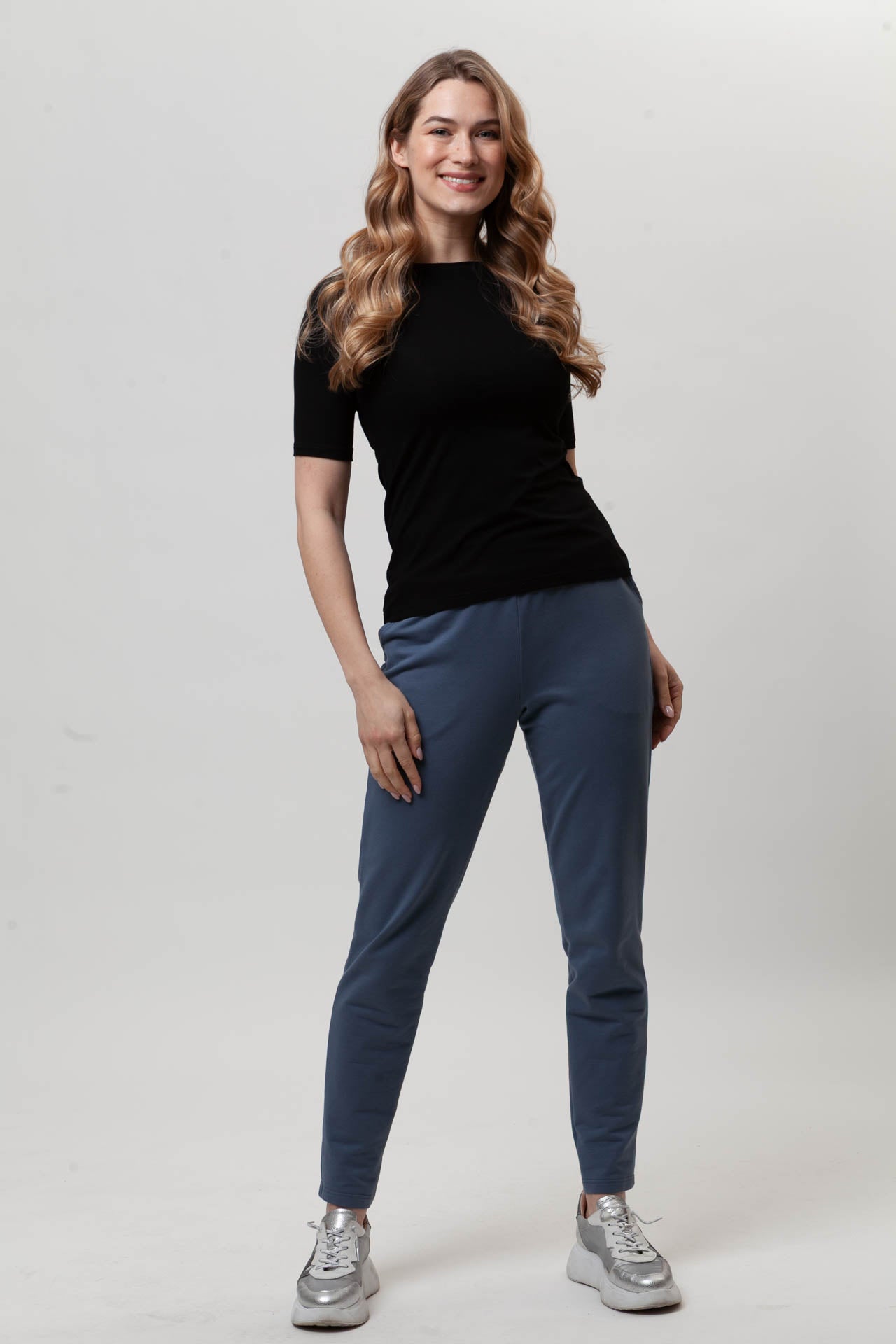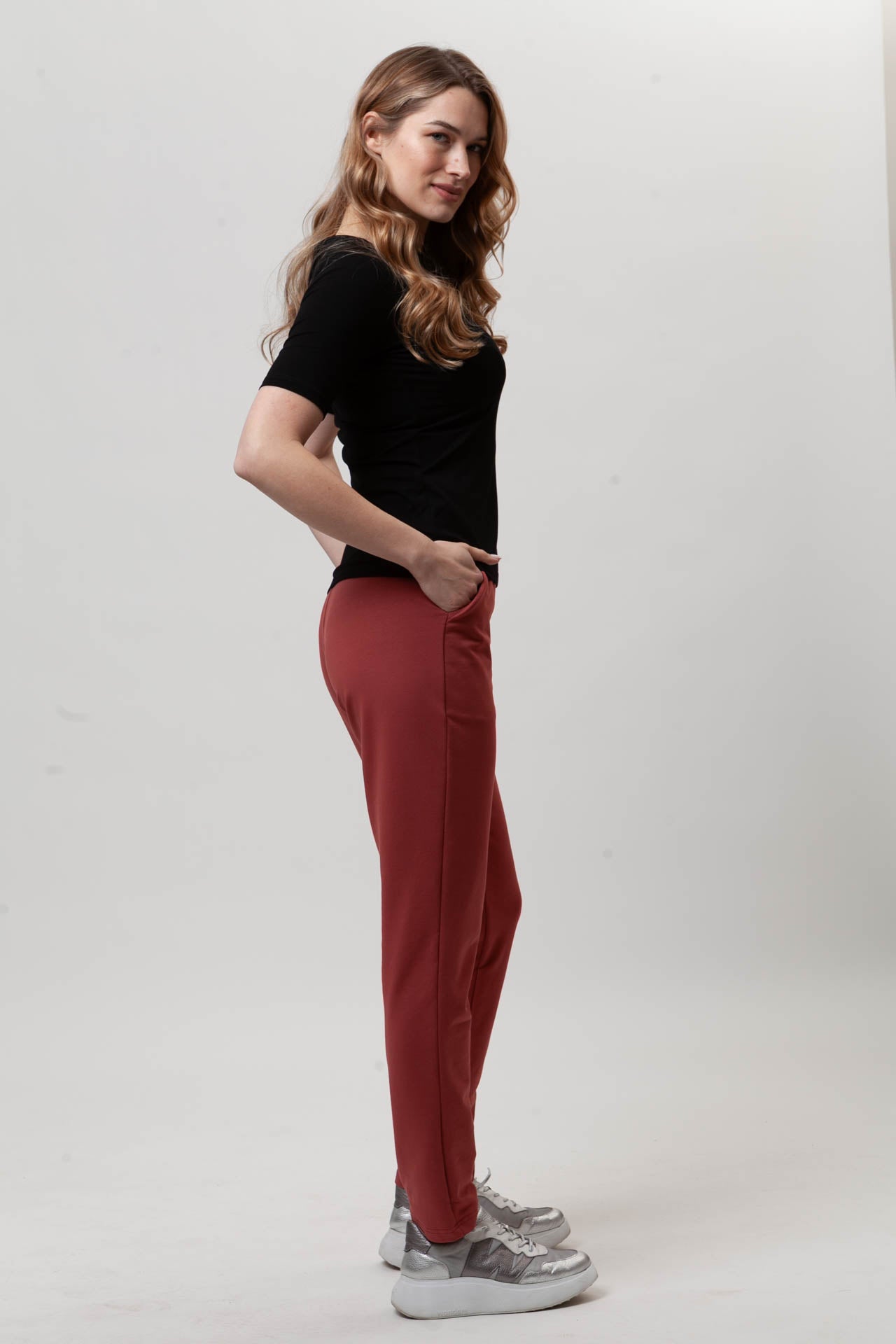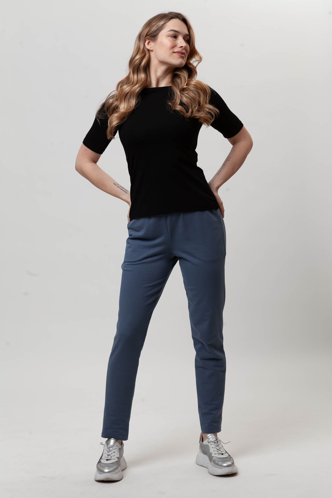 Spodnie FIT to wygodny, codzienny model, który łatwo dopasowuje się do sylwetki. Uszyte z miękkiej, oddychającej bawełny z dodatkiem elastanu (97% bawełna, 3% elastan), zapewniają komfort noszenia przez cały dzień. Dopasowana nogawka dobrze układa się na nodze, a możliwość samodzielnej regulacji długości pozwala dopasować spodnie do wzrostu. Elastyczny pas z gumą nie uciska i rozciąga się do 8 cm. Subtelna kieszeń i prosty fason sprawiają, że spodnie FIT świetnie sprawdzą się w codziennych, swobodnych stylizacjach.