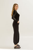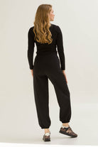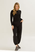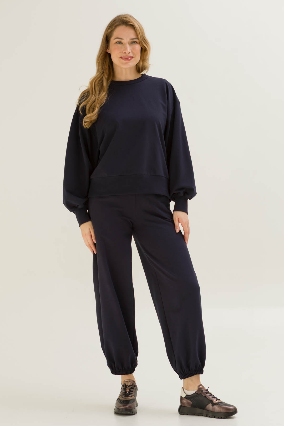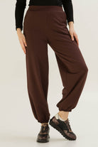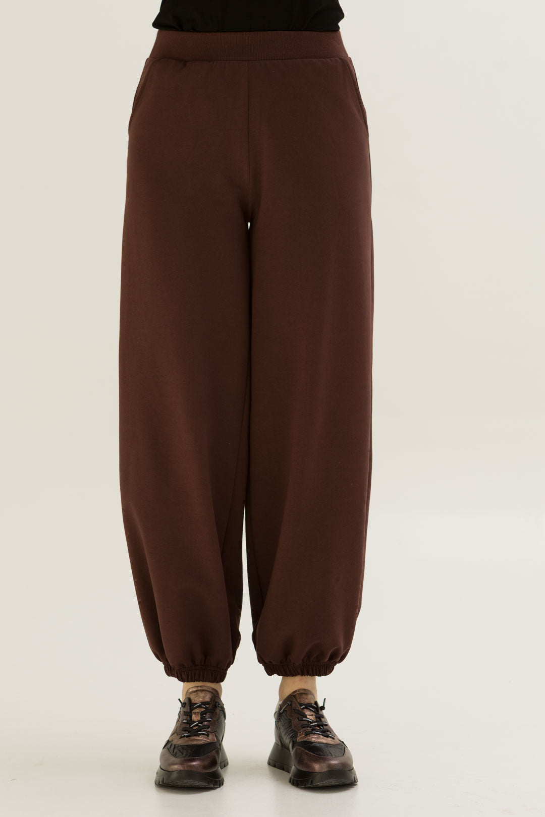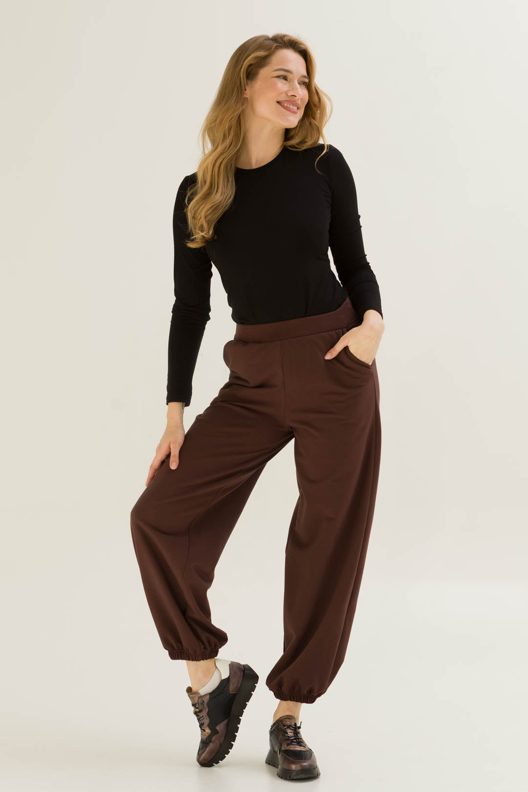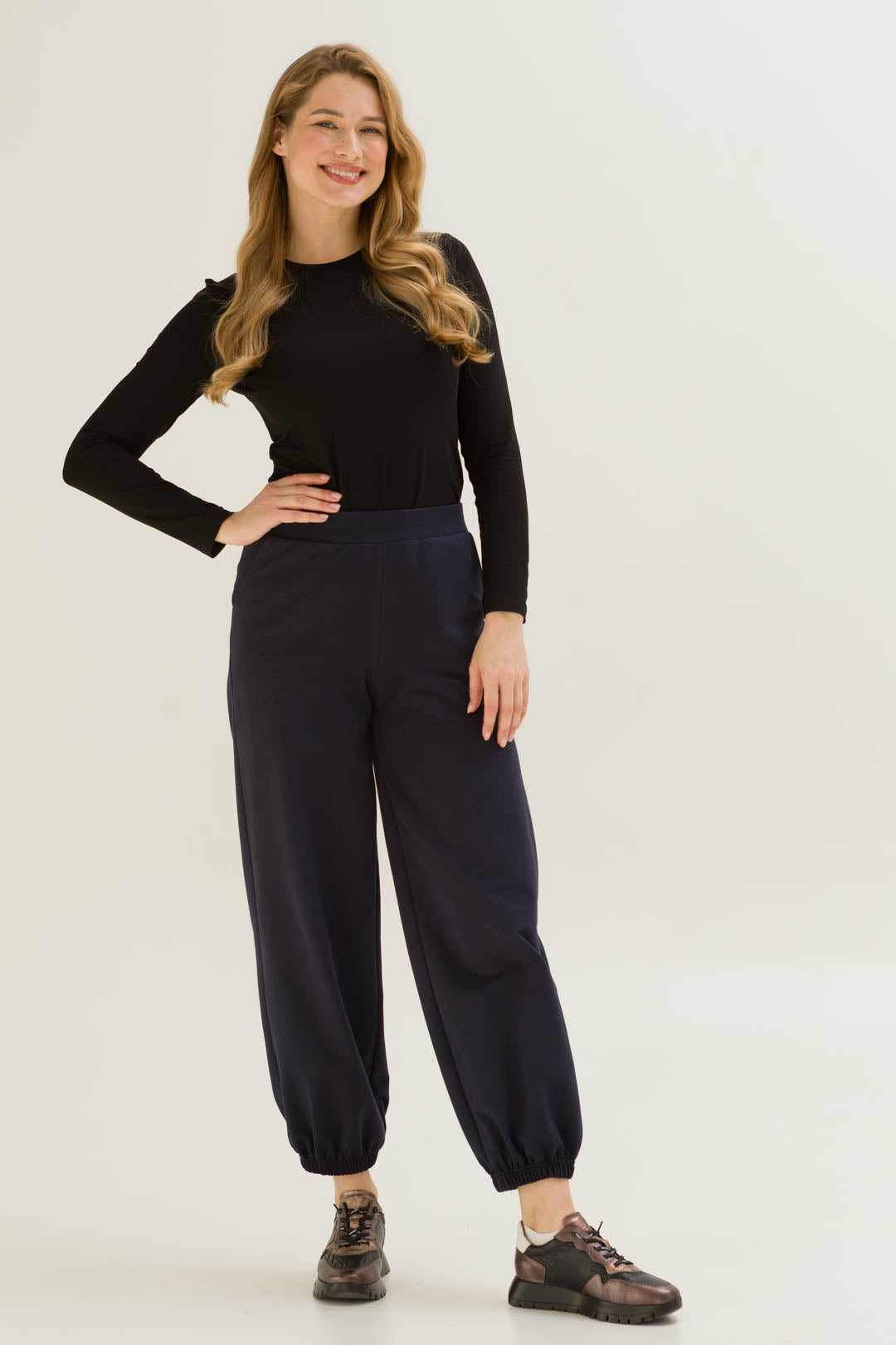 W pasie zastosowano ściągacz z prążkowanej dzianiny, pod którym ukryta jest elastyczna guma. Dzięki temu spodnie idealnie dopasowują się do figury, nie uciskając i nie zsuwając się podczas noszenia. To rozwiązanie, które gwarantuje wygodę niezależnie od sytuacji – zarówno w ruchu, jak i podczas odpoczynku.