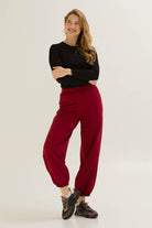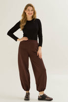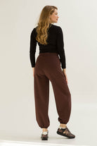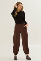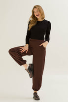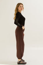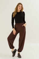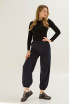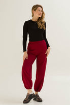 Nogawki zakończone gumką nadają spodniom KORA nowoczesny, lekko sportowy charakter i pozwalają na swobodną zabawę proporcjami – możesz je zestawić zarówno z trampkami, jak i z cięższymi butami czy botkami. Kieszenie boczne dodają im funkcjonalności i luzu, czyniąc z nich idealny wybór na każdy dzień.