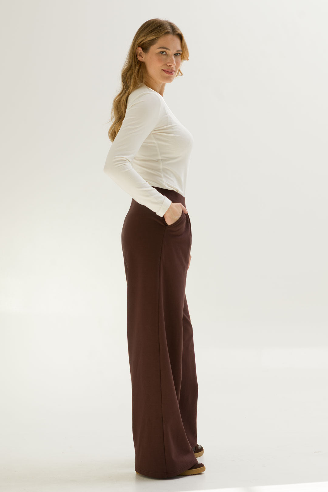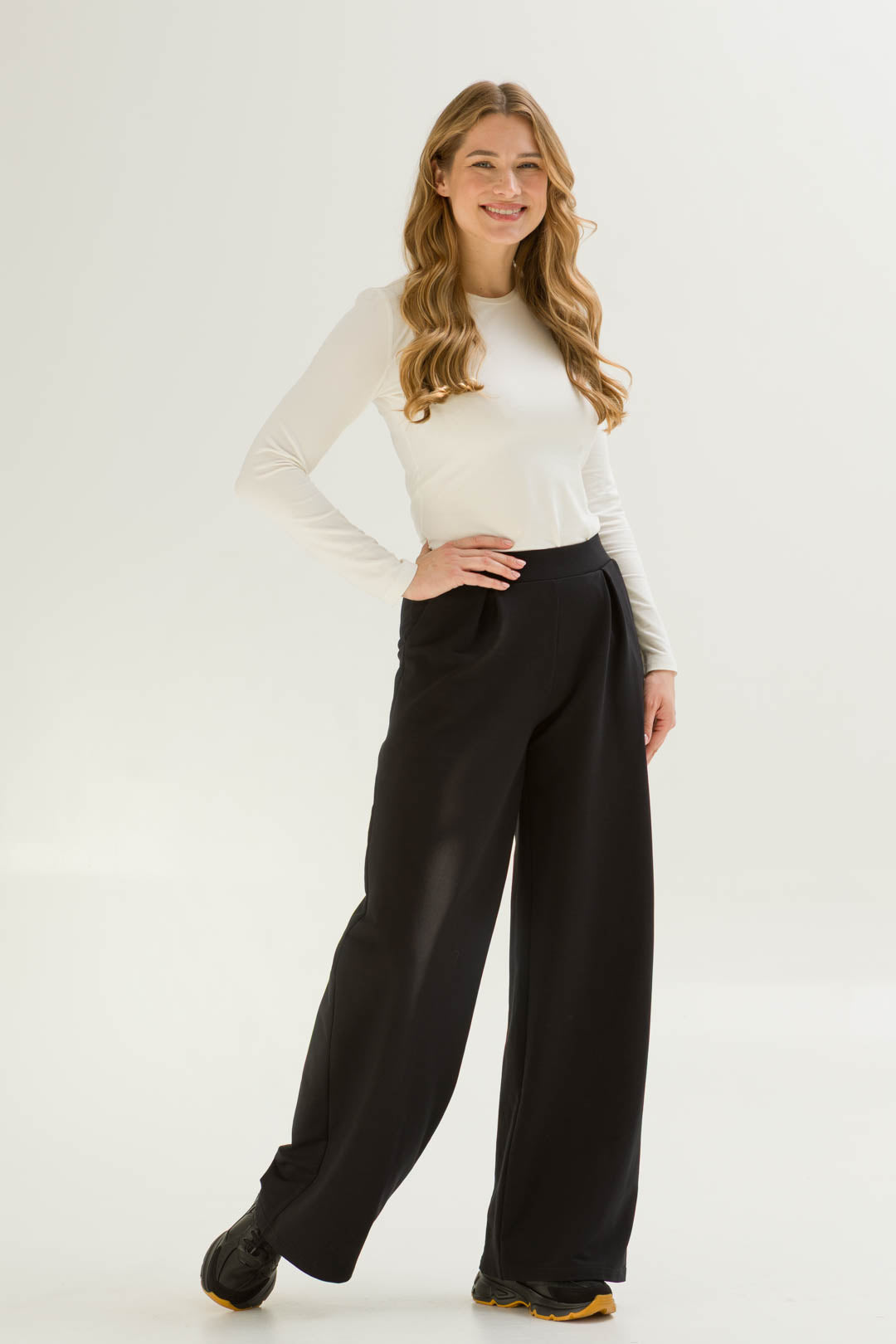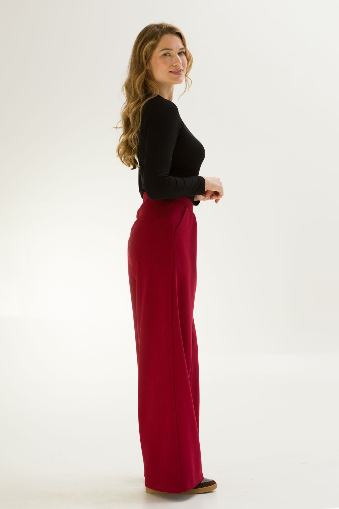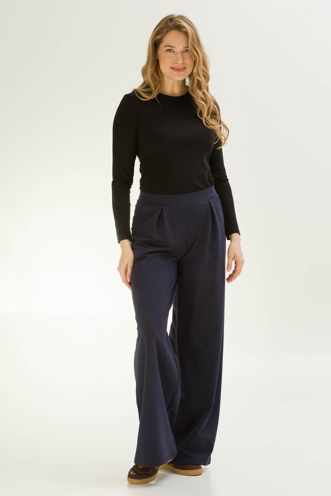 • Spodnie LEA to idealny wybór dla kobiet, które cenią klasyczną formę w nowoczesnym wydaniu. Szerokie, proste nogawki optycznie wysmuklają sylwetkę, a kontrafałda z przodu dodaje elegancji i zapewnia więcej swobody w biodrach. To fason, który łączy wygodę z subtelną kobiecością.