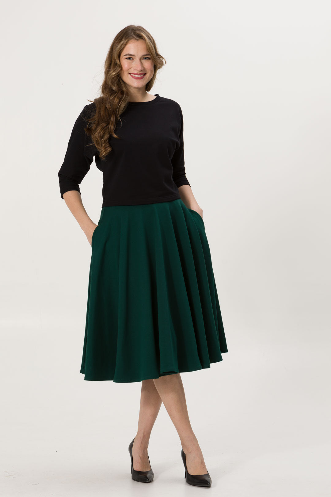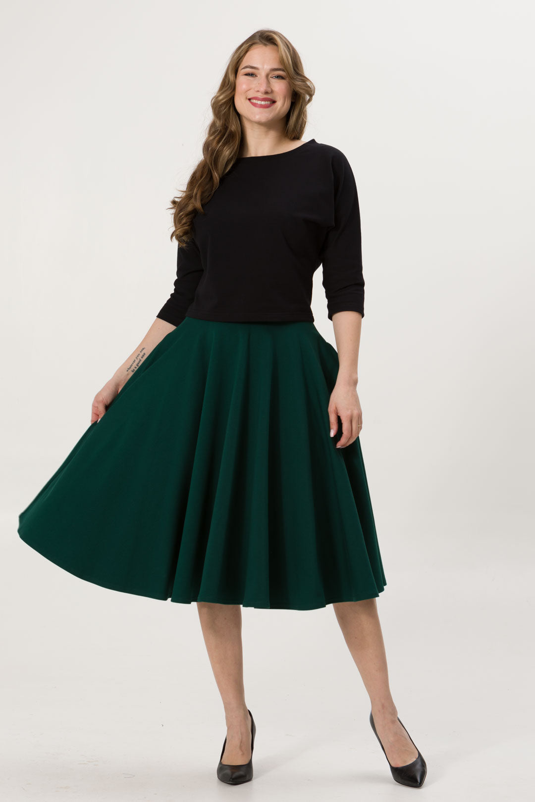 Spódnica Arles midi butelkowa zieleń -30%