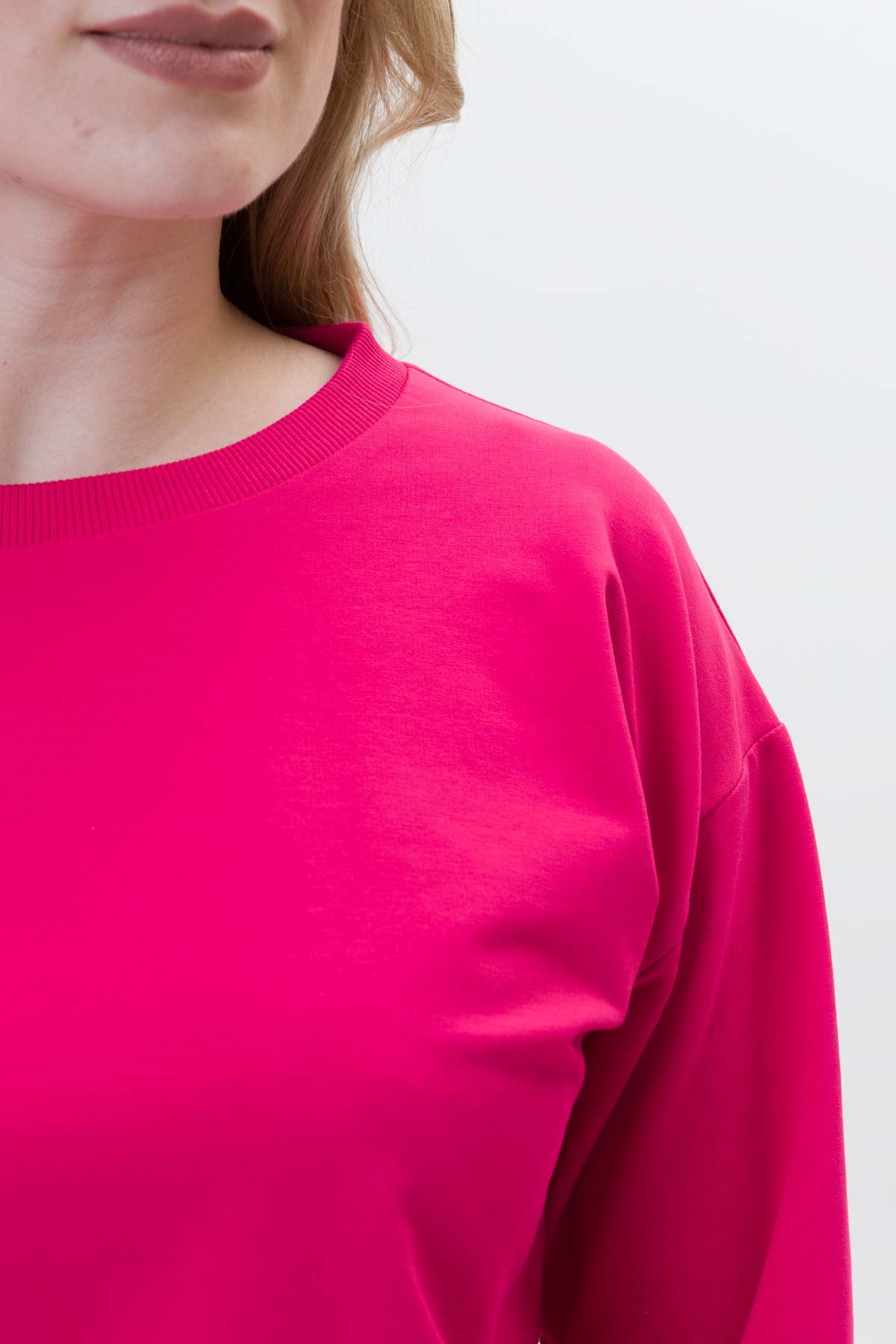 • Klasyczny, okrągły dekolt pięknie eksponuje szyję i sprawia, że bluza świetnie układa się na sylwetce.
