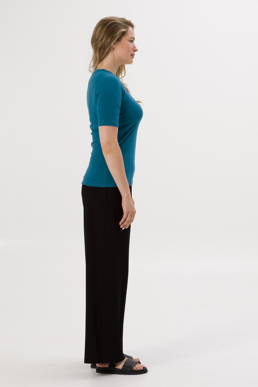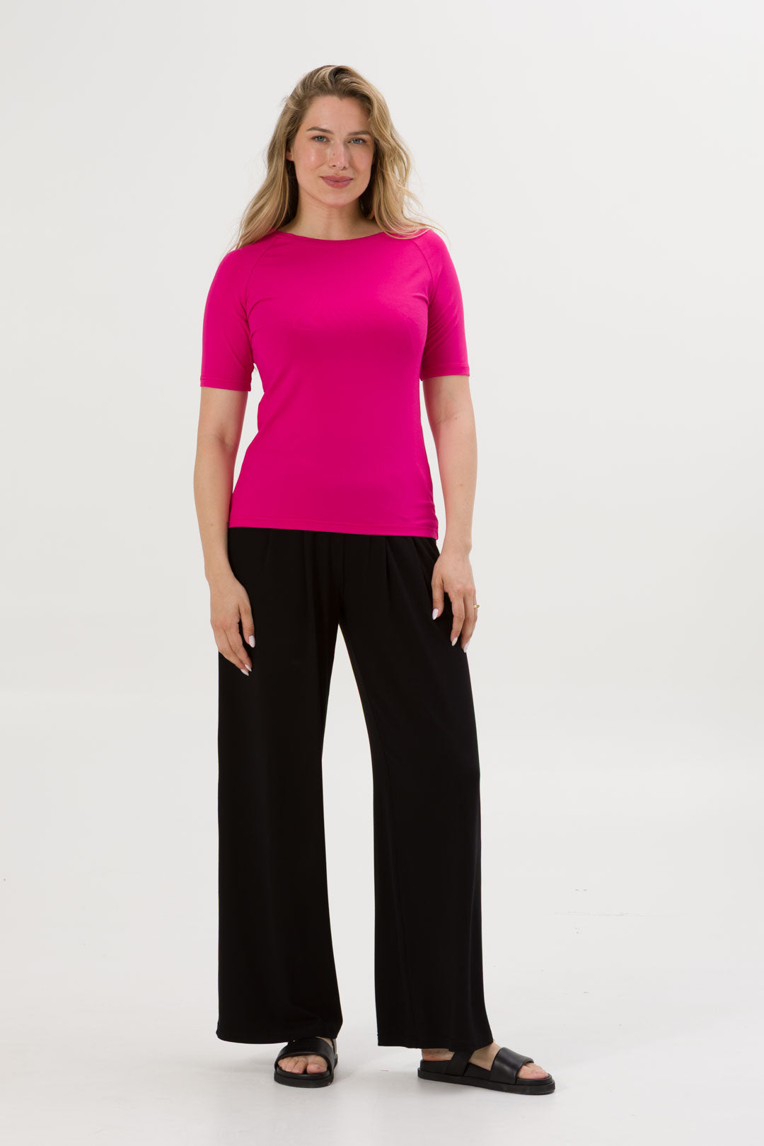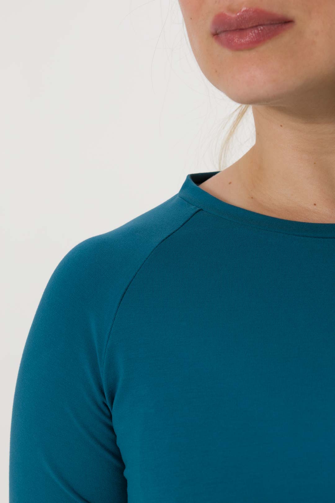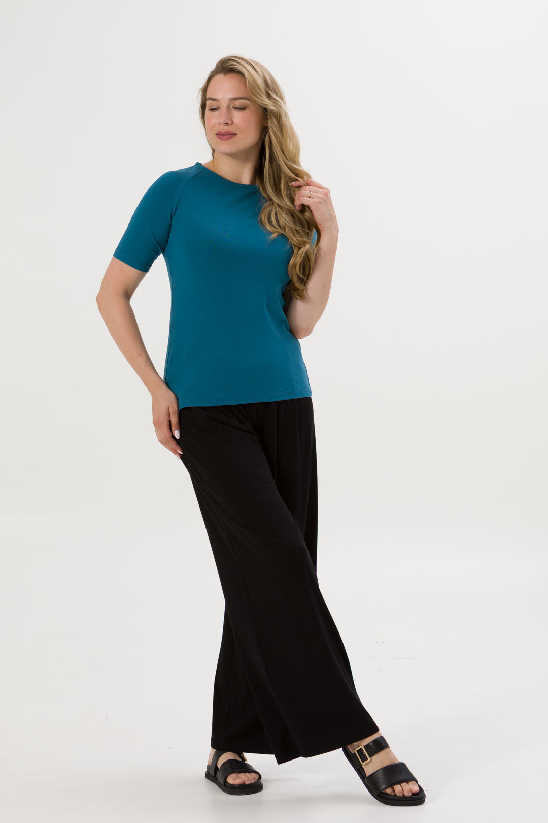 Uszyta z miękkiej, przewiewnej dzianiny wiskozowej, bluzka AGNES z raglanowym rękawem do łokcia jest nie tylko przyjazna dla skóry, ale także dla środowiska. Idealnie dopasowuje się do ciała, podkreślając sylwetkę, nie ograniczając przy tym swobody ruchów.