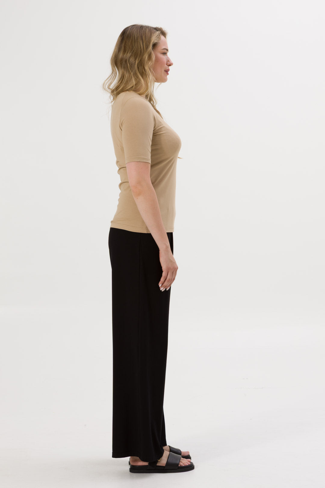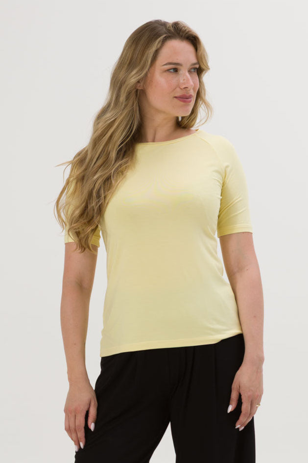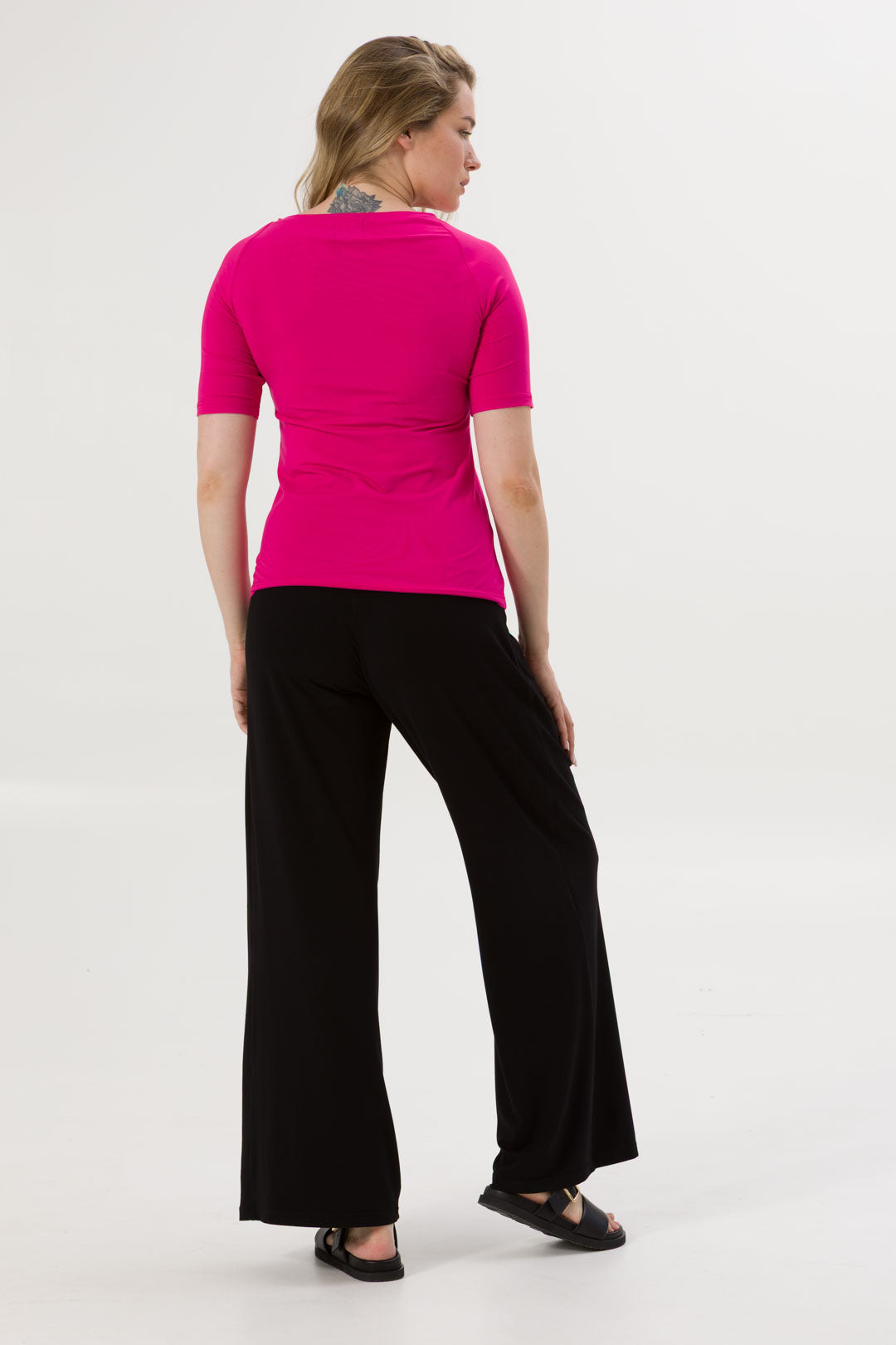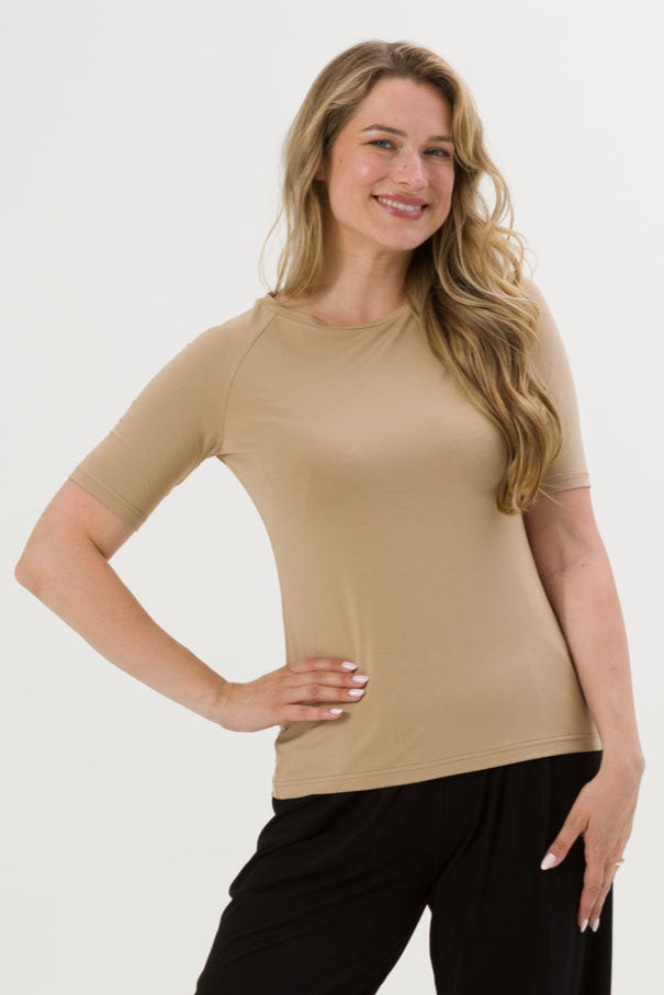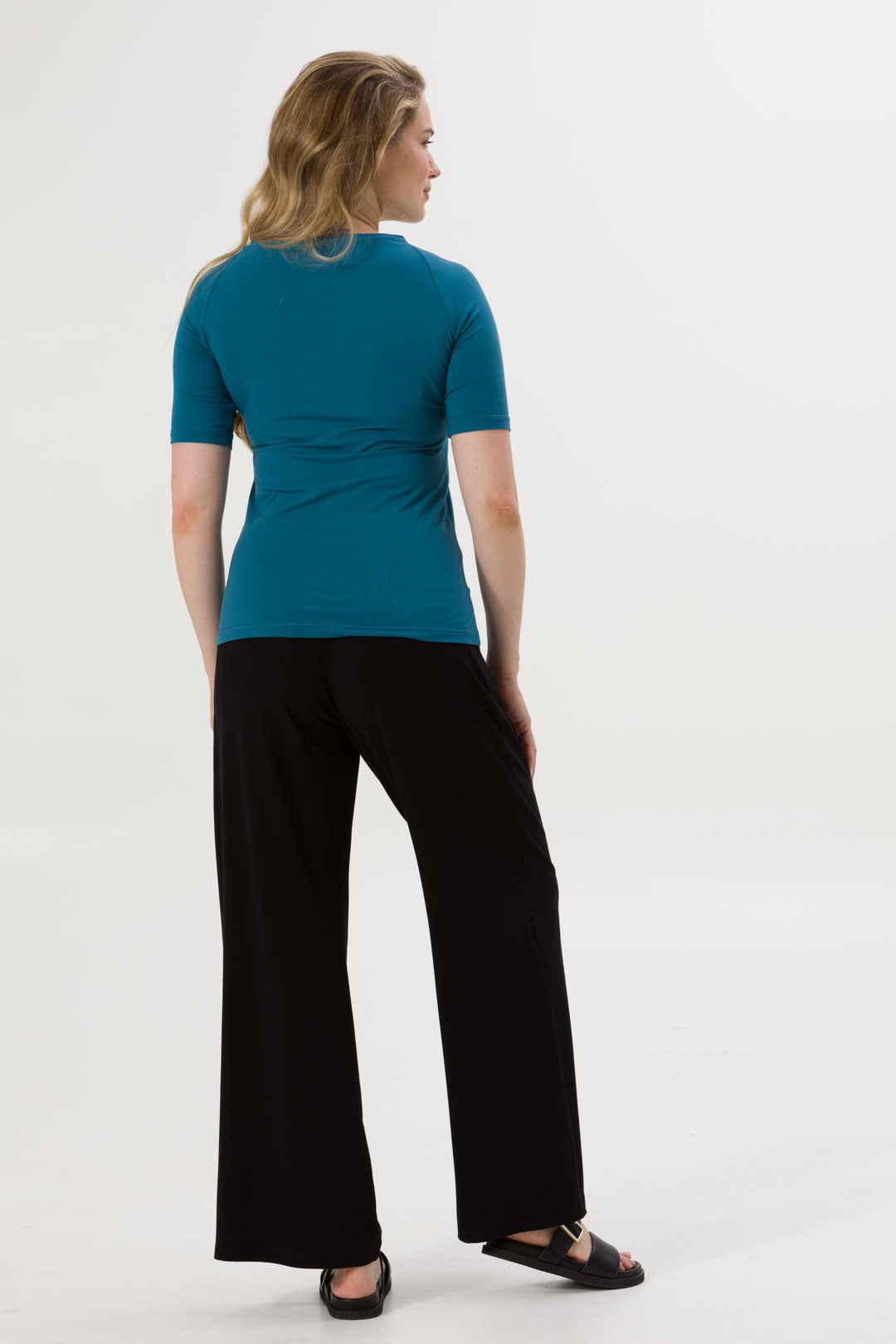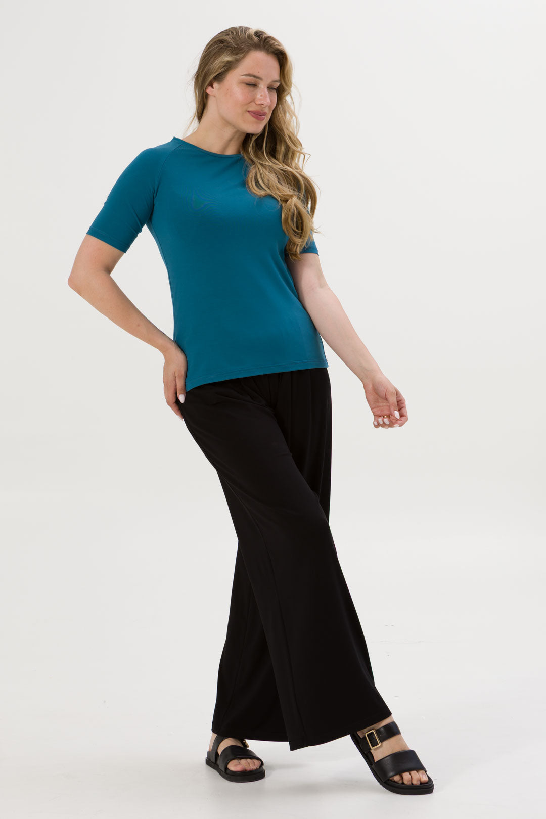 Uszyta z miękkiej, przewiewnej dzianiny wiskozowej, bluzka AGNES z raglanowym rękawem do łokcia jest nie tylko przyjazna dla skóry, ale także dla środowiska. Idealnie dopasowuje się do ciała, podkreślając sylwetkę, nie ograniczając przy tym swobody ruchów.