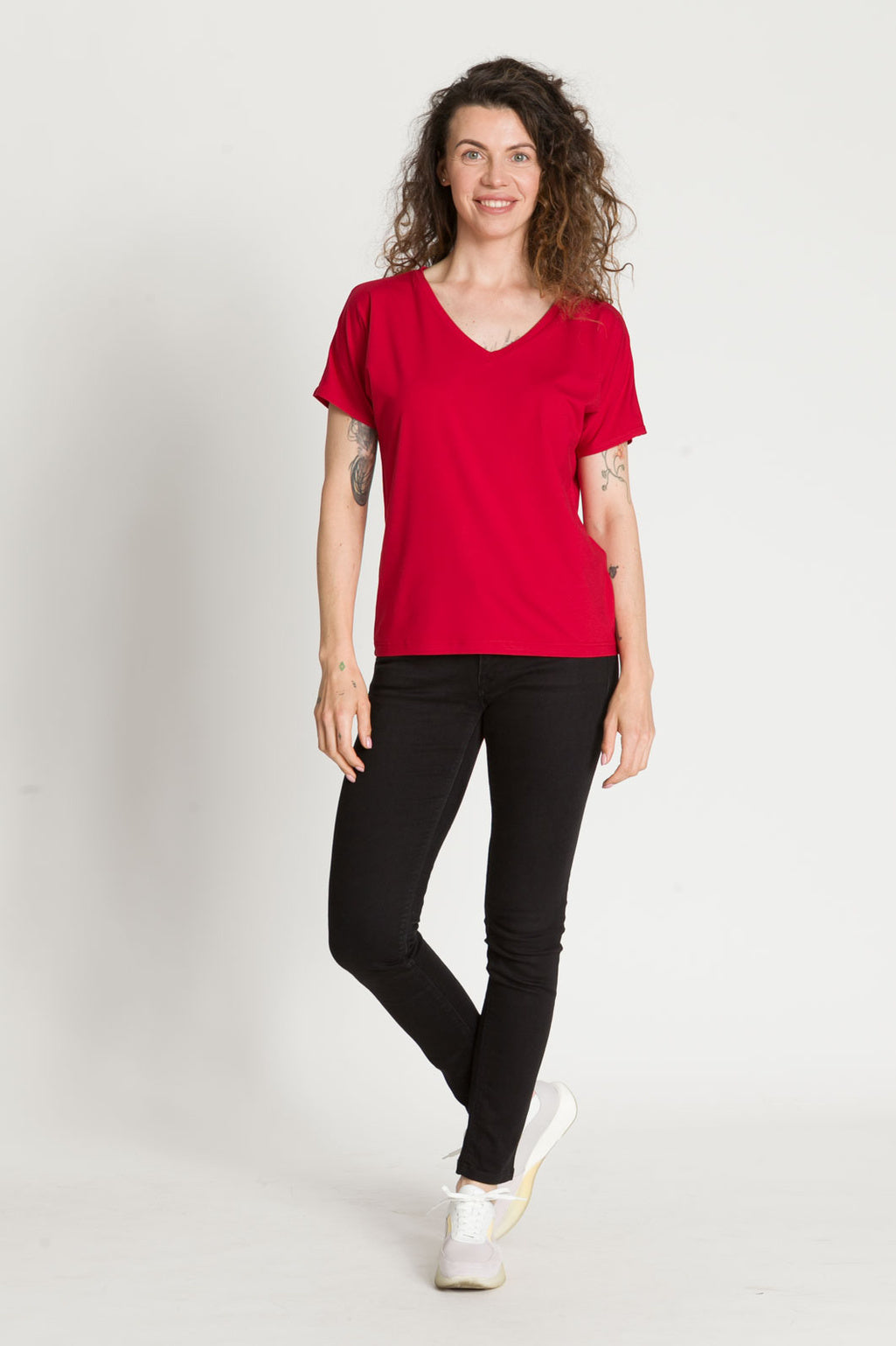 - Bluzka LARA jest uszyta ze szlachetnej wiskozy na bazie Waszych ulubionych modeli - Tetyda, Brigitte, Bea. Jest luźna, dzięki czemu jest wygodna. Dekolt V wydłuża szyję i dodaje subtelnej elegancji.