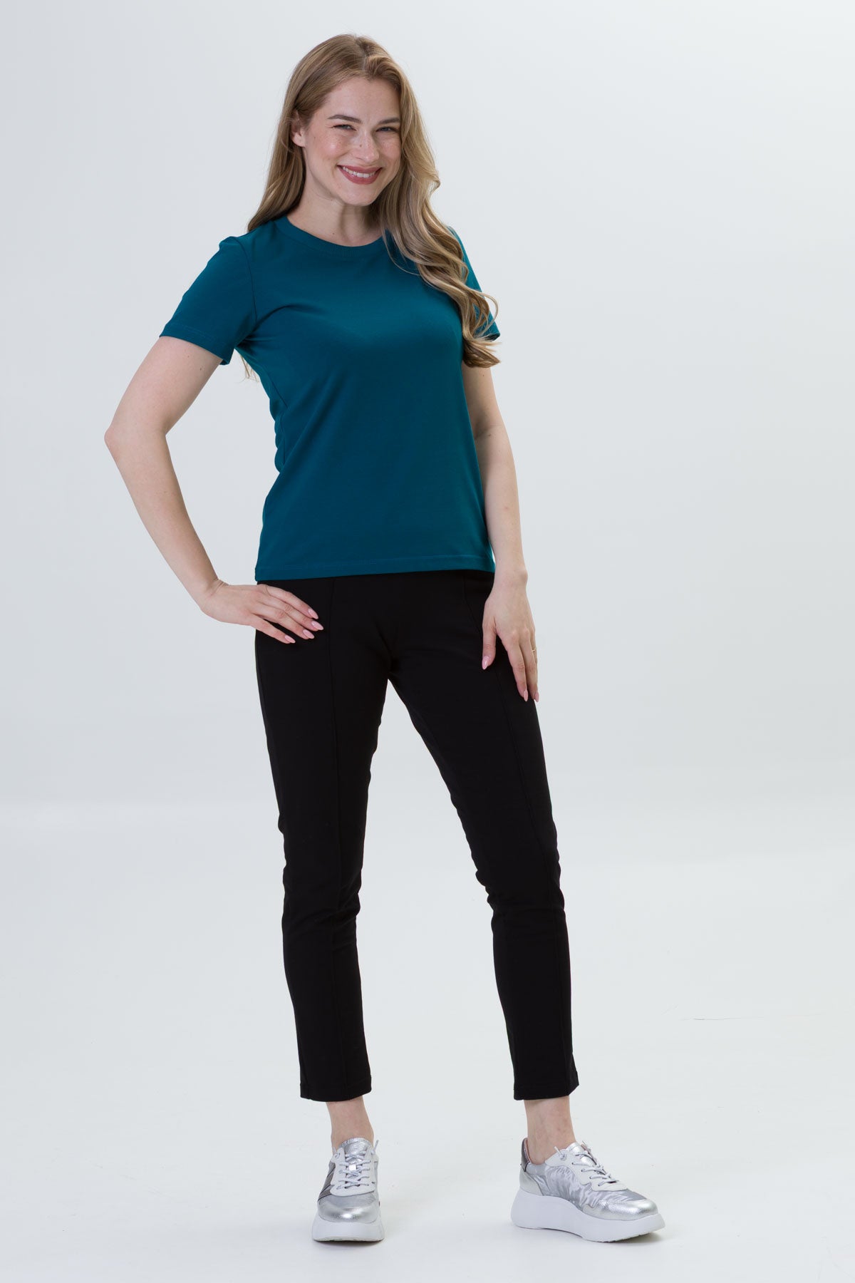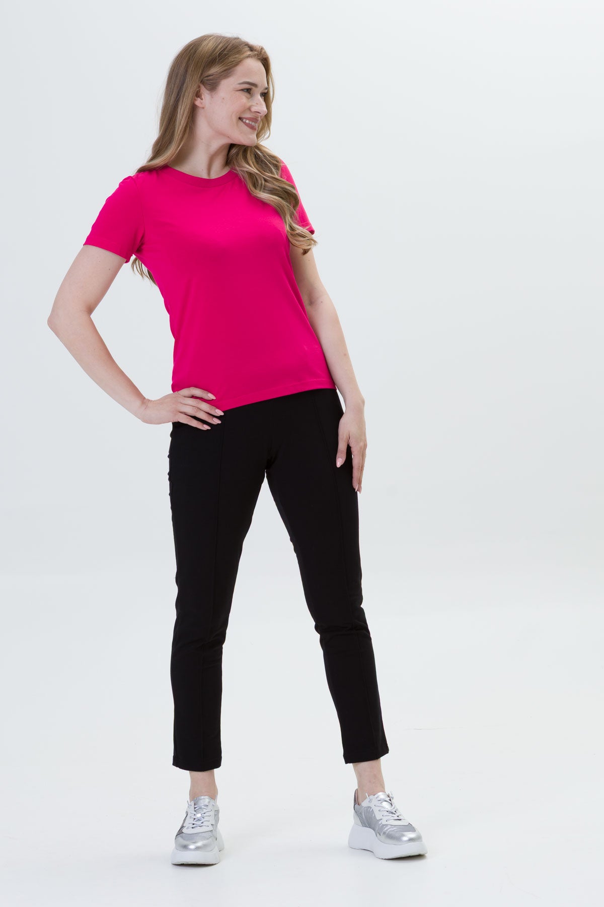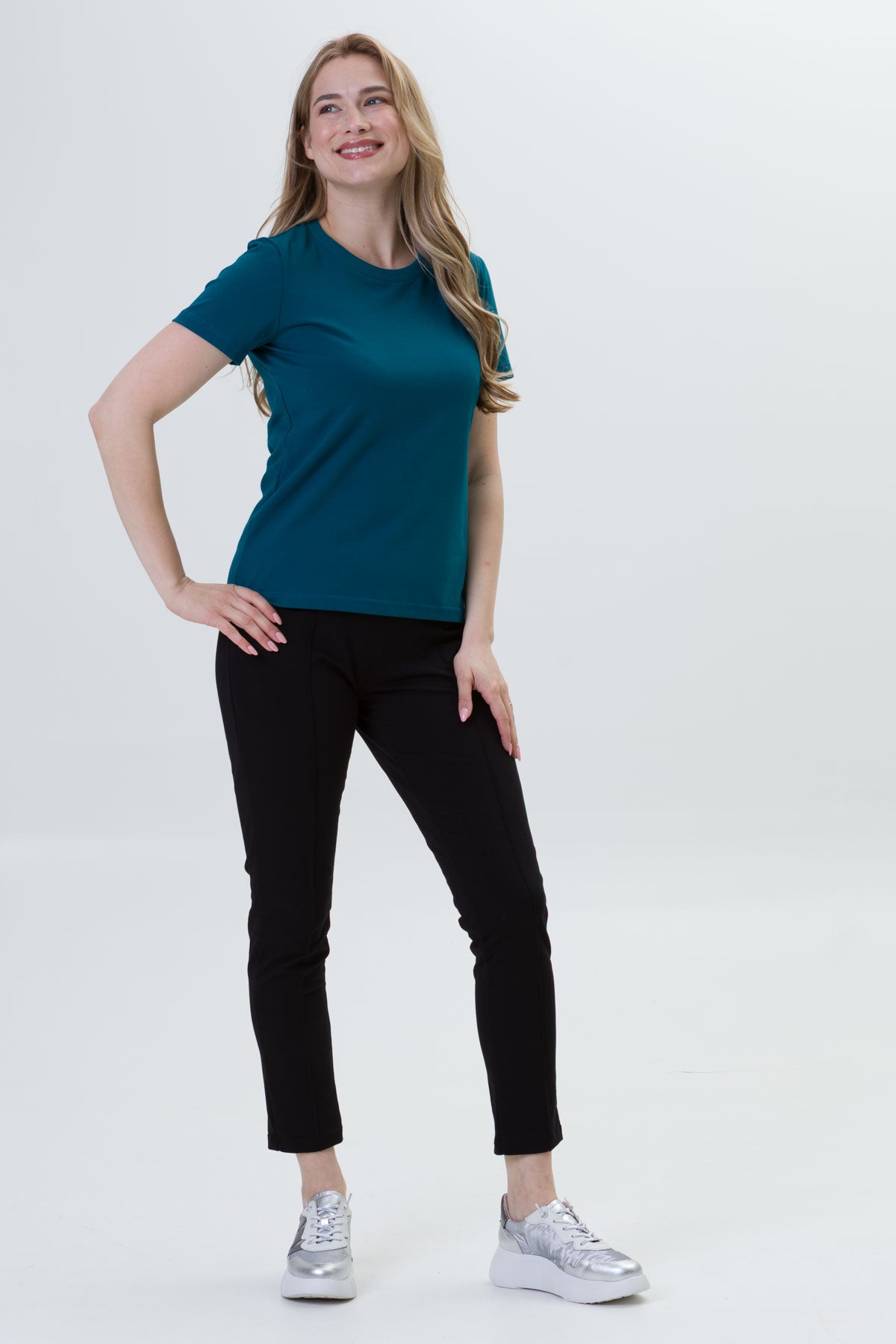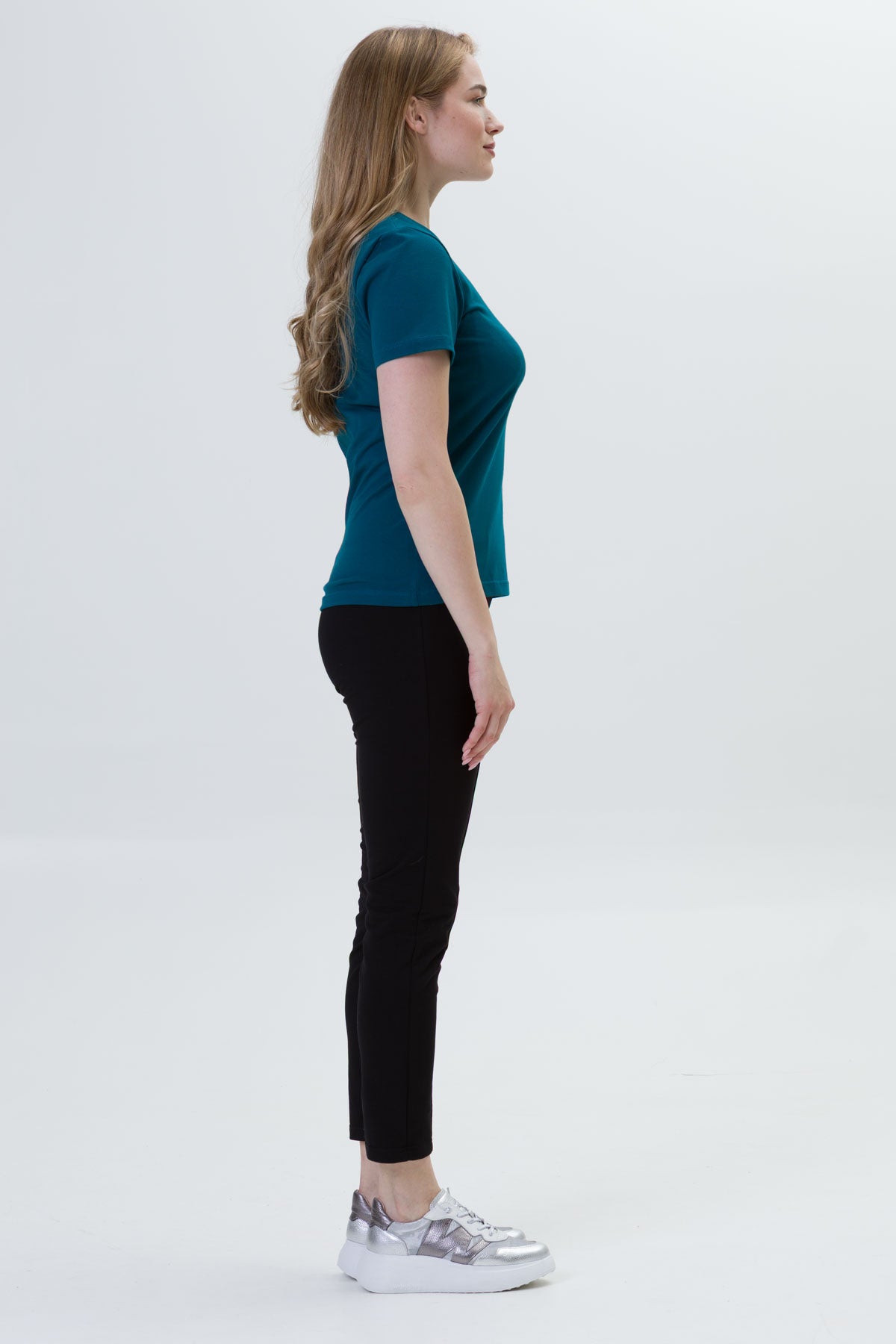 - Ta dopasowana bluzka z krótkim rękawem to esencja klasyki w nowoczesnym wydaniu. Uszyta z wysokogatunkowej bawełny, gwarantuje komfort i przewiewność, a jednocześnie zachowuje swój kształt przez cały dzień.