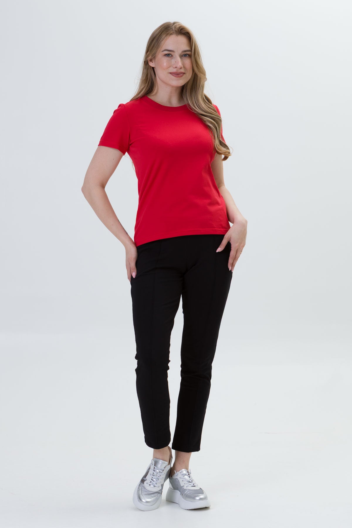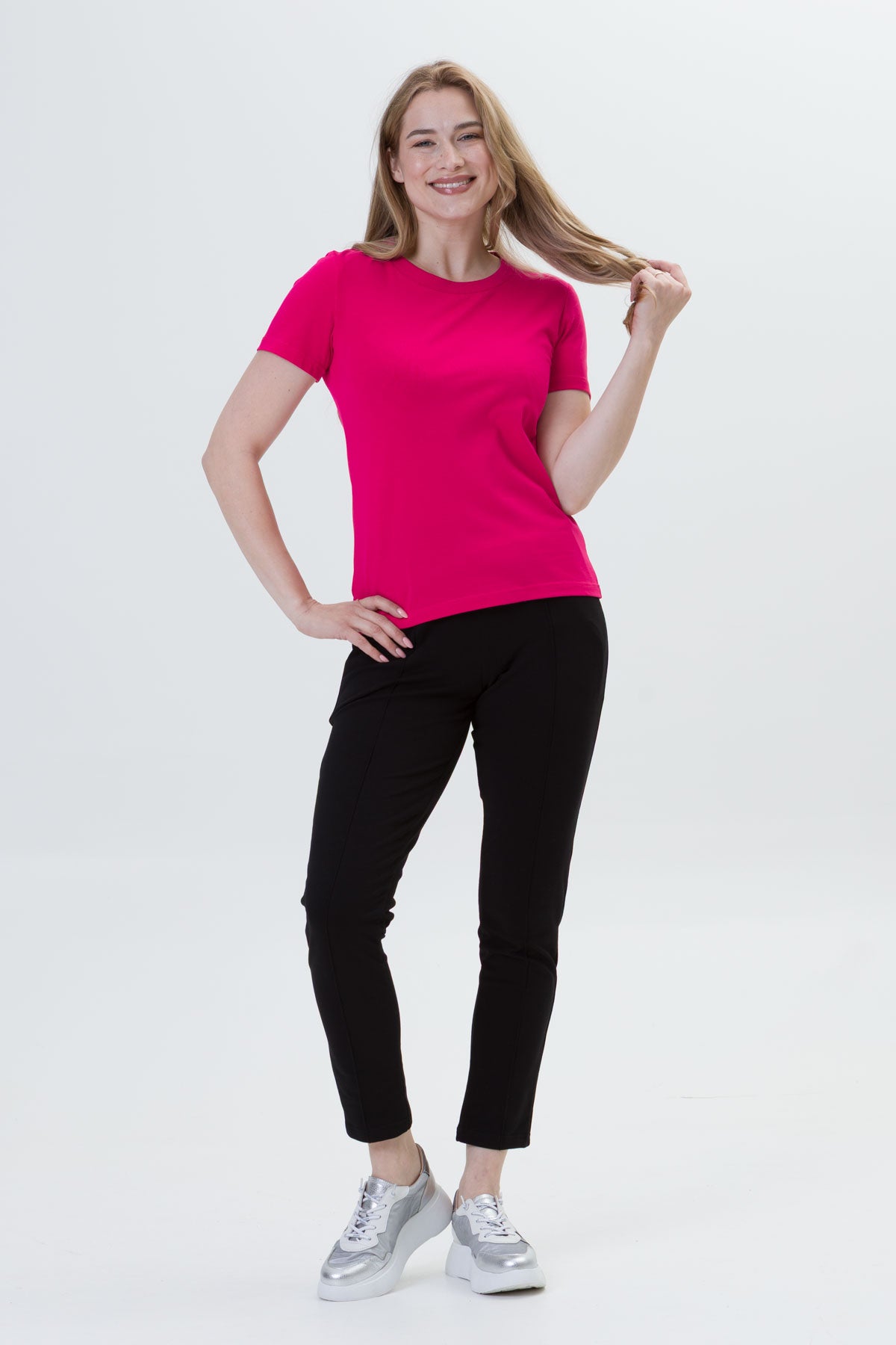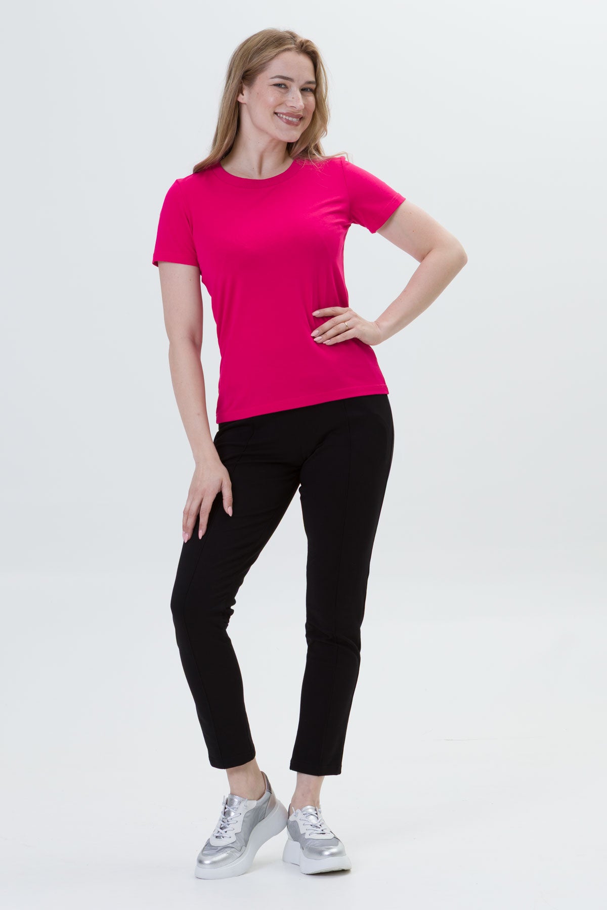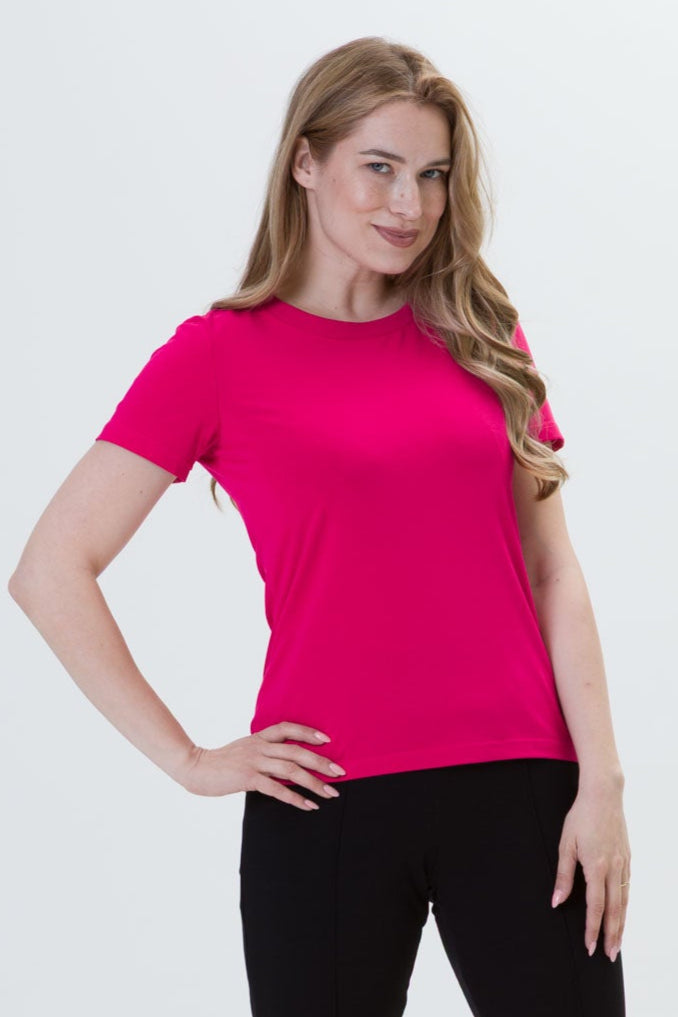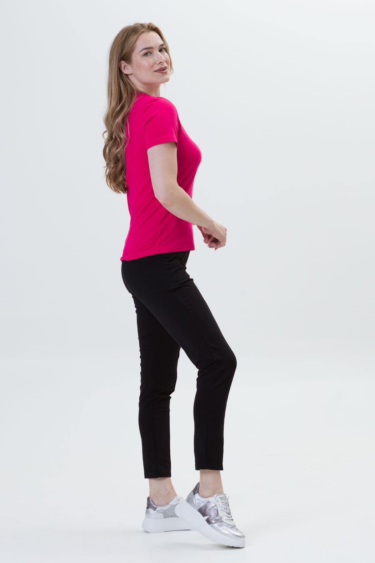 - Ta dopasowana bluzka z krótkim rękawem to esencja klasyki w nowoczesnym wydaniu. Uszyta z wysokogatunkowej bawełny, gwarantuje komfort i przewiewność, a jednocześnie zachowuje swój kształt przez cały dzień.