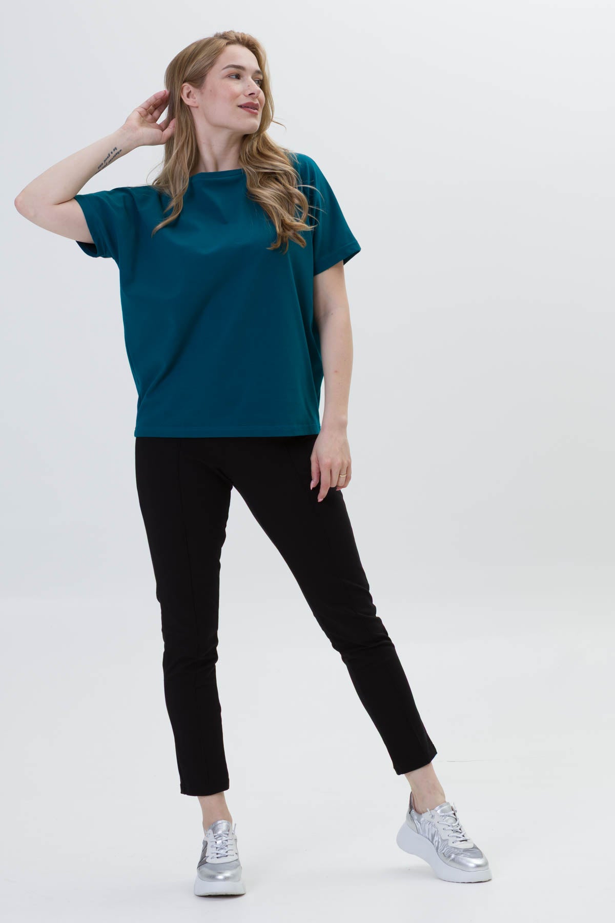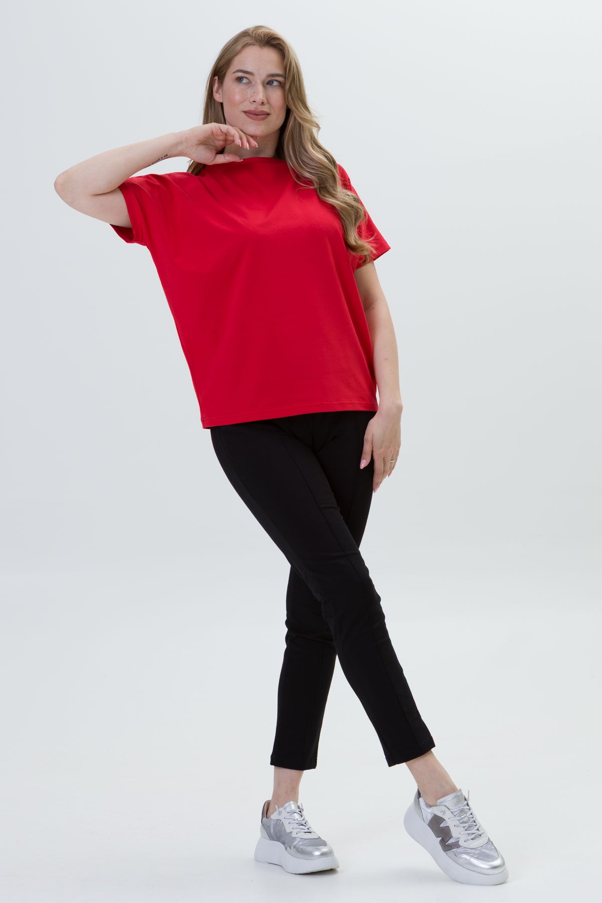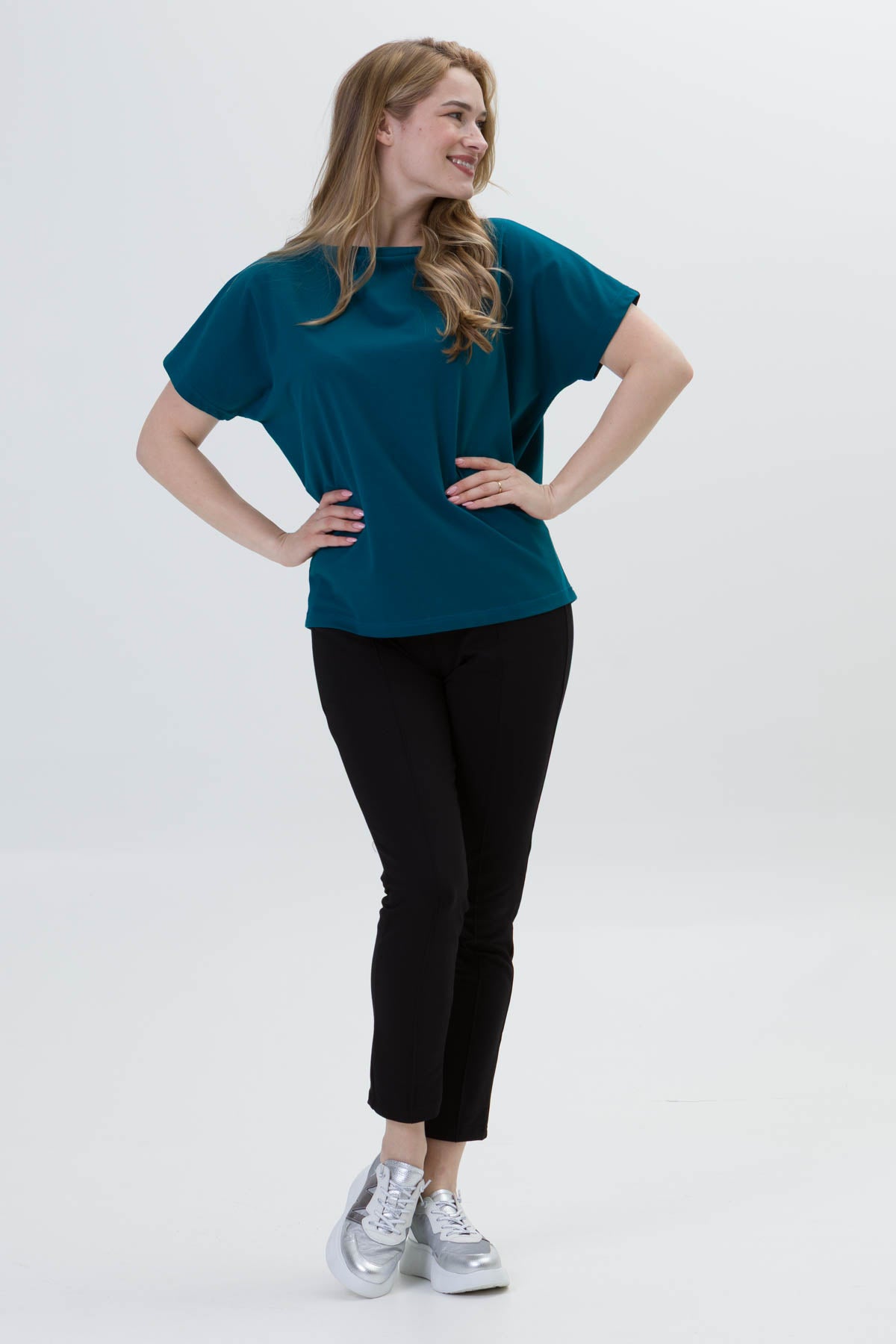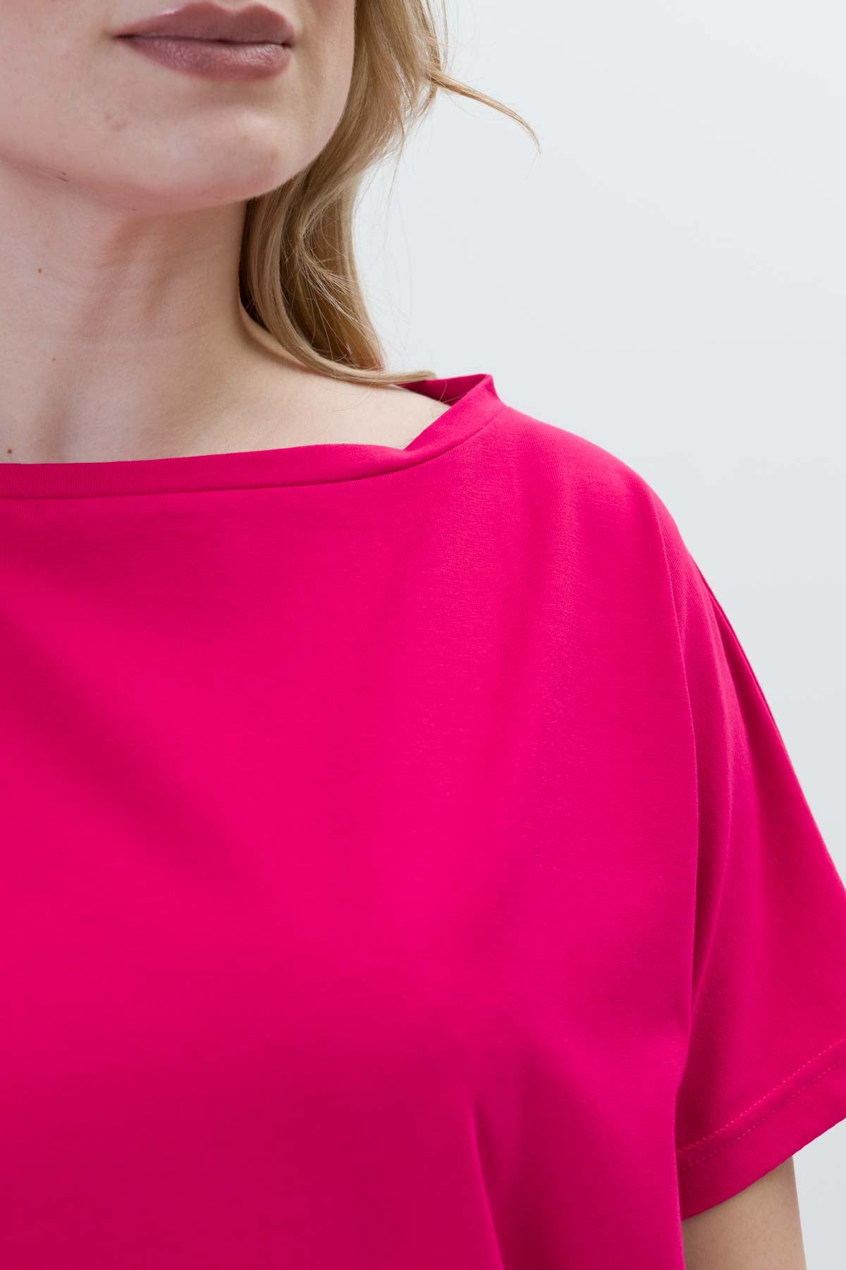 - Ta bluzka to kwintesencja swobody i minimalizmu, doskonała dla kochających prostotę z nutką elegancji. Jest to klasyczny biały T-shirt o luźnym kroju, który gwarantuje komfort noszenia i uniwersalność. Szerokie, krótkie rękawy dodają nieformalnego charakteru i są świetne na cieplejsze dni. Wykonana z miękkiej i przewiewnej bawełny, będzie idealnym towarzyszem zarówno casualowych jeansów, jak i eleganckich spodni czy spódnic. To stylowa podstawa każdej garderoby.