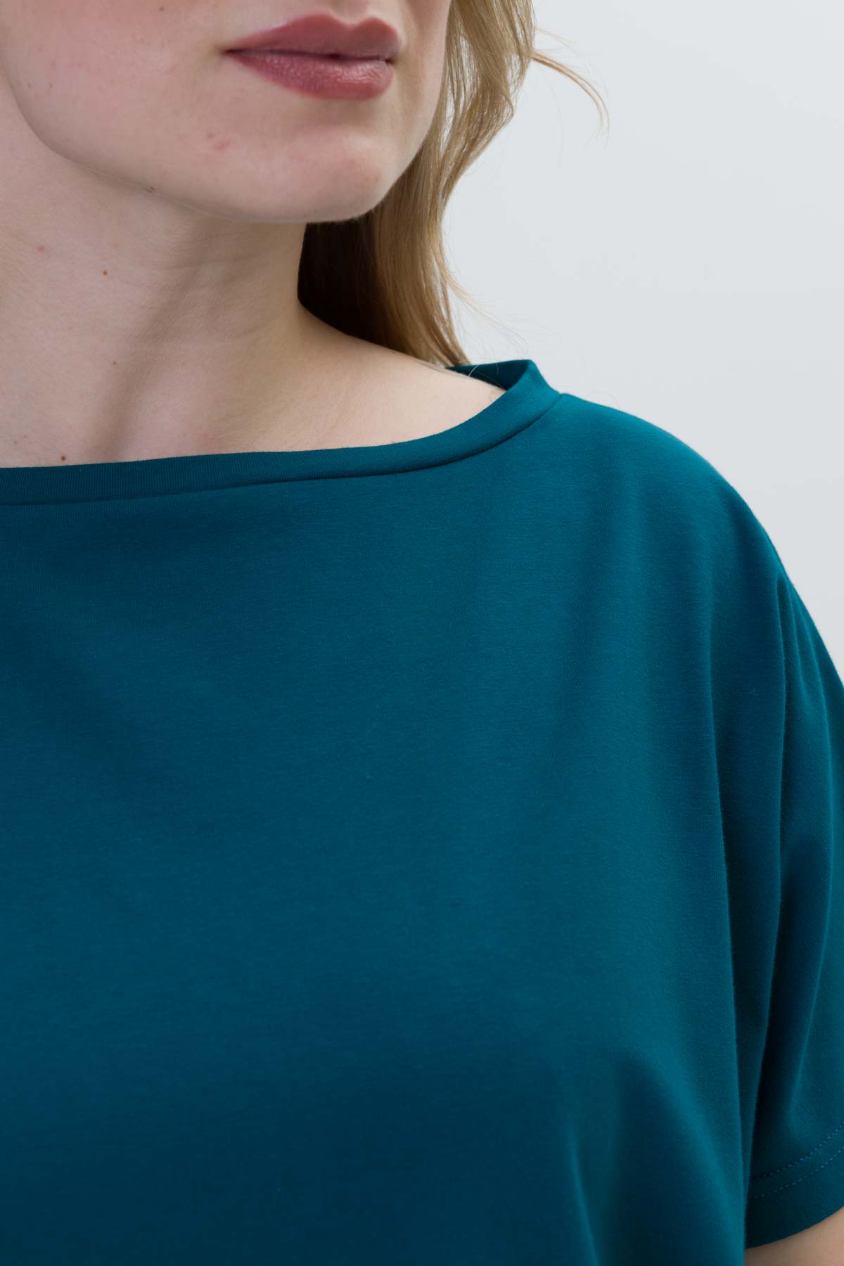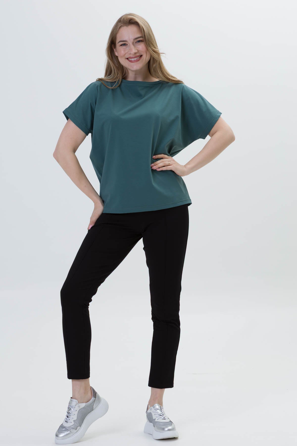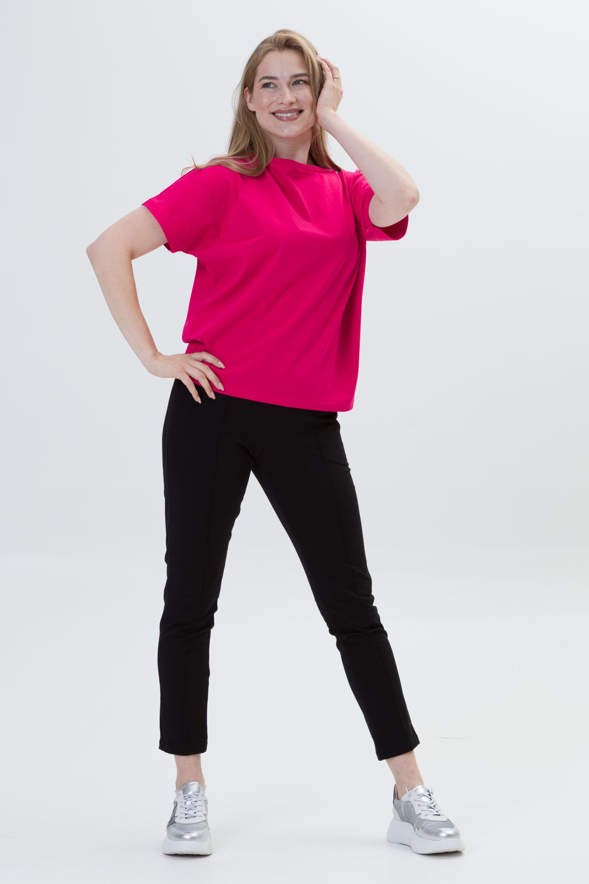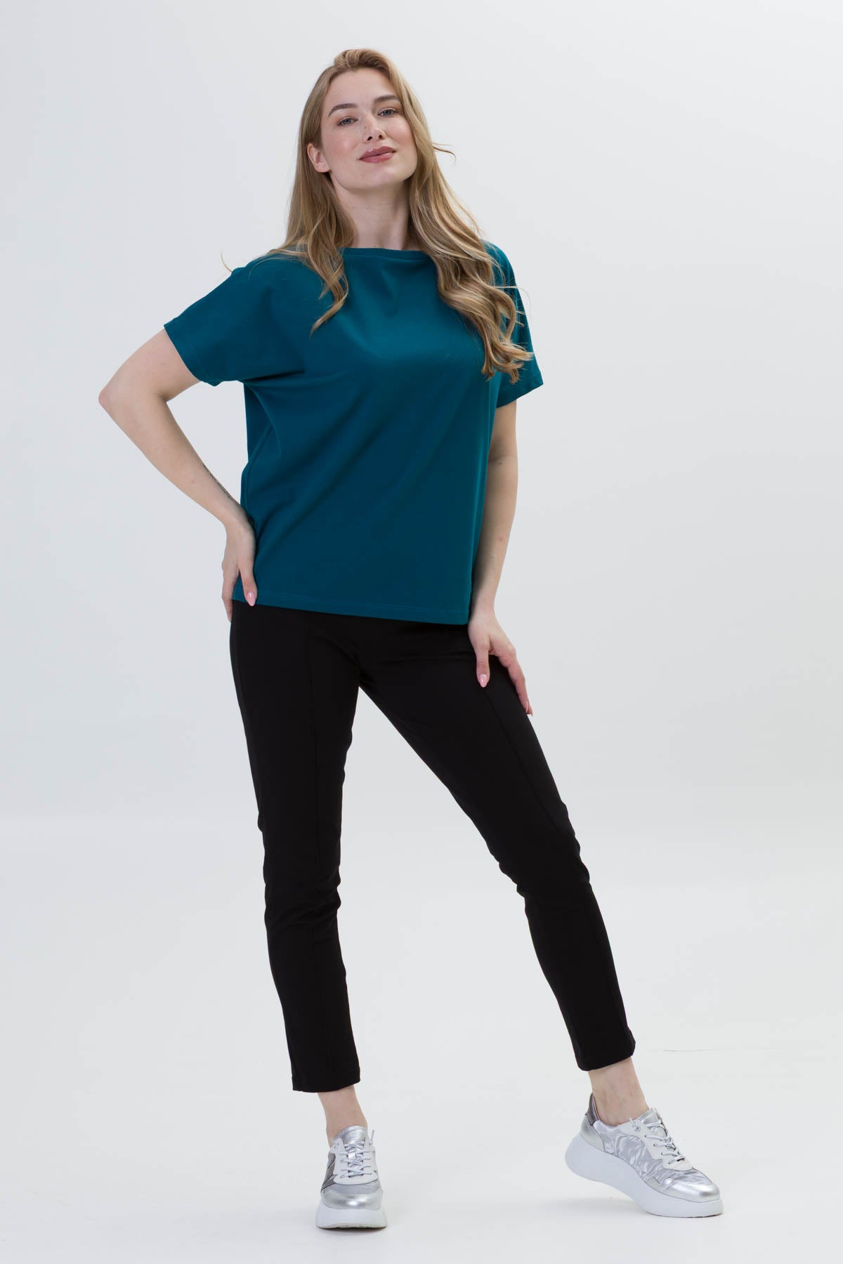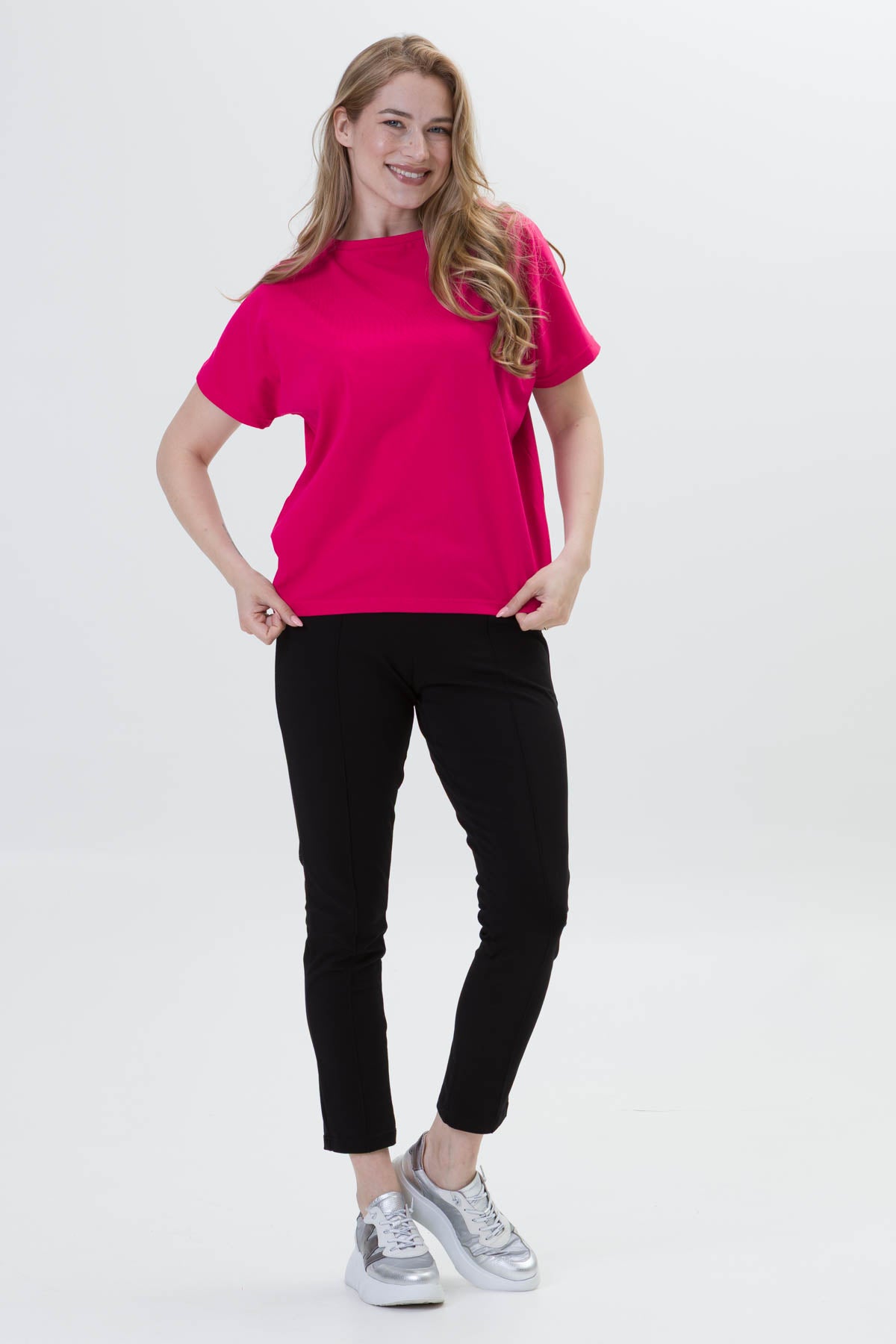- Ta bluzka to kwintesencja swobody i minimalizmu, doskonała dla kochających prostotę z nutką elegancji. Jest to klasyczny biały T-shirt o luźnym kroju, który gwarantuje komfort noszenia i uniwersalność. Szerokie, krótkie rękawy dodają nieformalnego charakteru i są świetne na cieplejsze dni. Wykonana z miękkiej i przewiewnej bawełny, będzie idealnym towarzyszem zarówno casualowych jeansów, jak i eleganckich spodni czy spódnic. To stylowa podstawa każdej garderoby.
