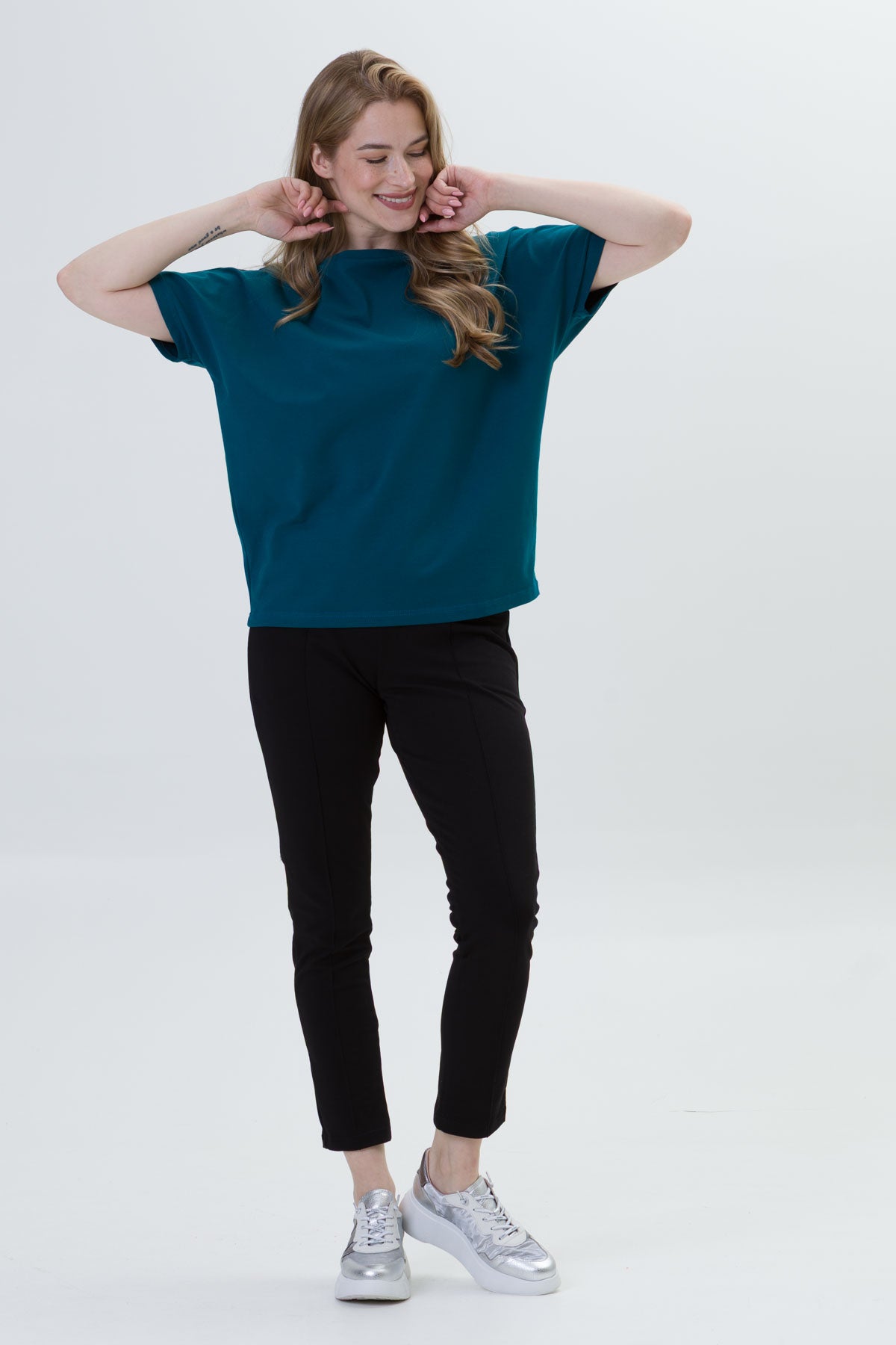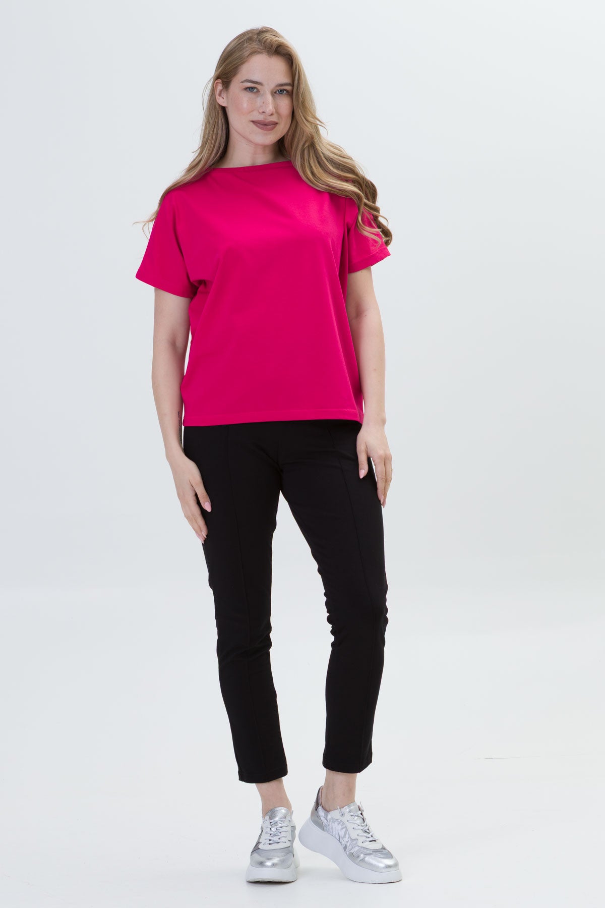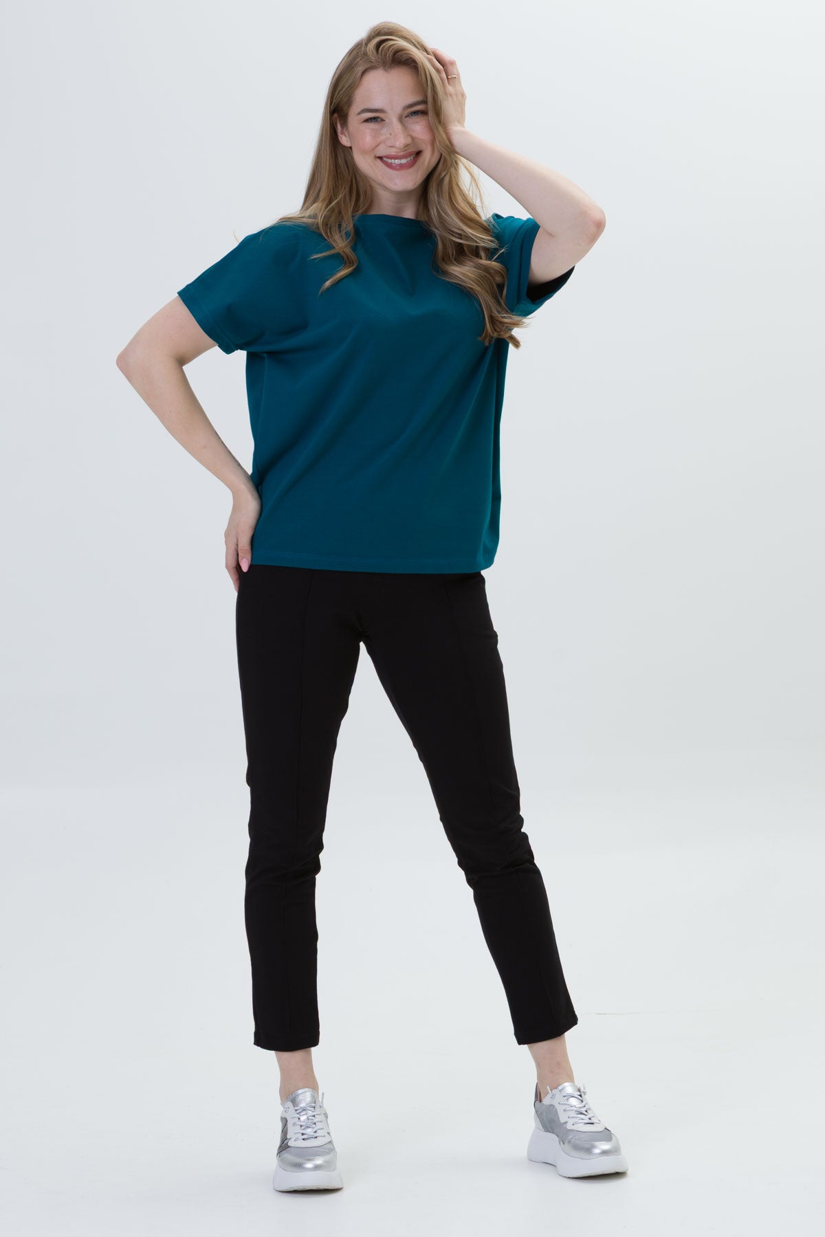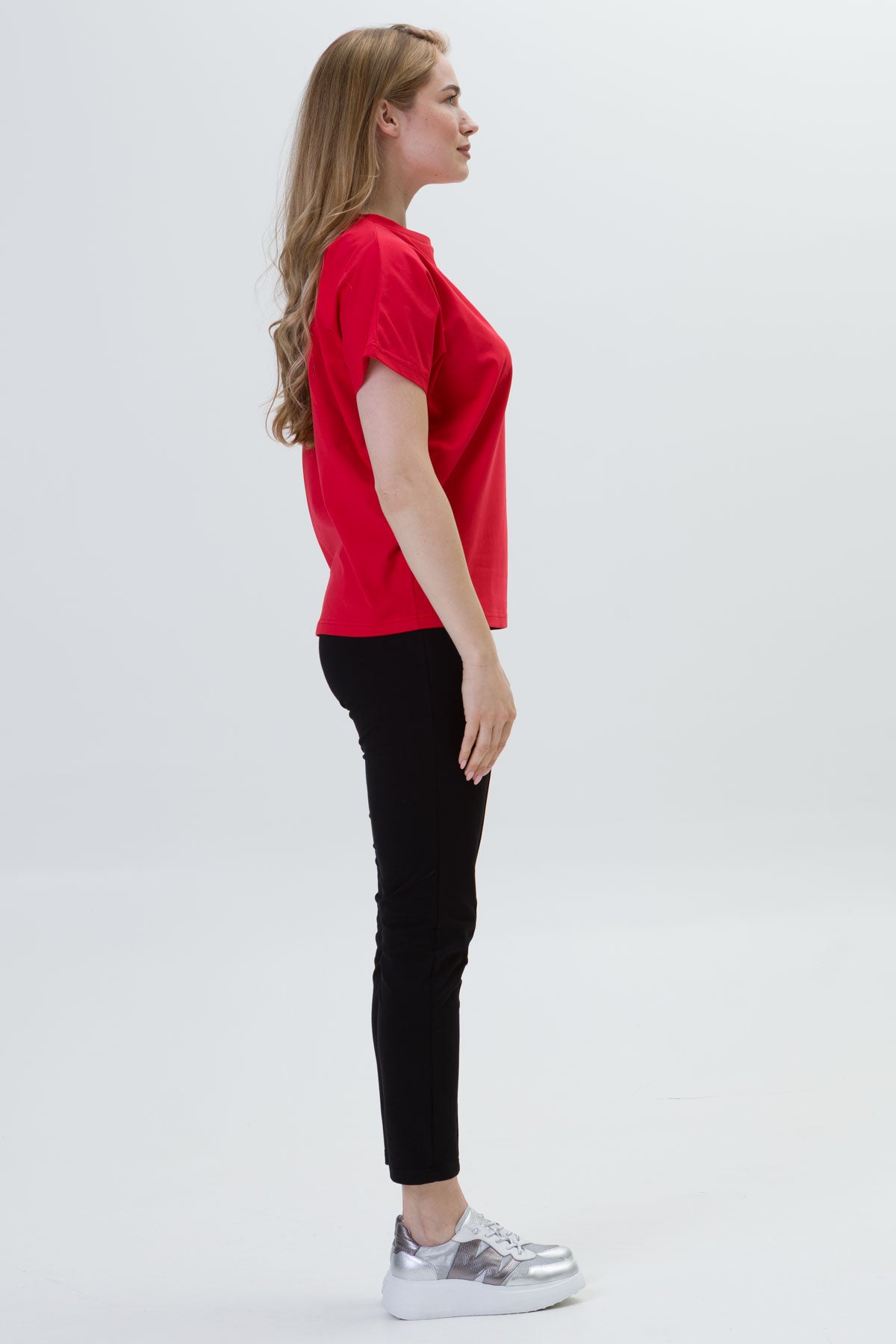 - Ta bluzka to kwintesencja swobody i minimalizmu, doskonała dla kochających prostotę z nutką elegancji. Jest to klasyczny biały T-shirt o luźnym kroju, który gwarantuje komfort noszenia i uniwersalność. Szerokie, krótkie rękawy dodają nieformalnego charakteru i są świetne na cieplejsze dni. Wykonana z miękkiej i przewiewnej bawełny, będzie idealnym towarzyszem zarówno casualowych jeansów, jak i eleganckich spodni czy spódnic. To stylowa podstawa każdej garderoby.