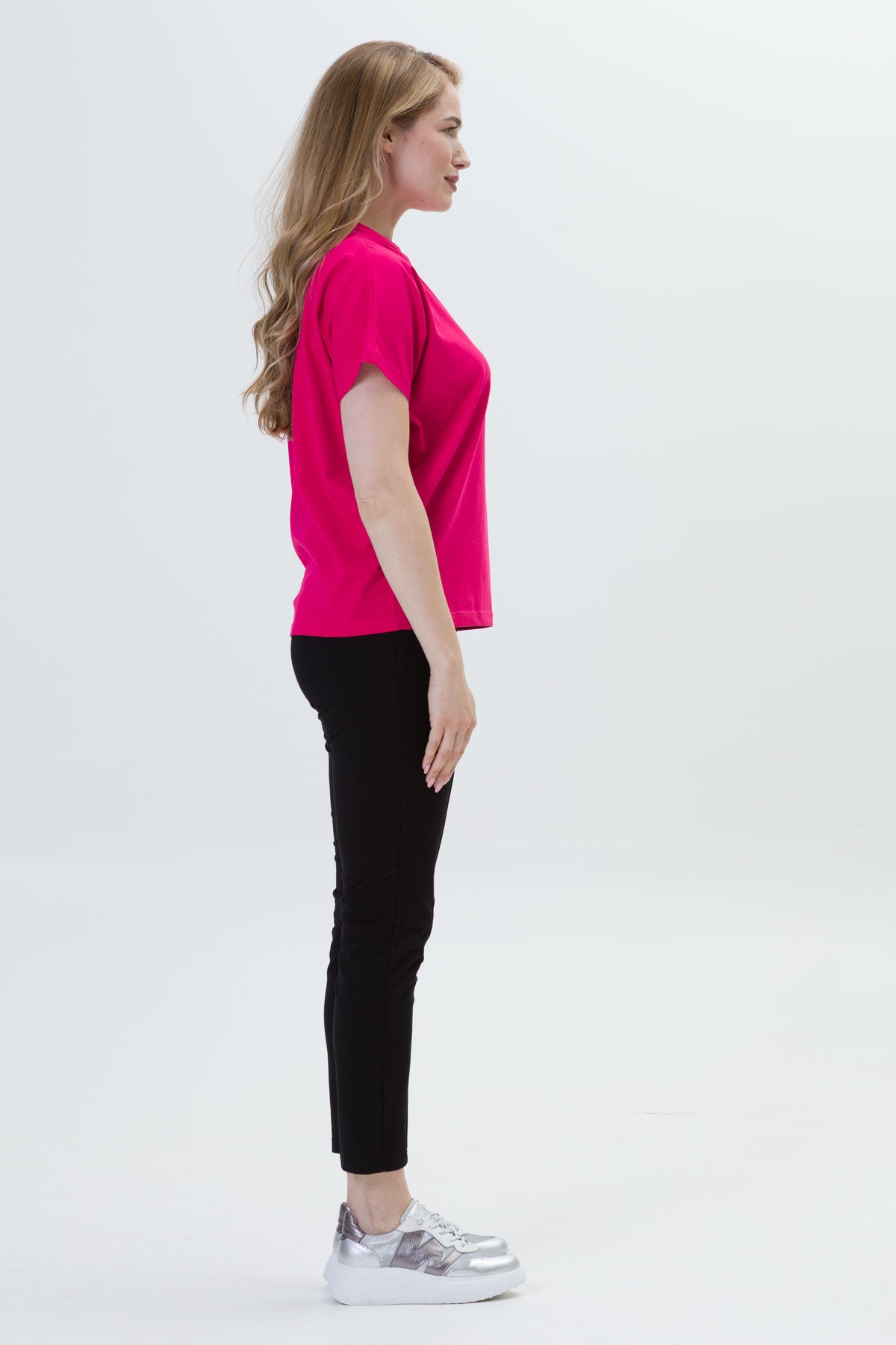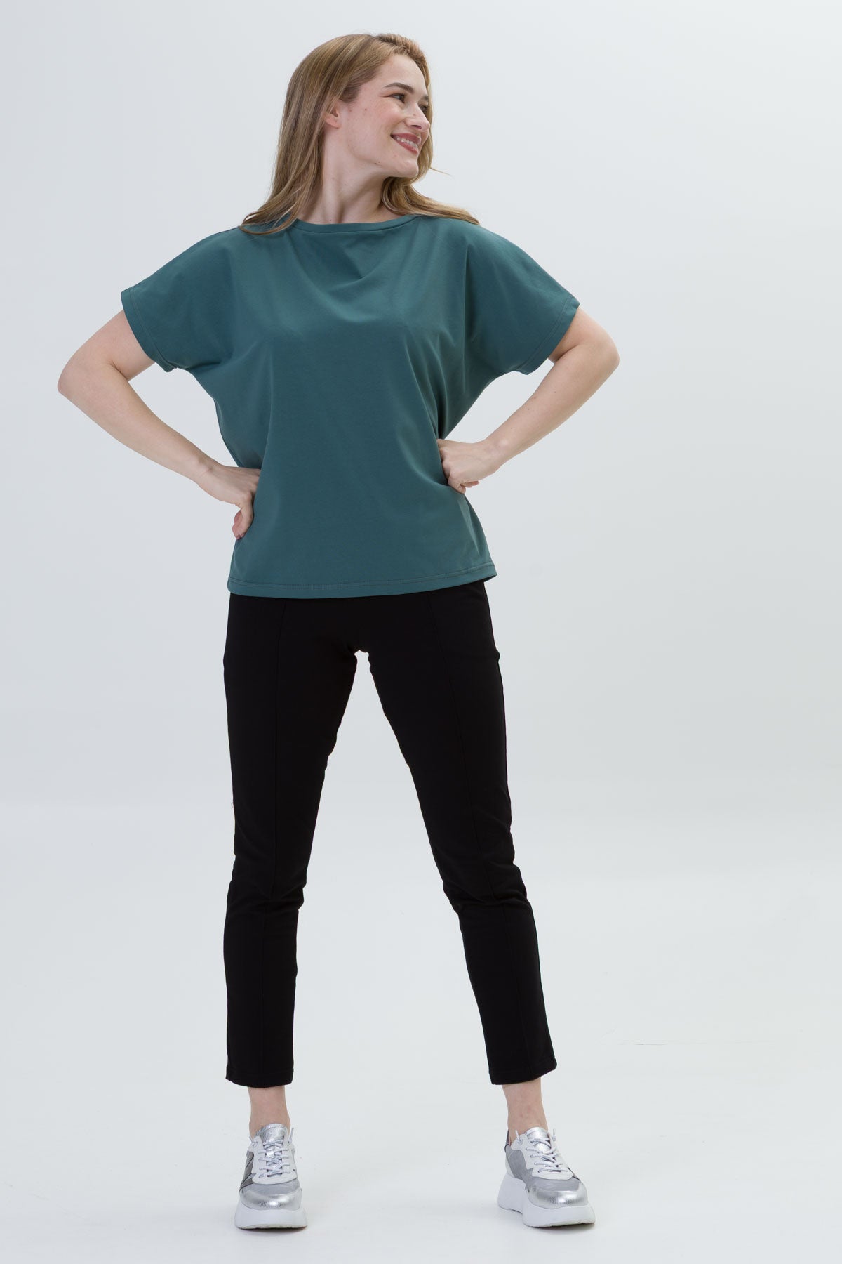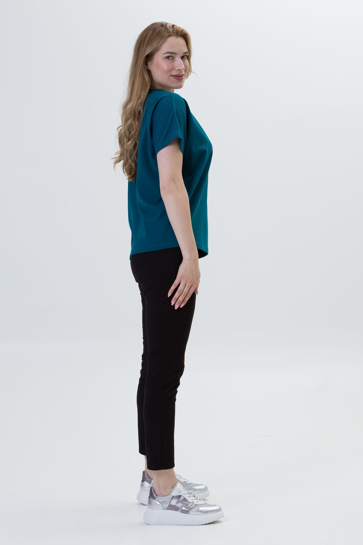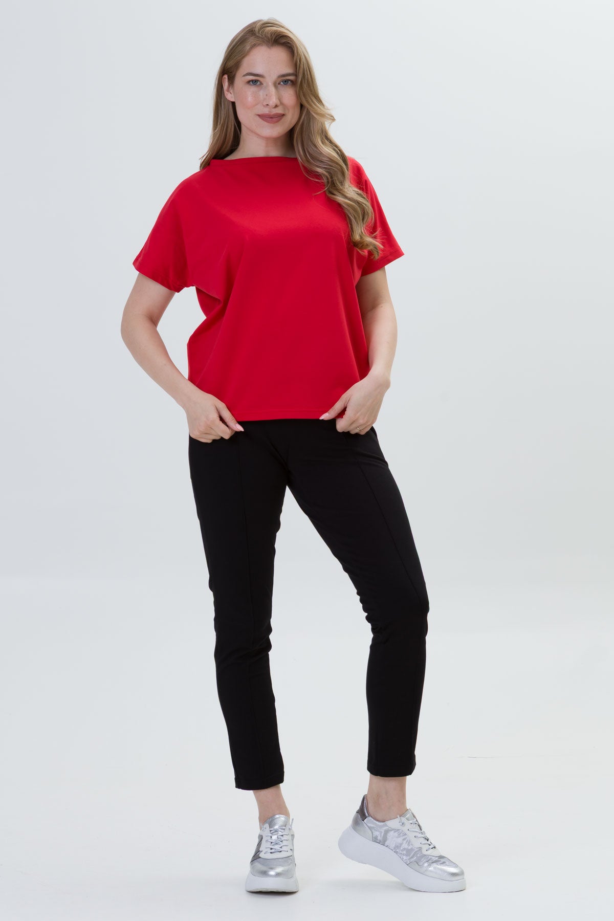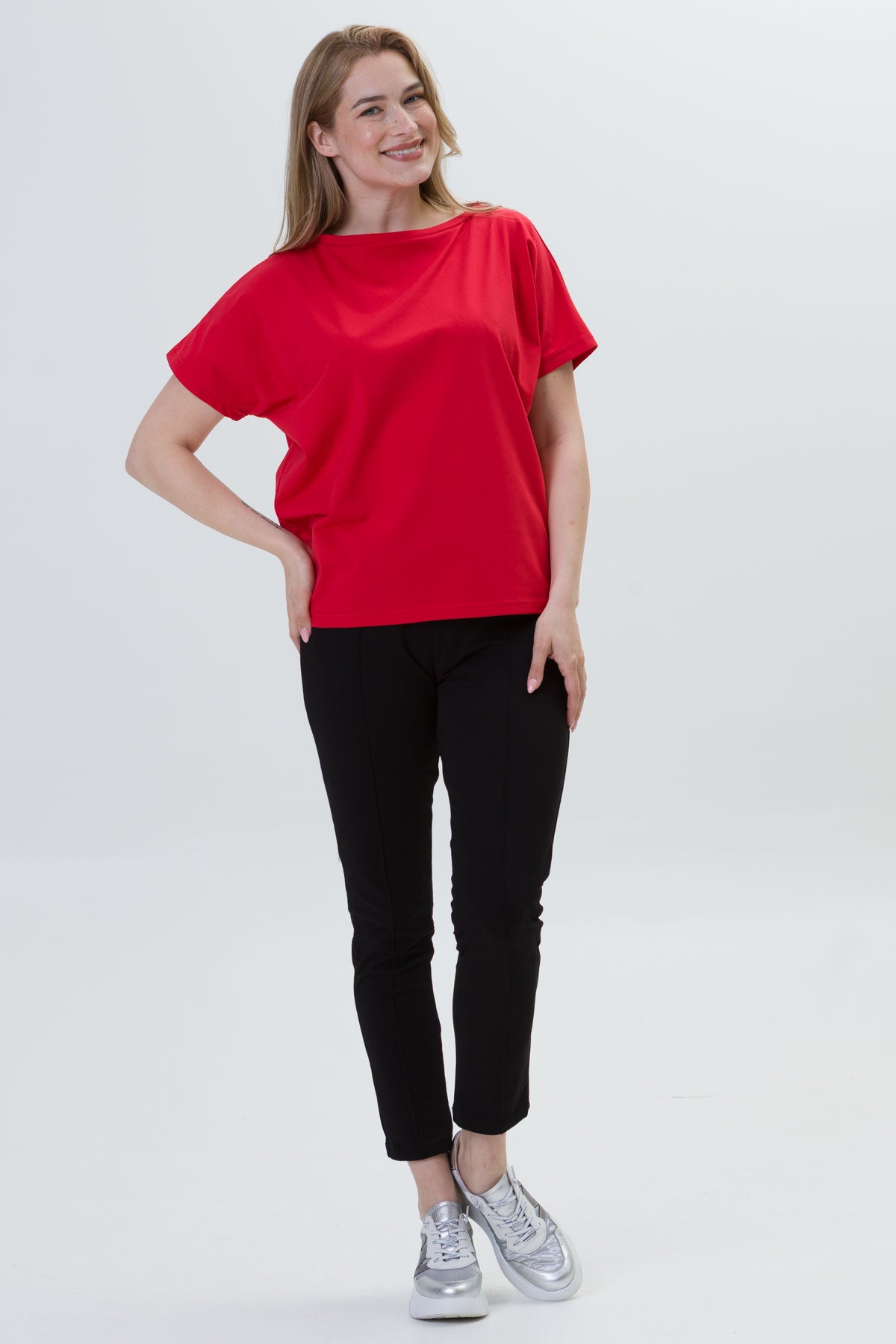 - Ta bluzka to kwintesencja swobody i minimalizmu, doskonała dla kochających prostotę z nutką elegancji. Jest to klasyczny biały T-shirt o luźnym kroju, który gwarantuje komfort noszenia i uniwersalność. Szerokie, krótkie rękawy dodają nieformalnego charakteru i są świetne na cieplejsze dni. Wykonana z miękkiej i przewiewnej bawełny, będzie idealnym towarzyszem zarówno casualowych jeansów, jak i eleganckich spodni czy spódnic. To stylowa podstawa każdej garderoby.