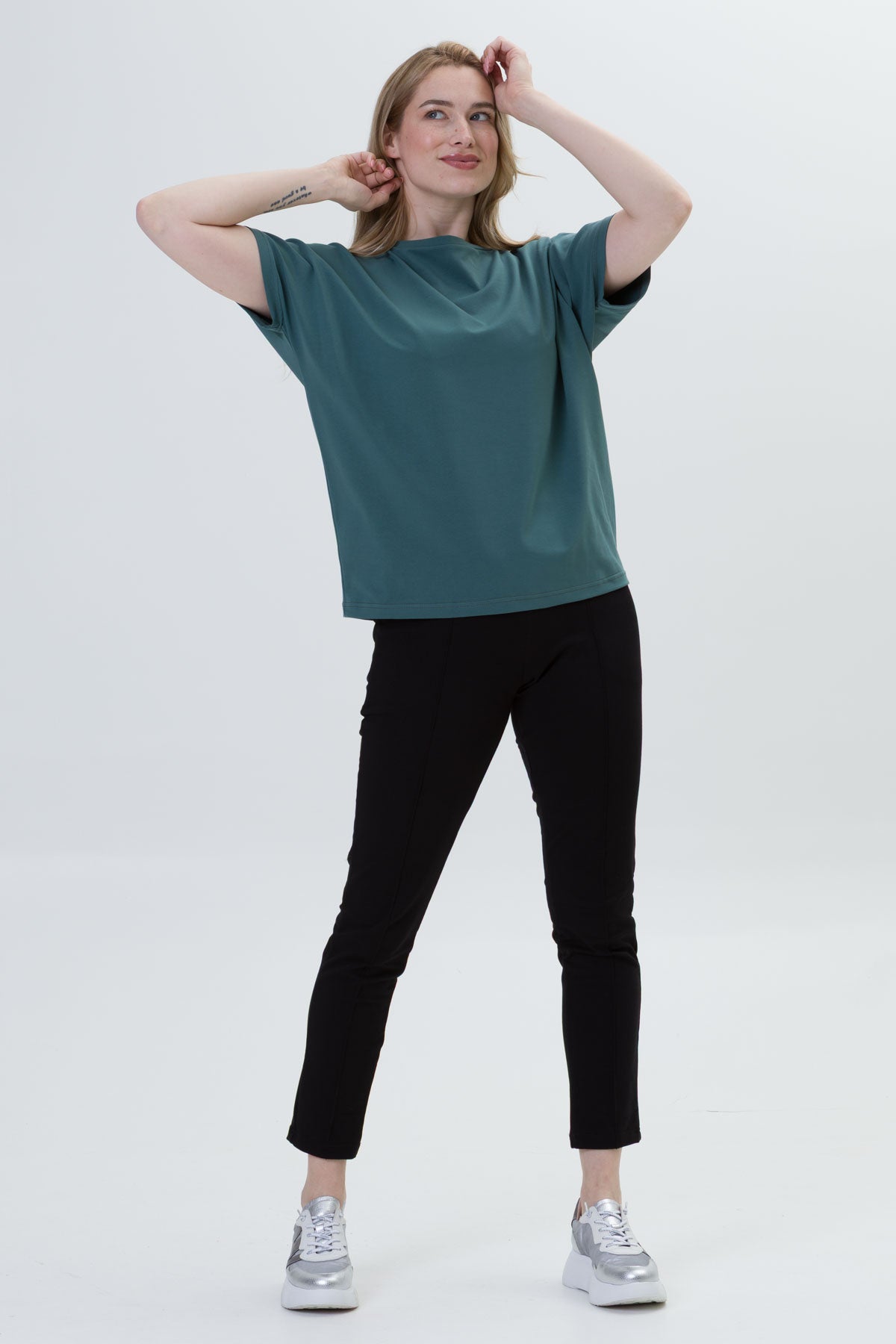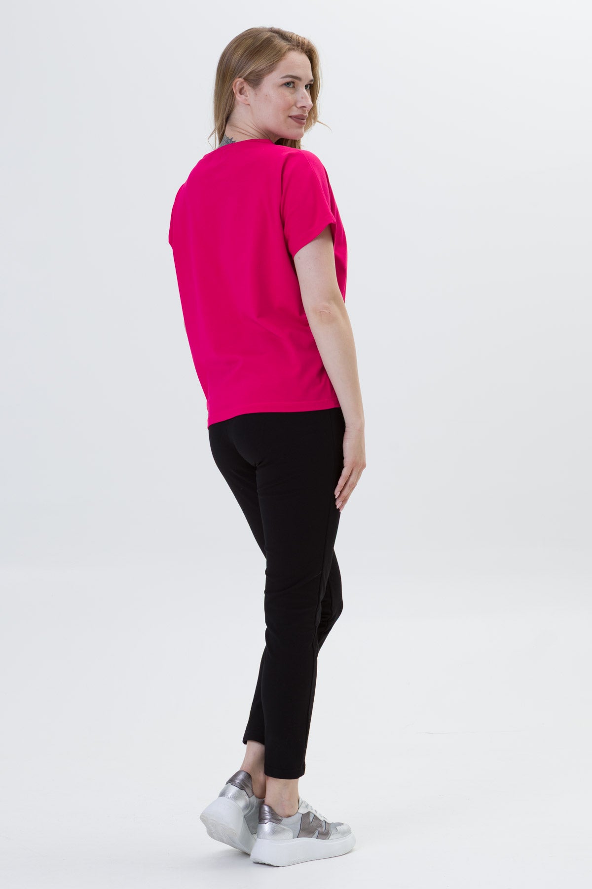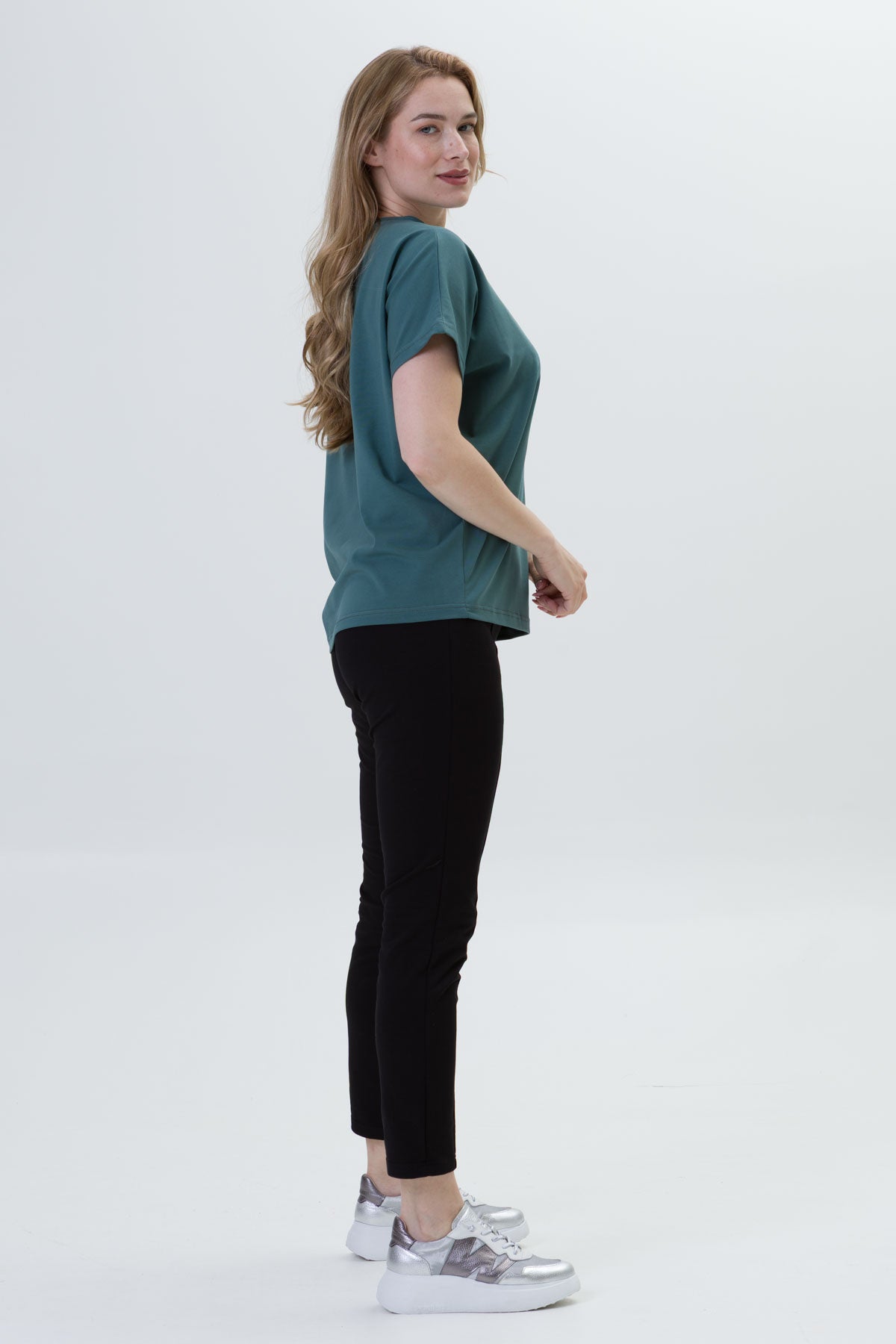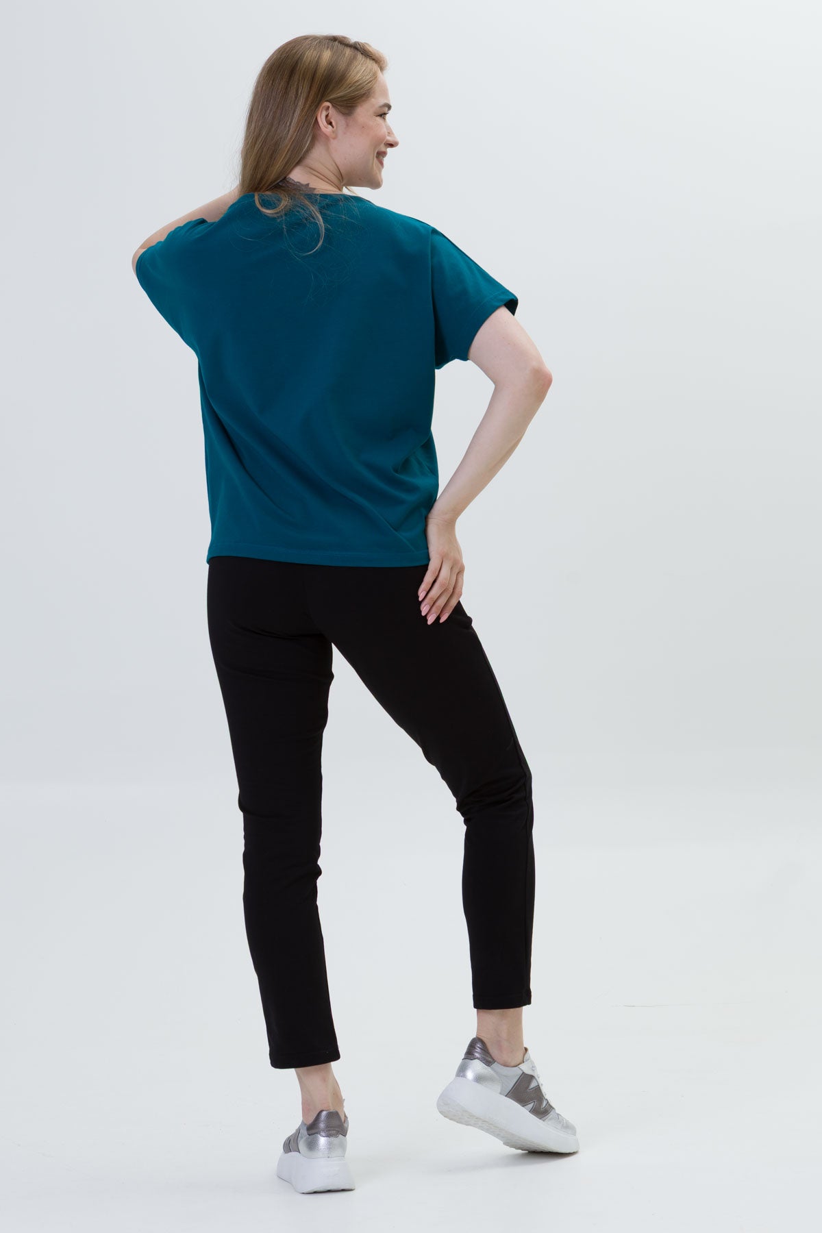 - Ta bluzka to kwintesencja swobody i minimalizmu, doskonała dla kochających prostotę z nutką elegancji. Jest to klasyczny biały T-shirt o luźnym kroju, który gwarantuje komfort noszenia i uniwersalność. Szerokie, krótkie rękawy dodają nieformalnego charakteru i są świetne na cieplejsze dni. Wykonana z miękkiej i przewiewnej bawełny, będzie idealnym towarzyszem zarówno casualowych jeansów, jak i eleganckich spodni czy spódnic. To stylowa podstawa każdej garderoby.