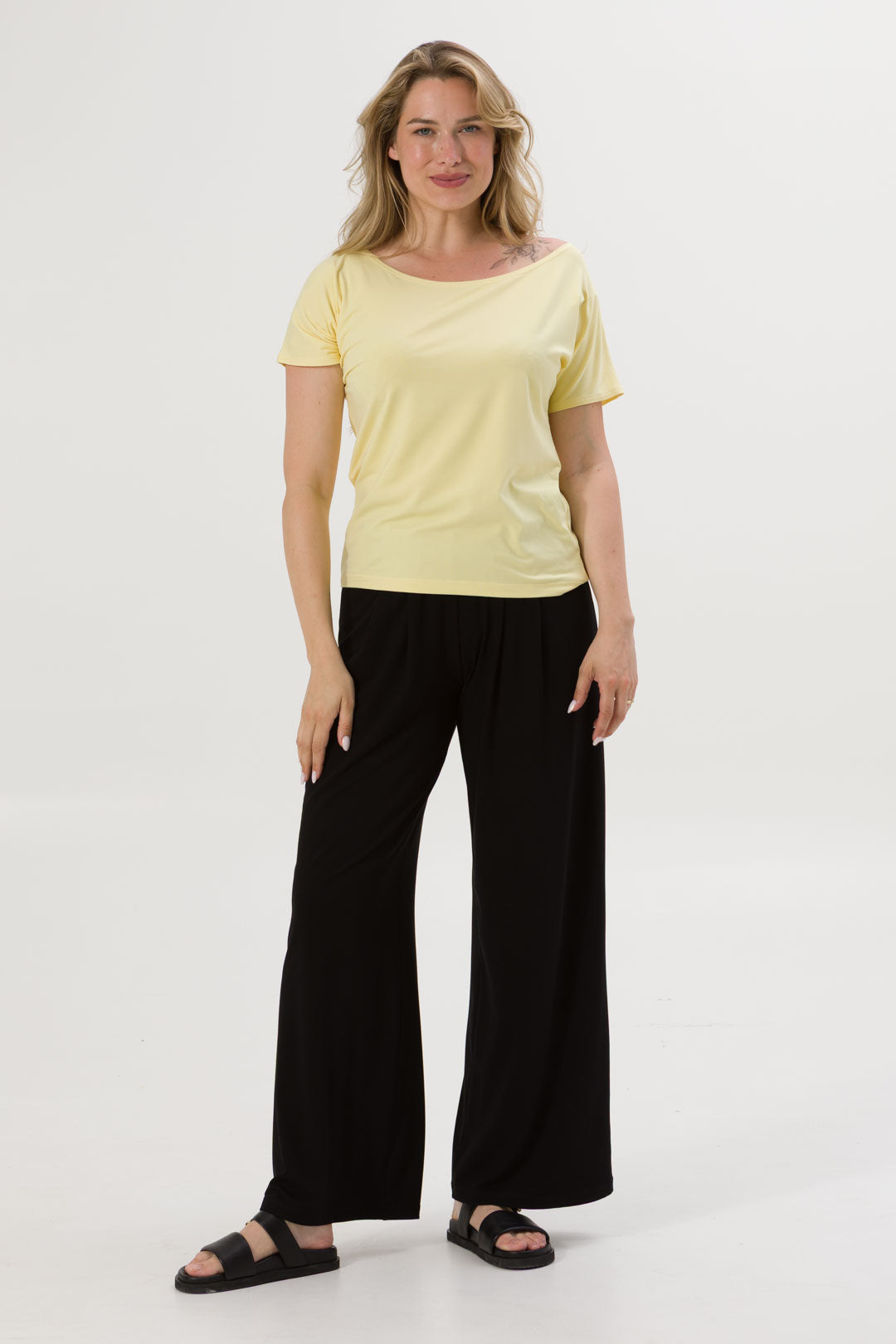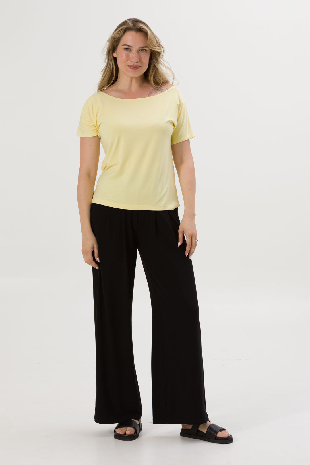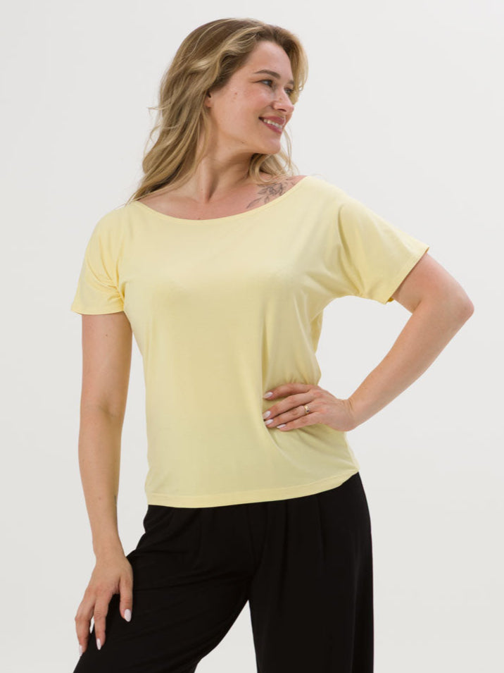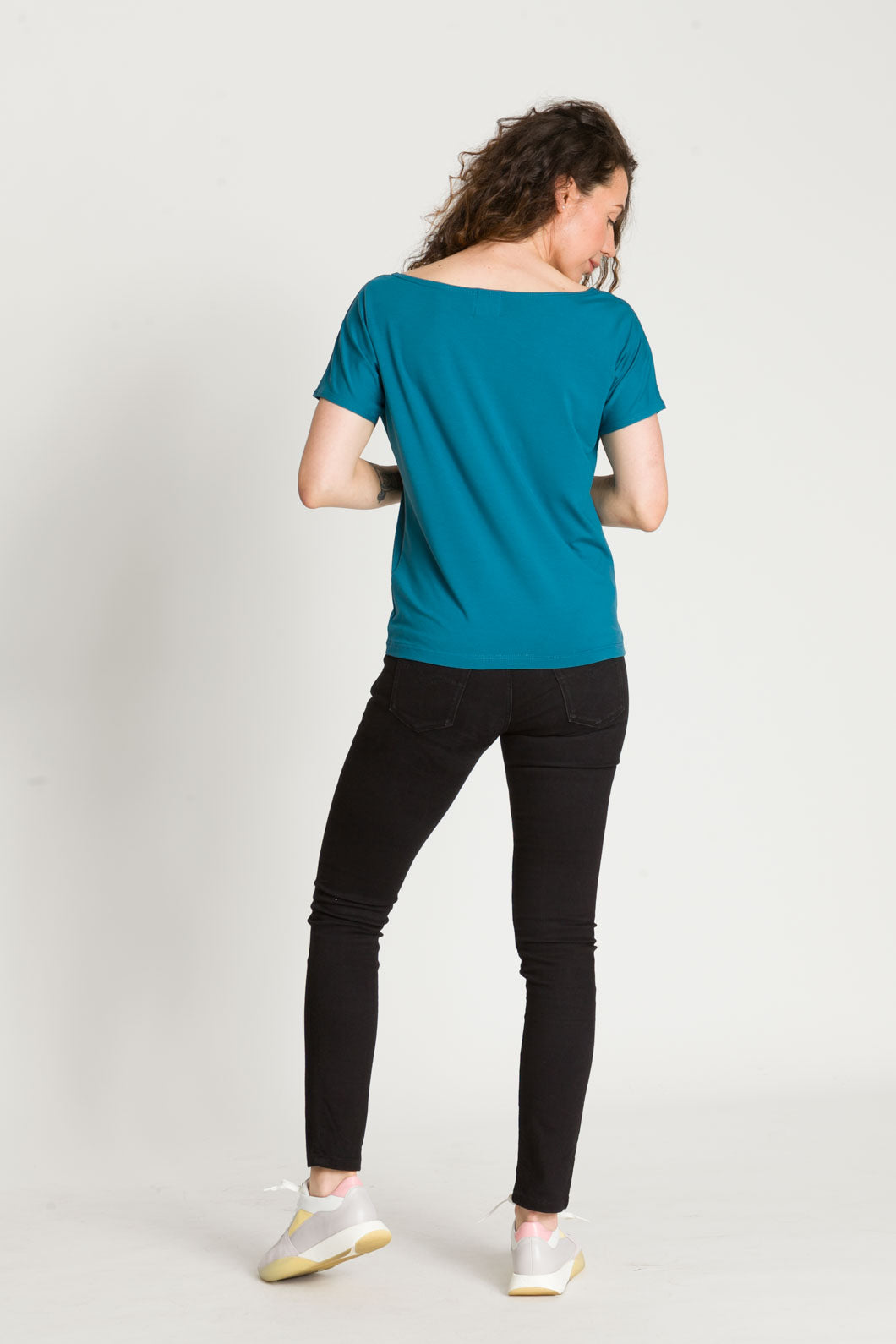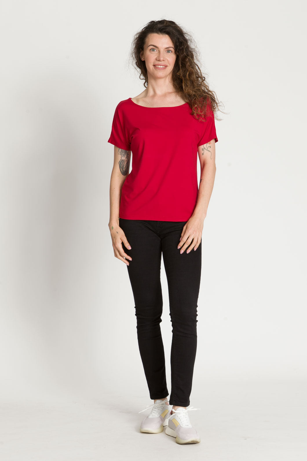 - Bluzka SARA jest uszyta na bazie Waszych ulubionych modeli - Tetyda, Brigitte, Bea. Jest luźna, dzięki czemu jest wygodna. Ma okrągły dekolt, który możesz ułożyć prosto lub lekko zsunąć na ramię i sprawić, że stylizacja nabierze mocy.