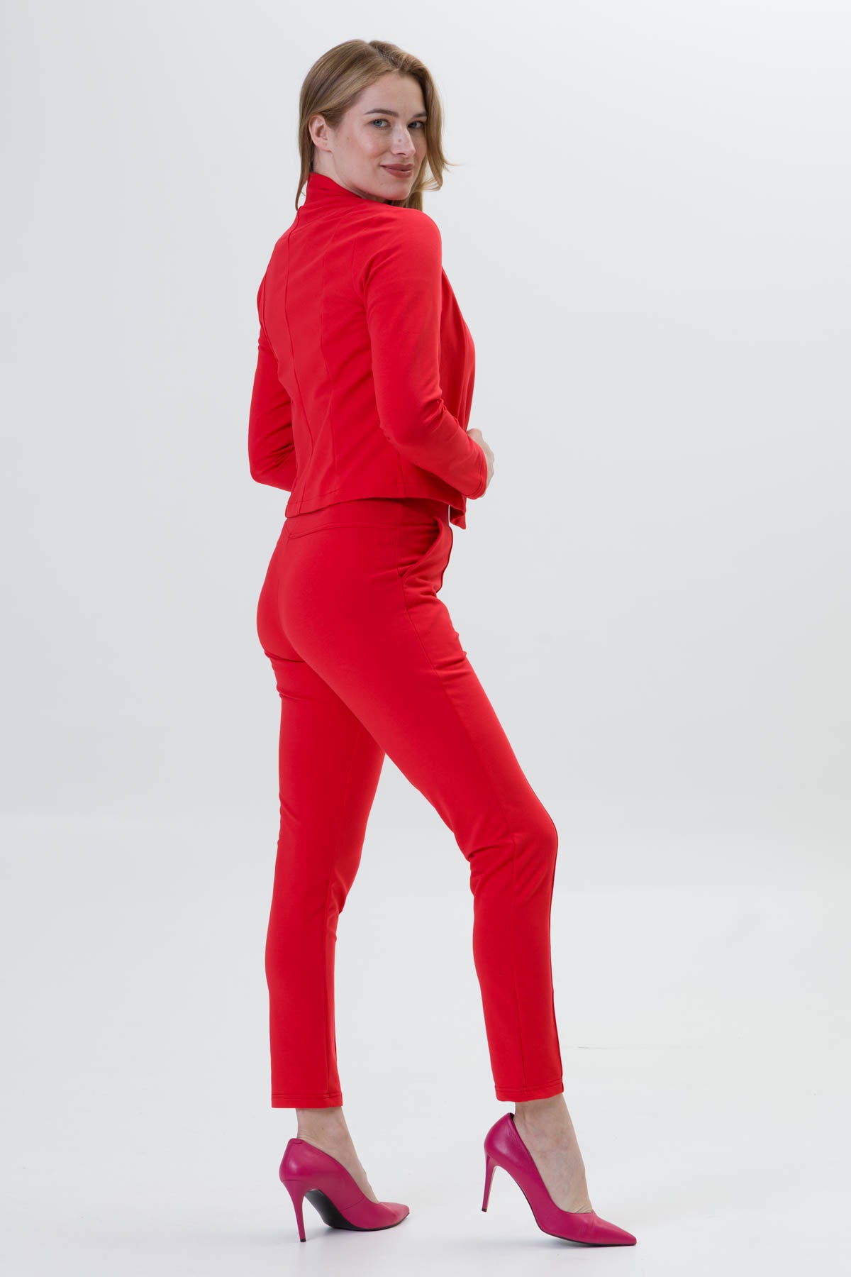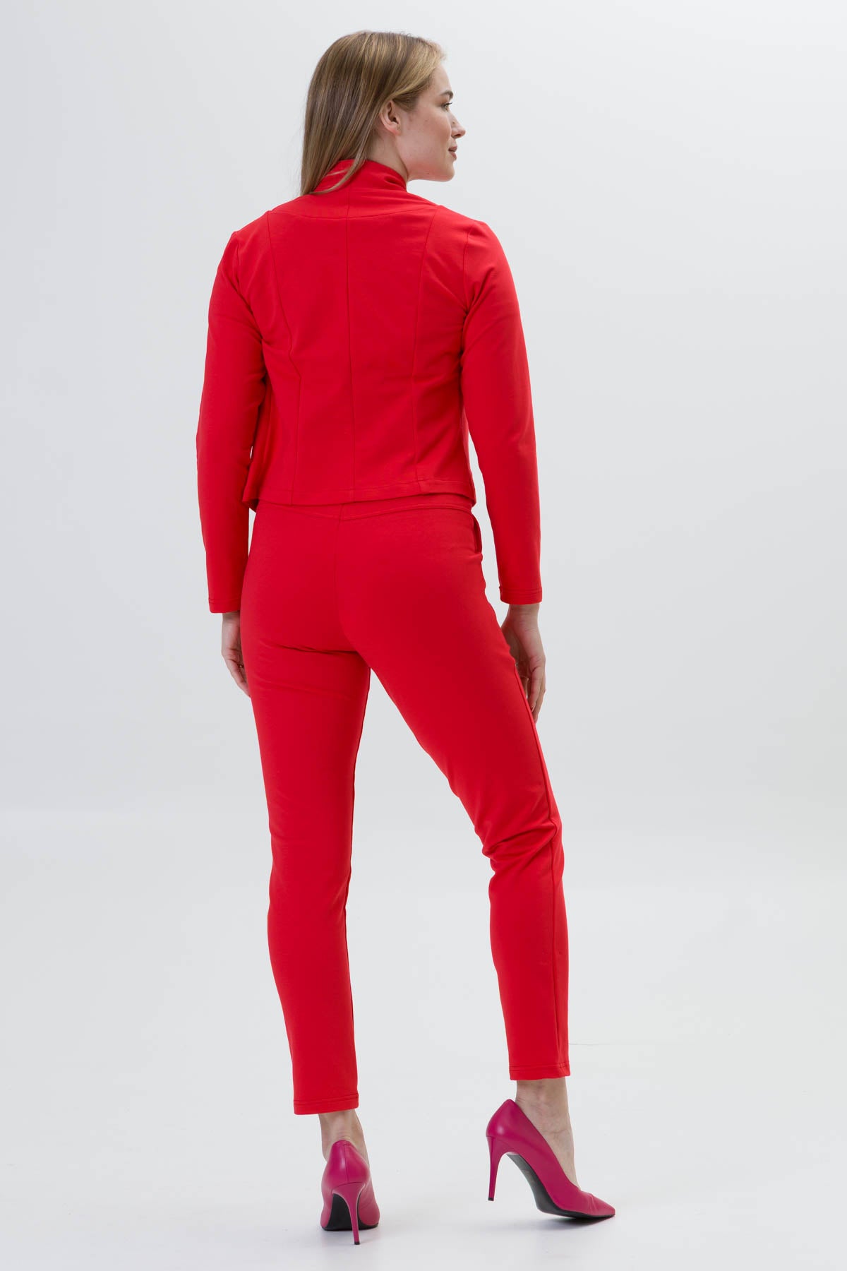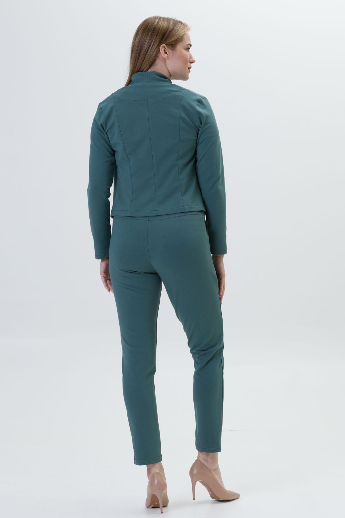 - MAGGIE to marynarka, którą uszyliśmy z dresowej dzianiny tym razem bez kieszeniami ale ze stójką, która pięknie eksponuje szyję. Jeżeli zestawisz ją z jedną z naszych spódnic lub sukienek otrzymasz elegancką i kobiecą stylizację na spotkanie lub randkę, natomiast ubrana do naszych spodni będzie towarzyszyła ci na co dzień.