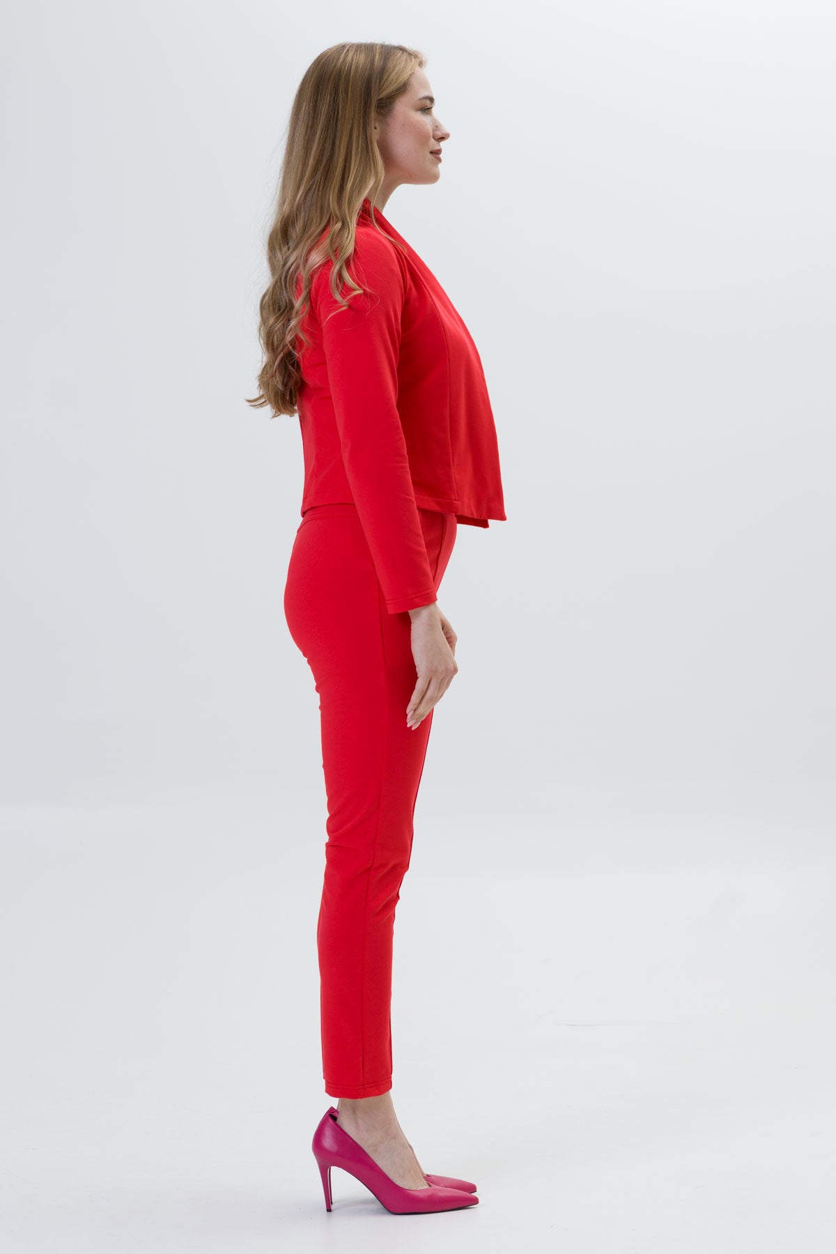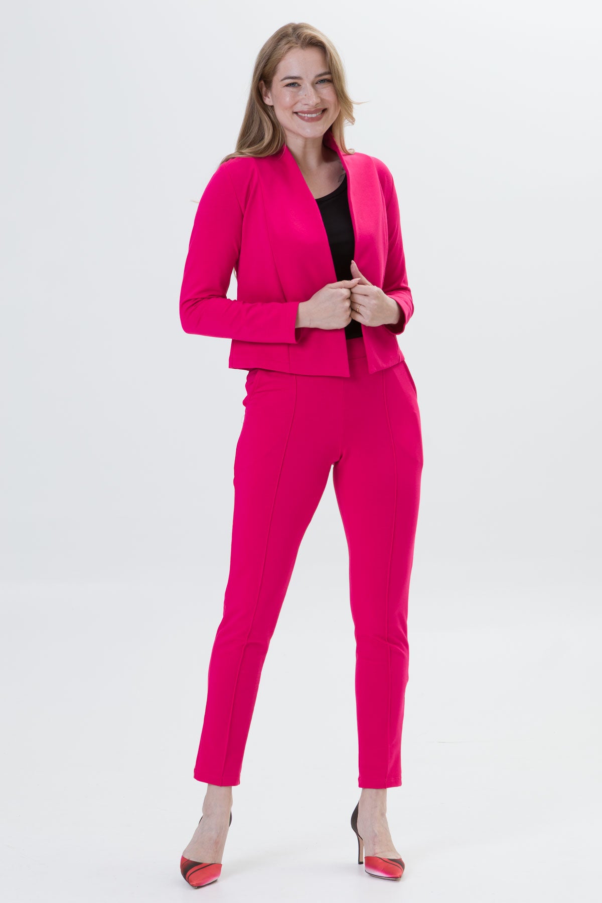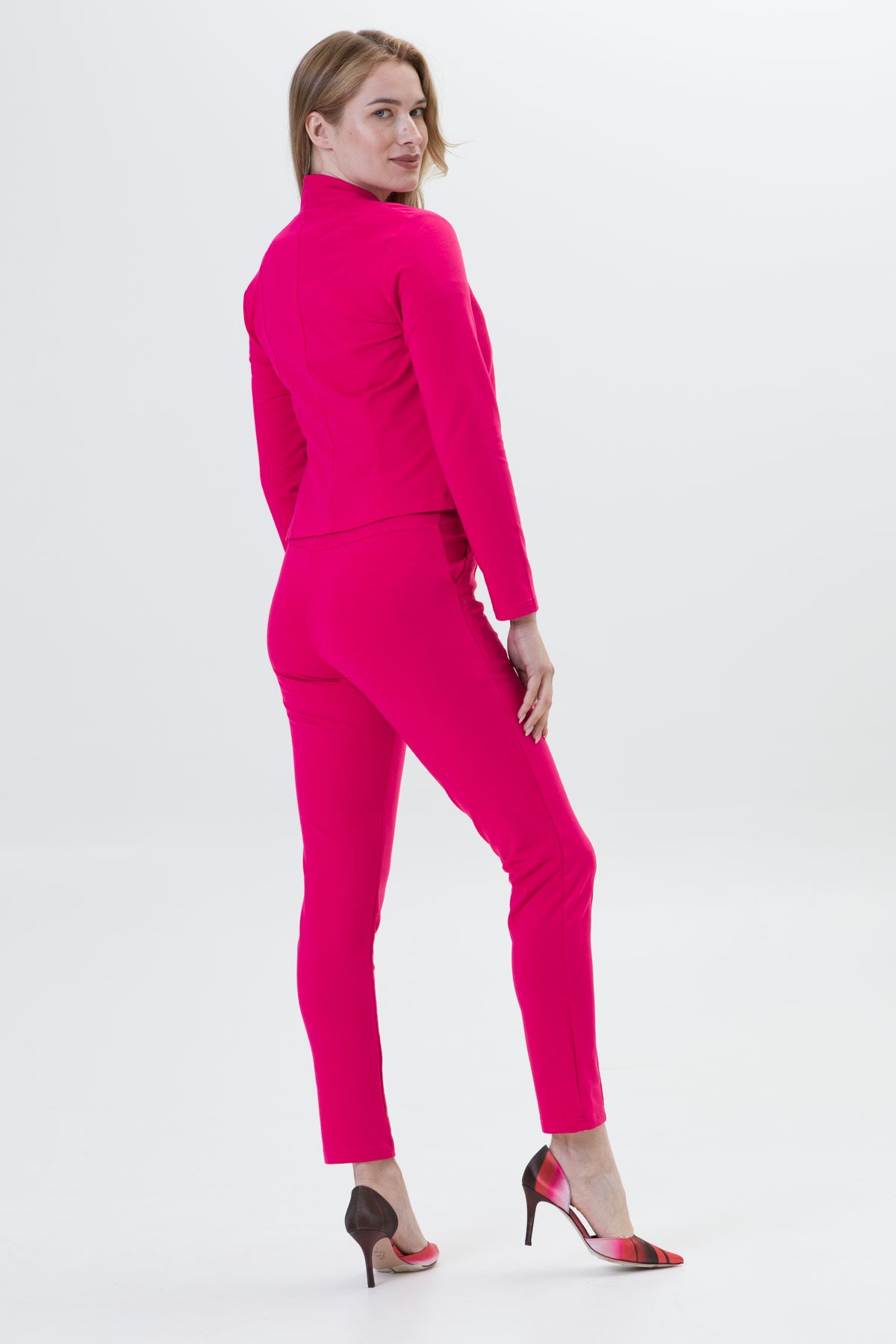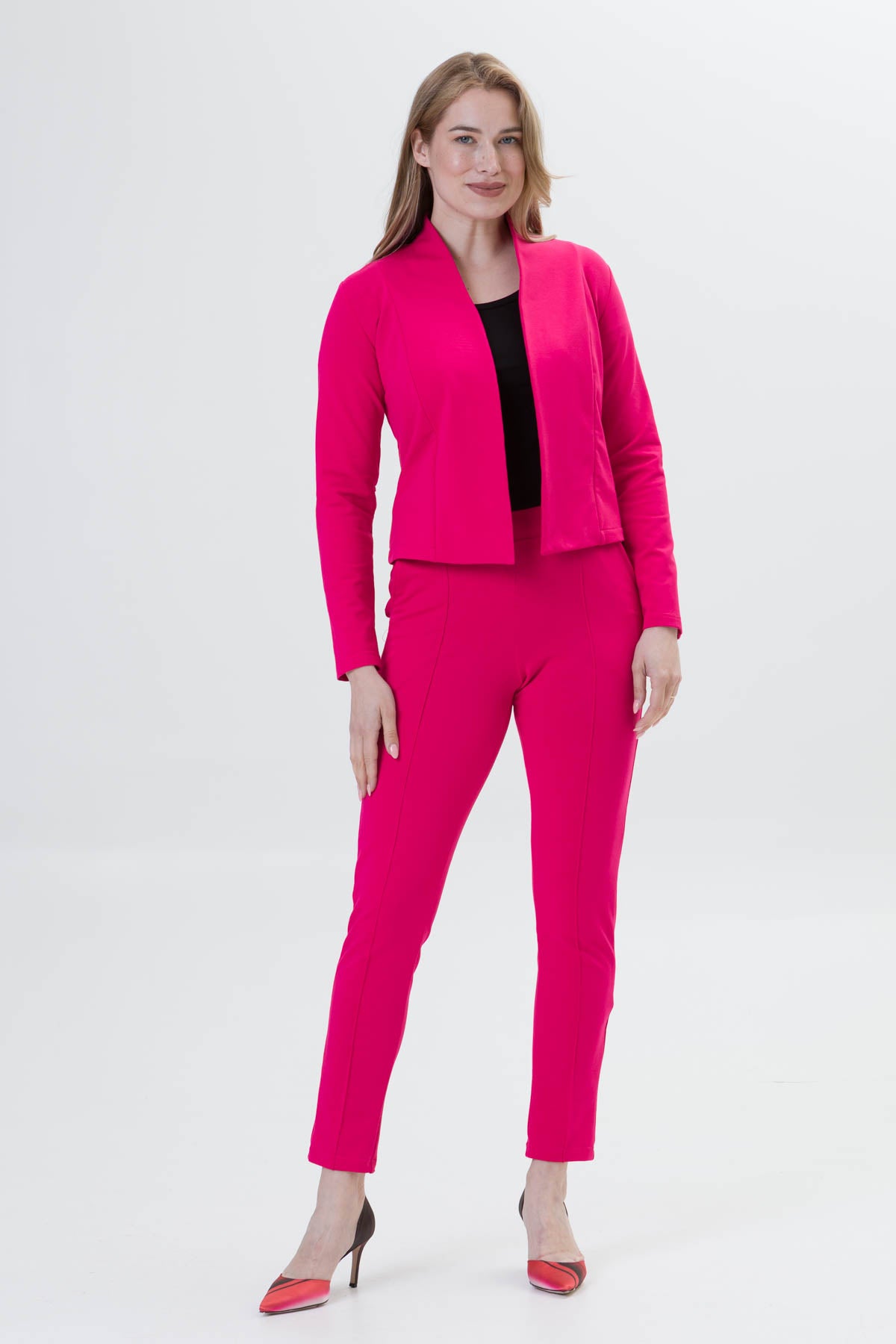 - MAGGIE to marynarka, którą uszyliśmy z dresowej dzianiny tym razem bez kieszeniami ale ze stójką, która pięknie eksponuje szyję. Jeżeli zestawisz ją z jedną z naszych spódnic lub sukienek otrzymasz elegancką i kobiecą stylizację na spotkanie lub randkę, natomiast ubrana do naszych spodni będzie towarzyszyła ci na co dzień.