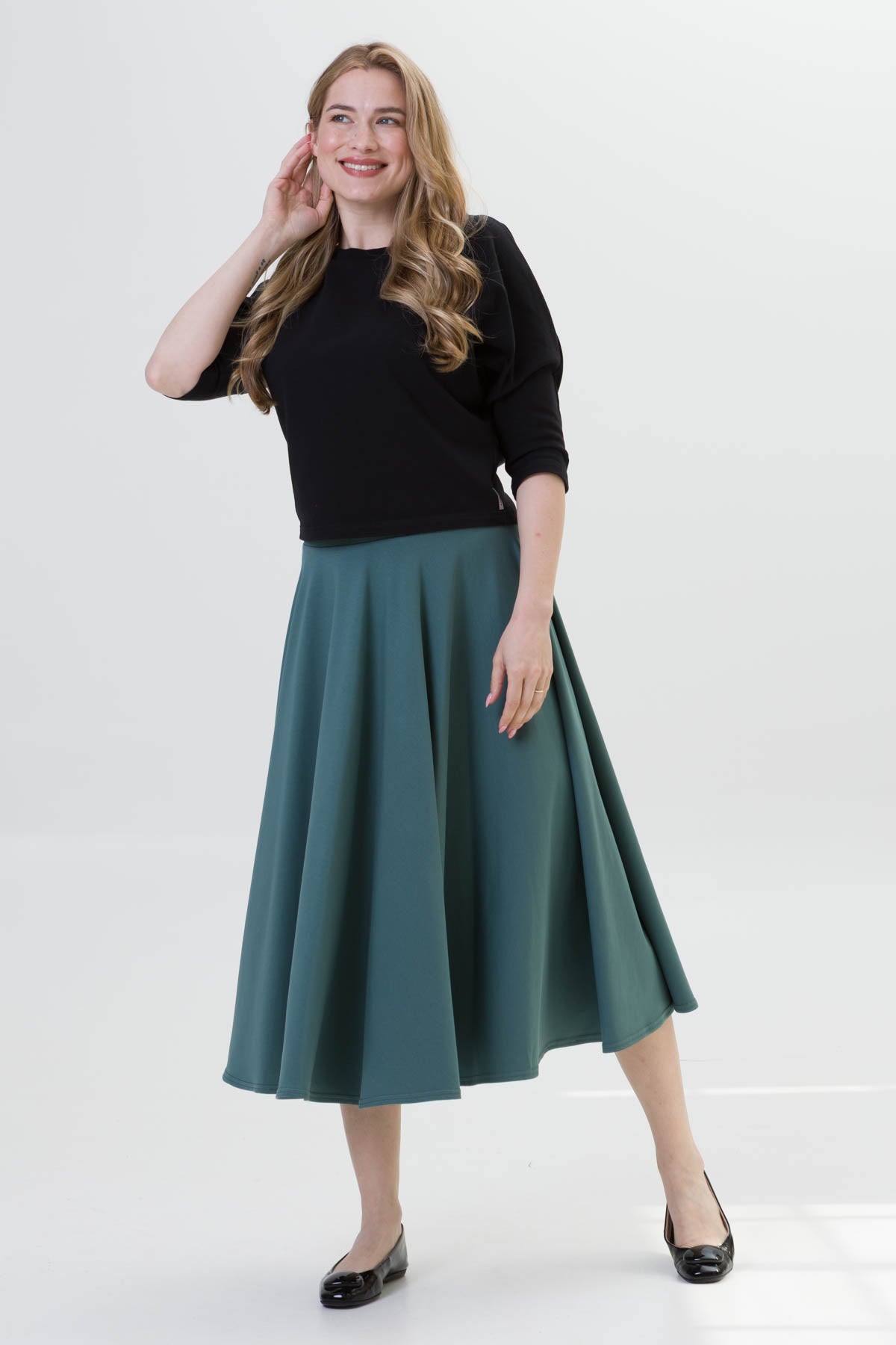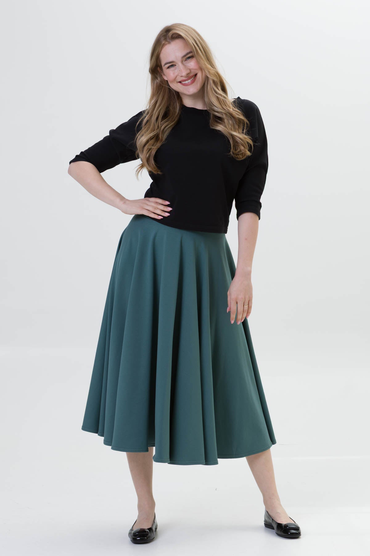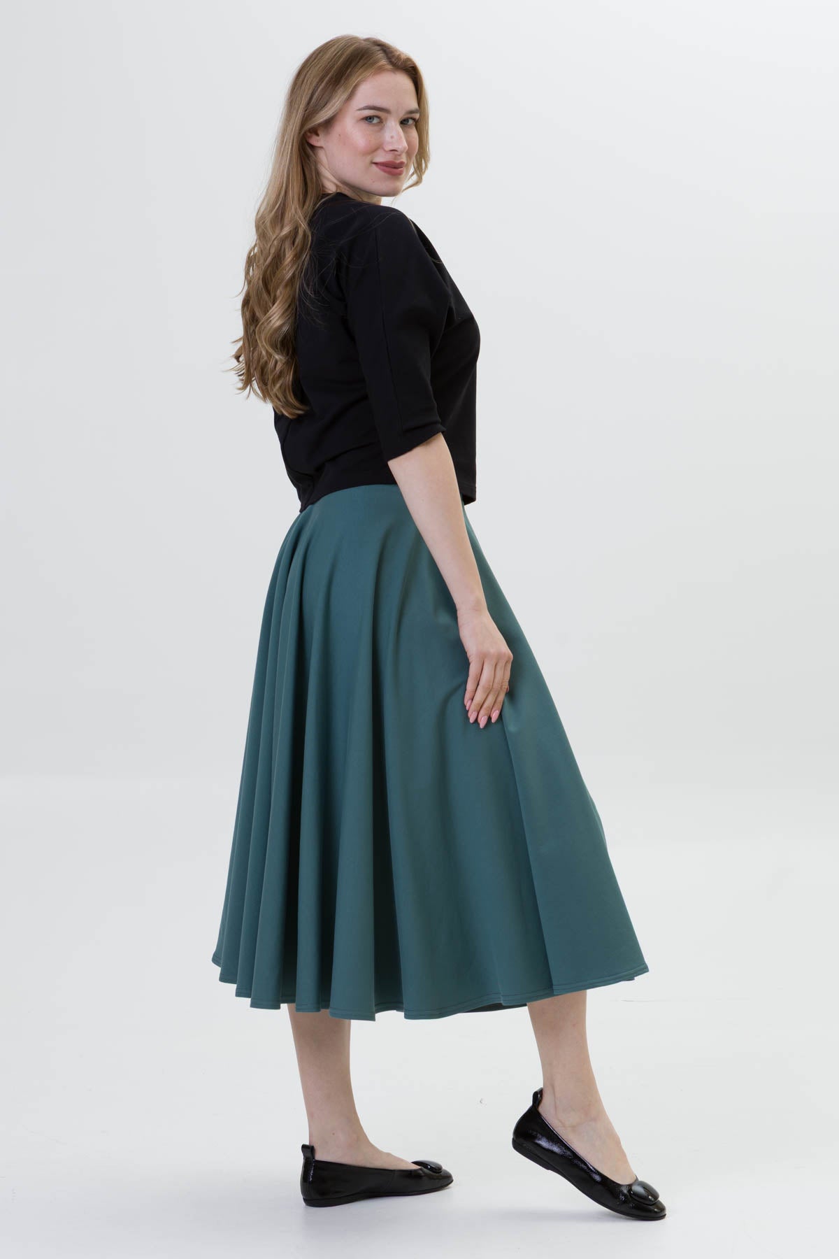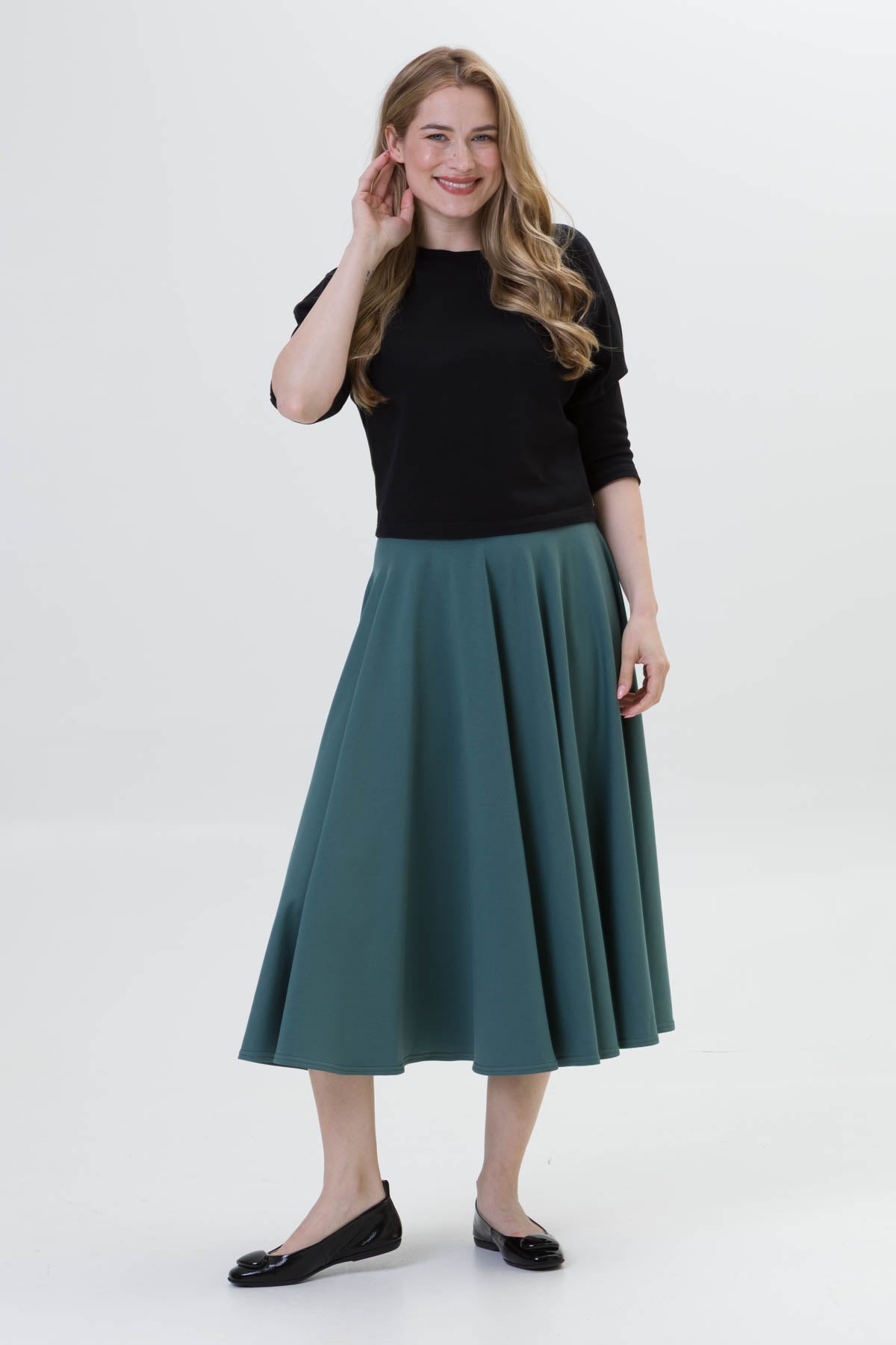 ARIS — nowa odsłona klasyki.Spódnica z pełnego koła to ponadczasowy fason, który nigdy nie wychodzi z mody. Choć wygląda lekko i zwiewnie, pochłania najwięcej materiału — wszystko po to, by idealnie układała się na biodrach, podkreślała talię i płynęła z każdym Twoim krokiem.