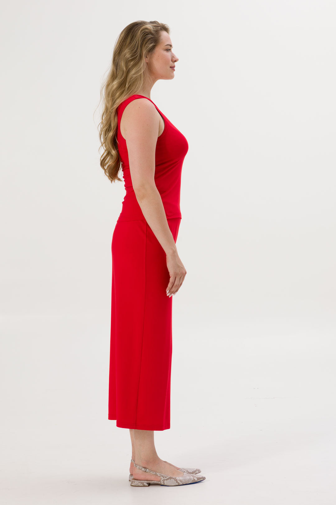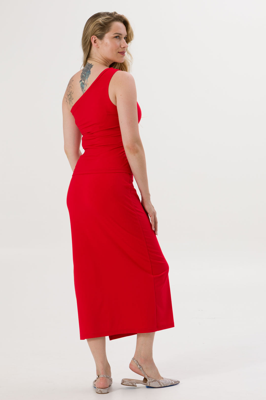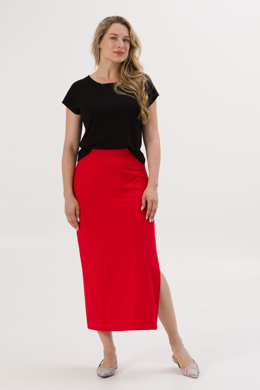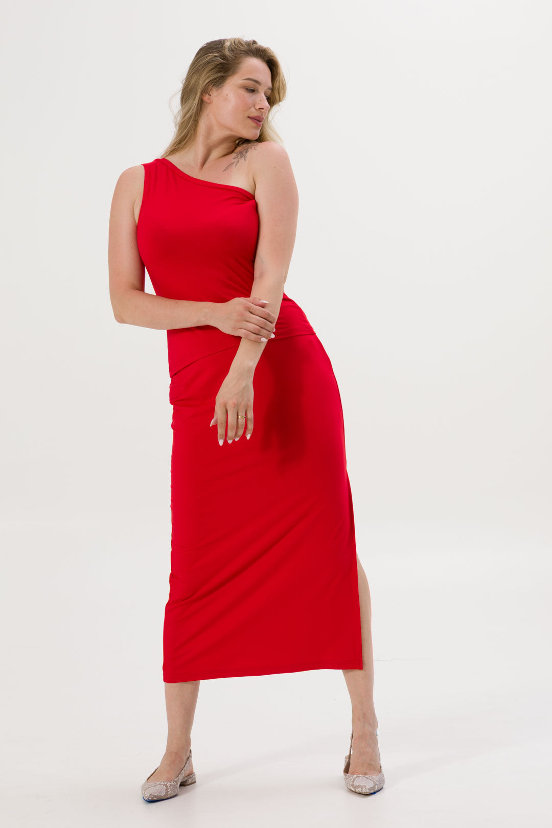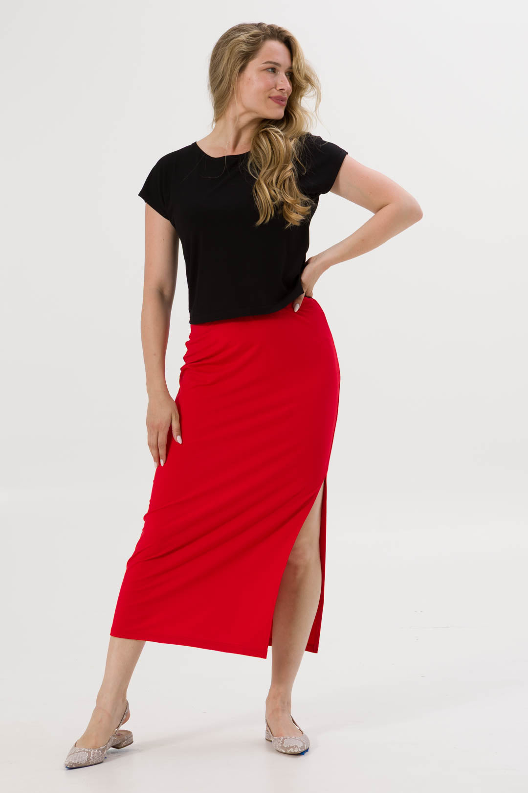 Prosty, dopasowany krój, który podkreśla kobiecą sylwetkę. I ten jeden detal – rozporek, który z każdym krokiem subtelnie odsłania nogę, dodając lekkości i pewności siebie.