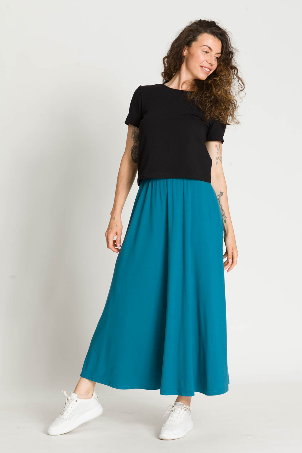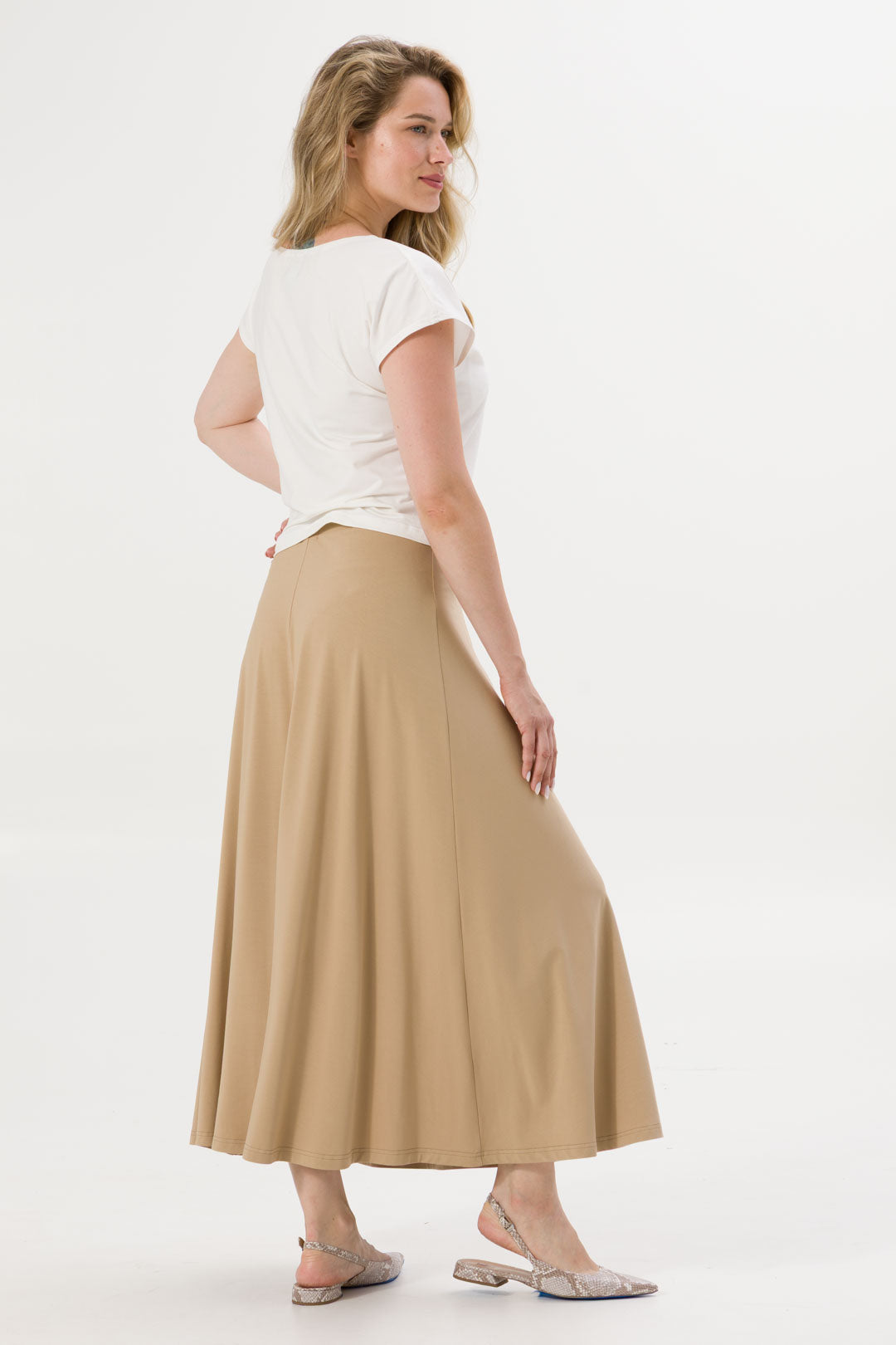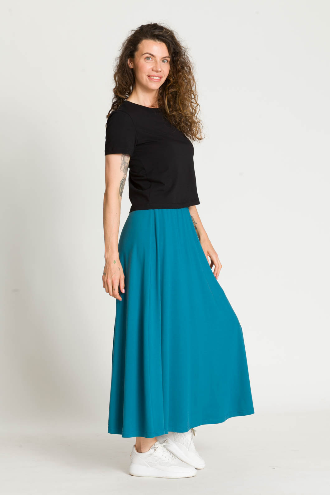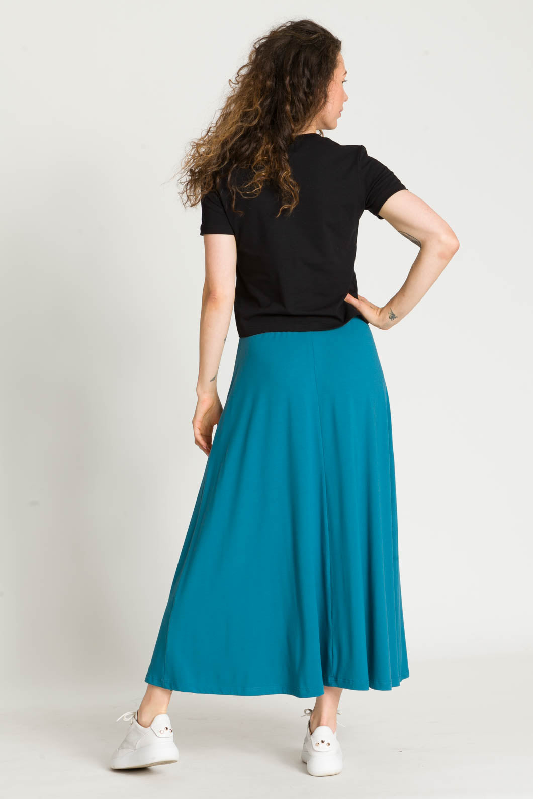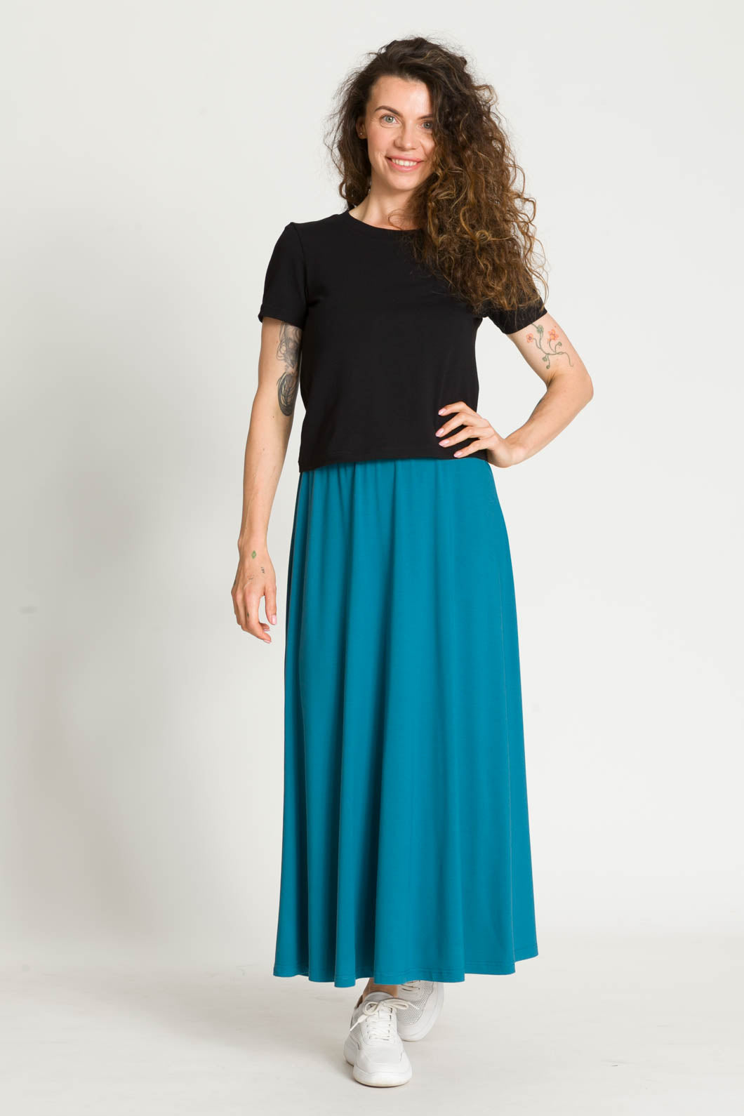 - LEXI to elegancka i wygodna spódnica, która sprawdzi się w wielu sytuacjach. W pasie ma lekkie marszczenie, które dodaje jej subtelnego uroku i kobiecości. Rozszerza się ku dołowi, co zapewnia swobodę ruchów oraz efektywnie układa się podczas chodzenia.