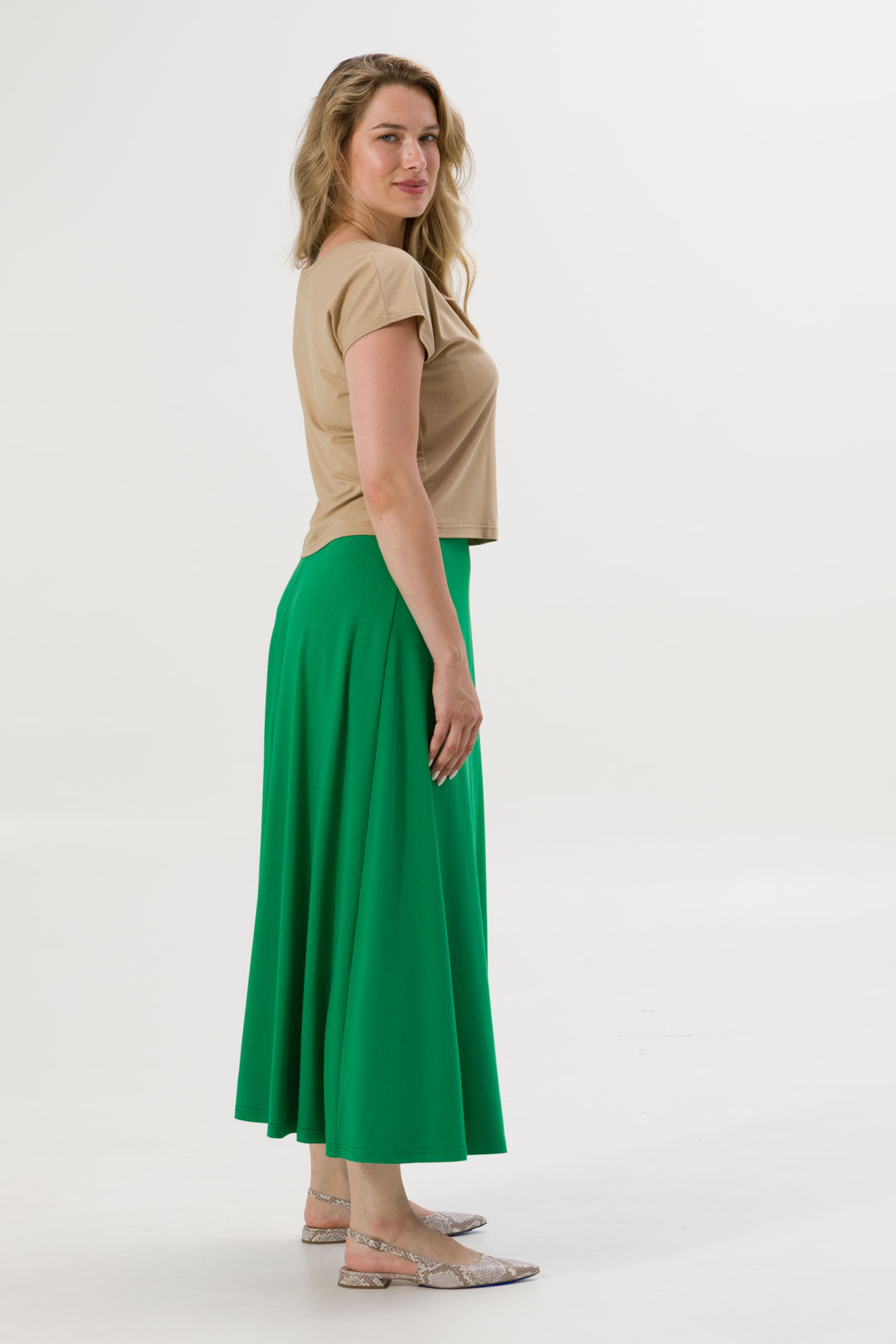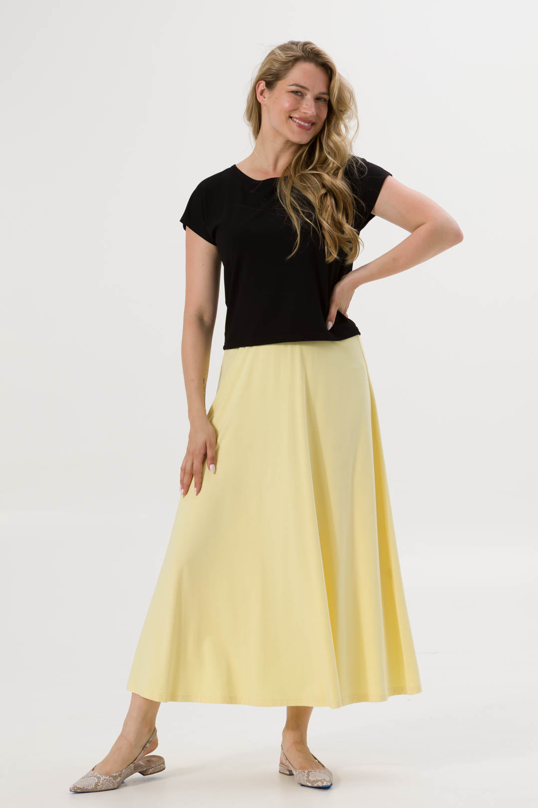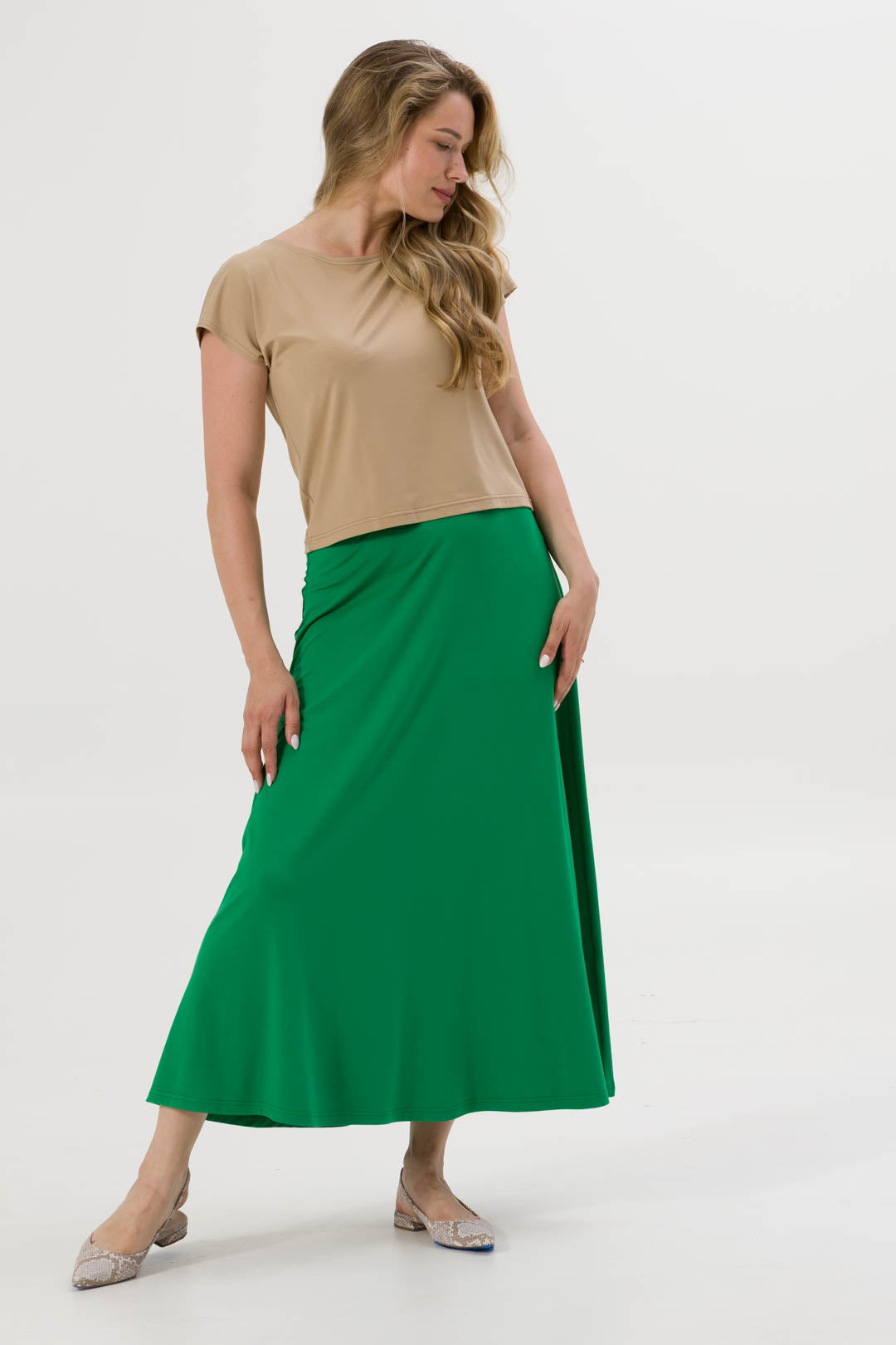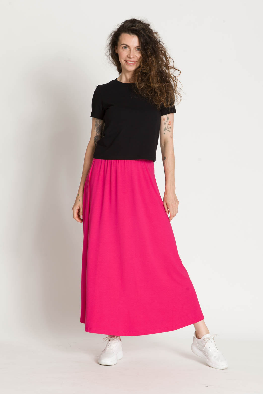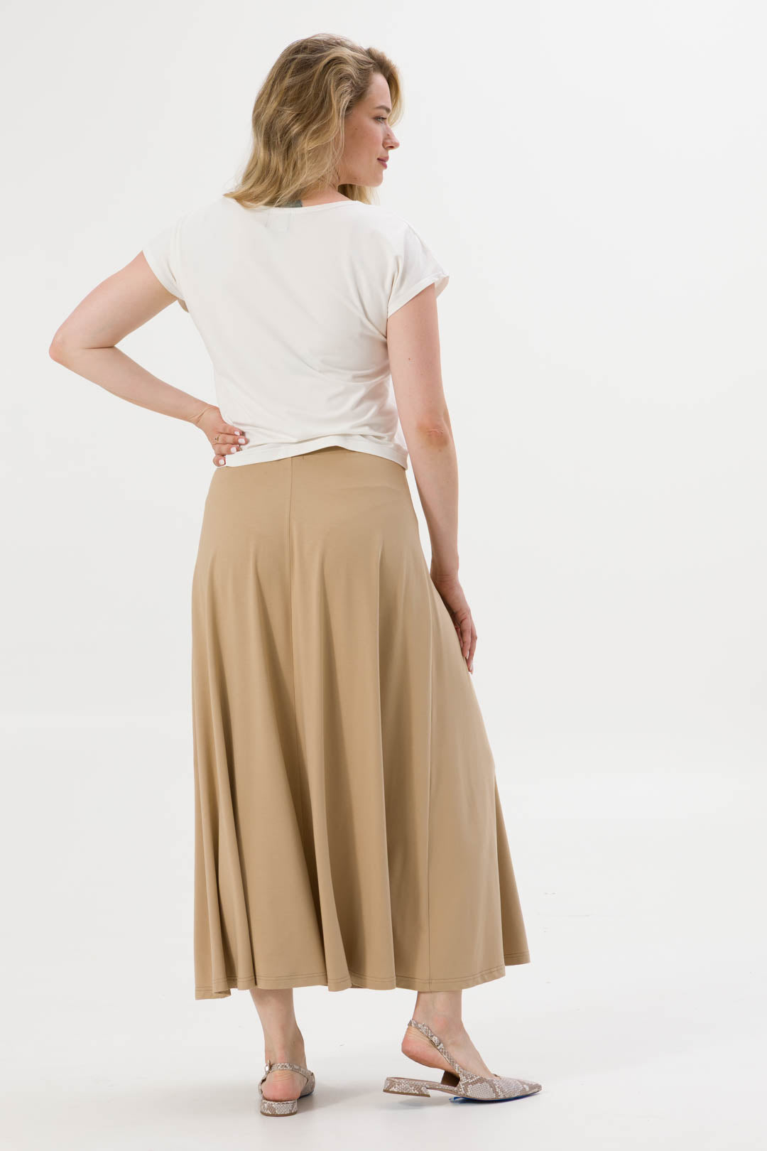 - LEXI to elegancka i wygodna spódnica, która sprawdzi się w wielu sytuacjach. W pasie ma lekkie marszczenie, które dodaje jej subtelnego uroku i kobiecości. Rozszerza się ku dołowi, co zapewnia swobodę ruchów oraz efektywnie układa się podczas chodzenia.