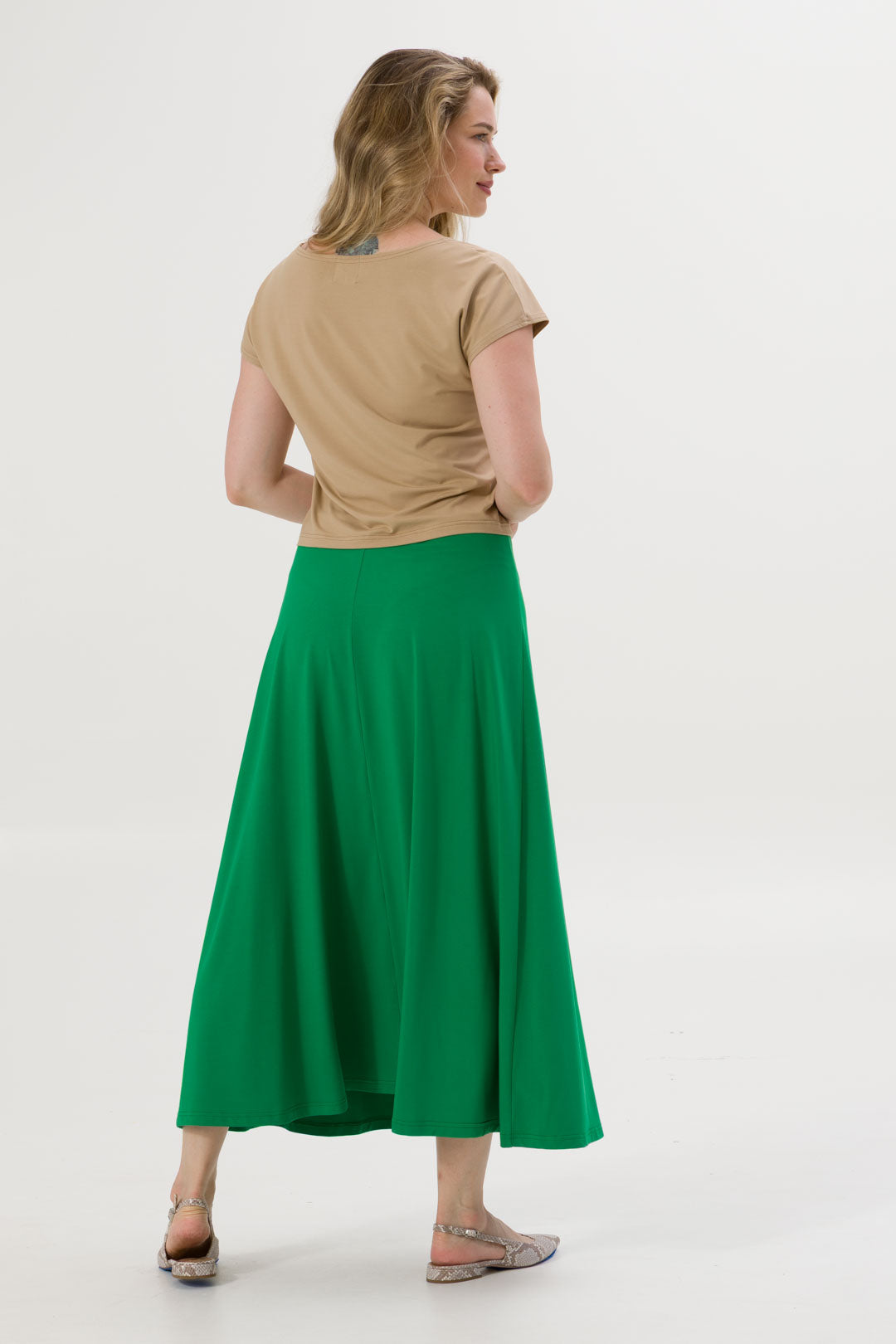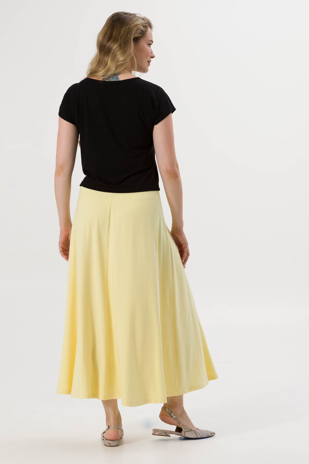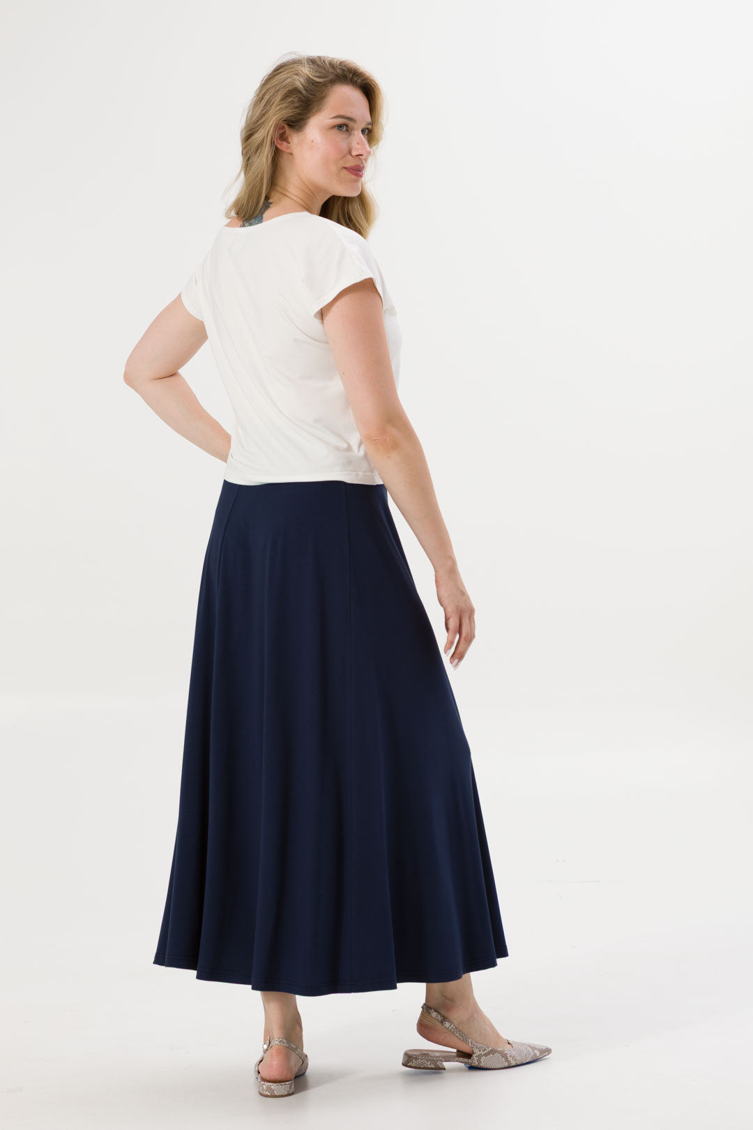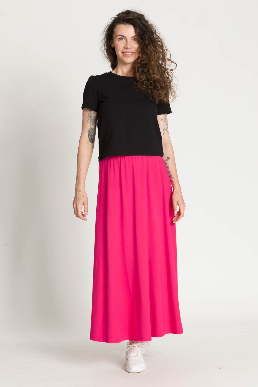 - LEXI to elegancka i wygodna spódnica, która sprawdzi się w wielu sytuacjach. W pasie ma lekkie marszczenie, które dodaje jej subtelnego uroku i kobiecości. Rozszerza się ku dołowi, co zapewnia swobodę ruchów oraz efektywnie układa się podczas chodzenia.
