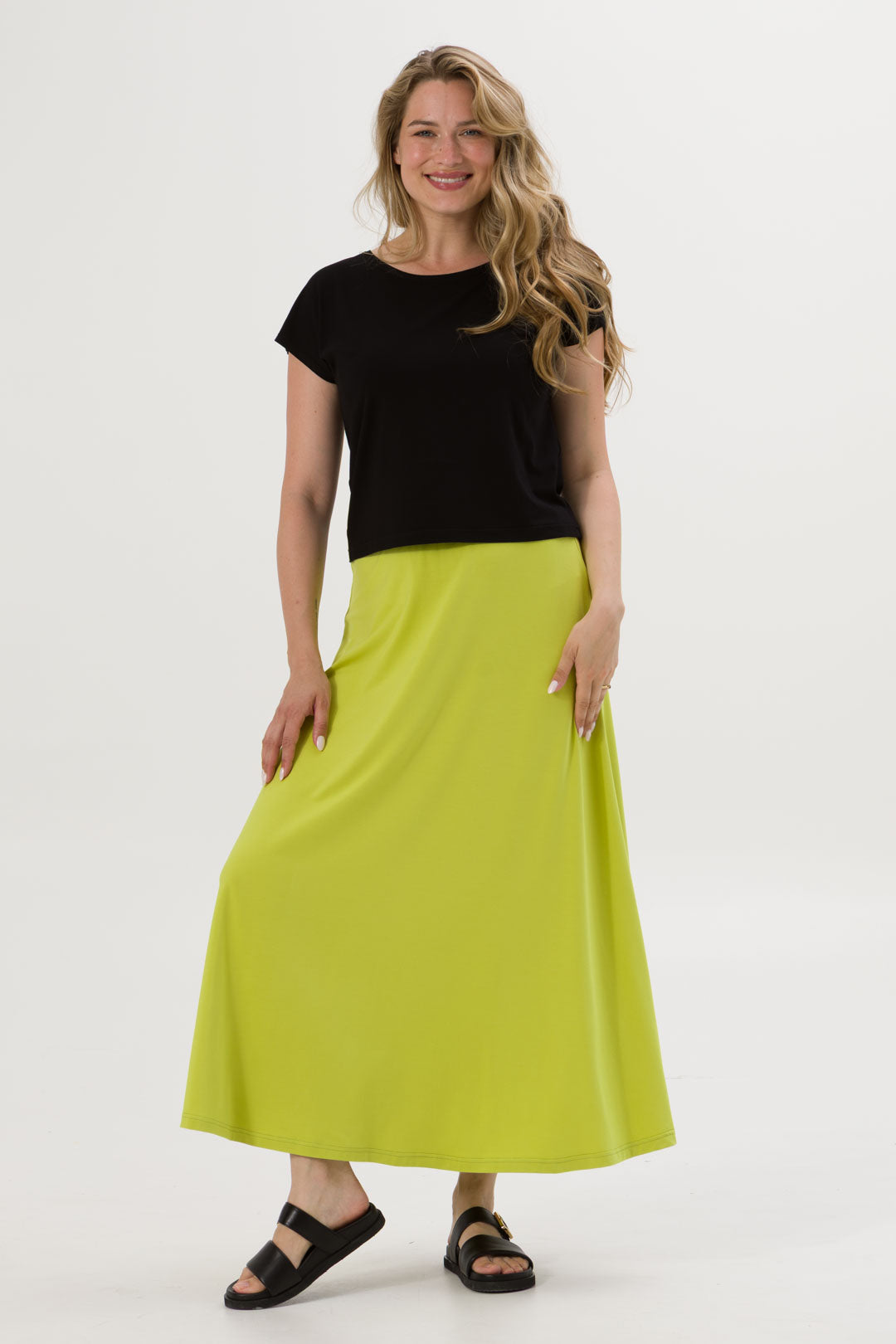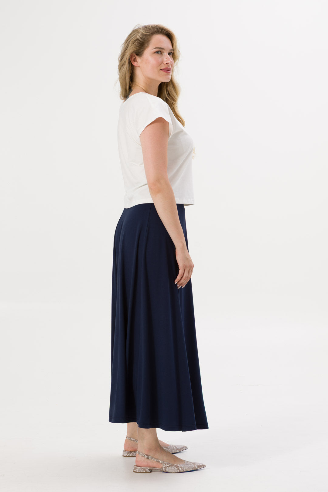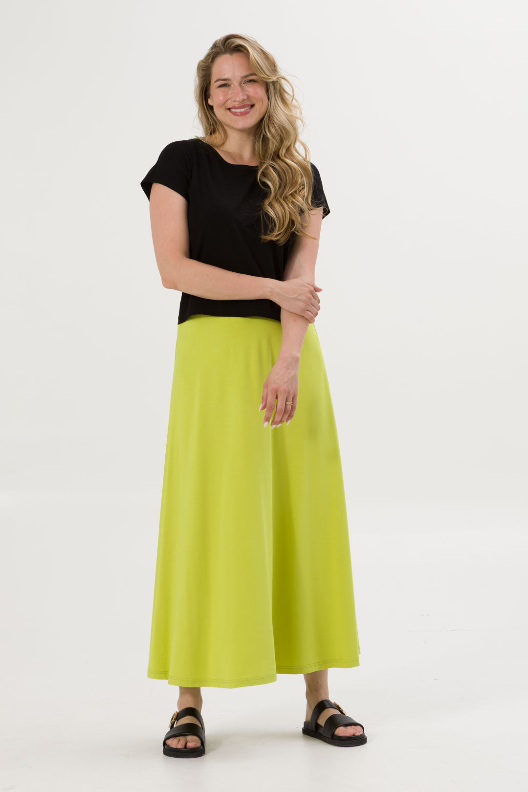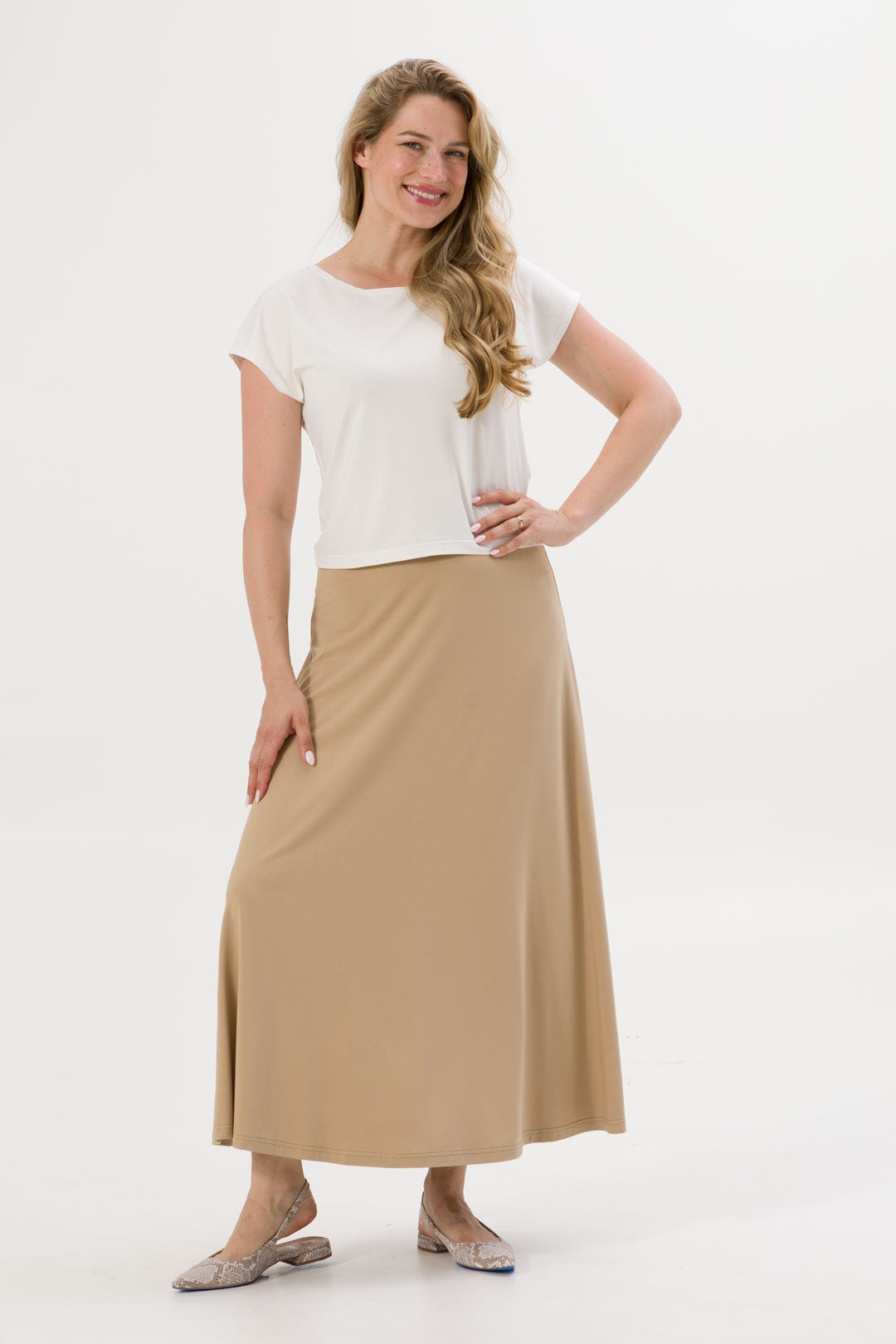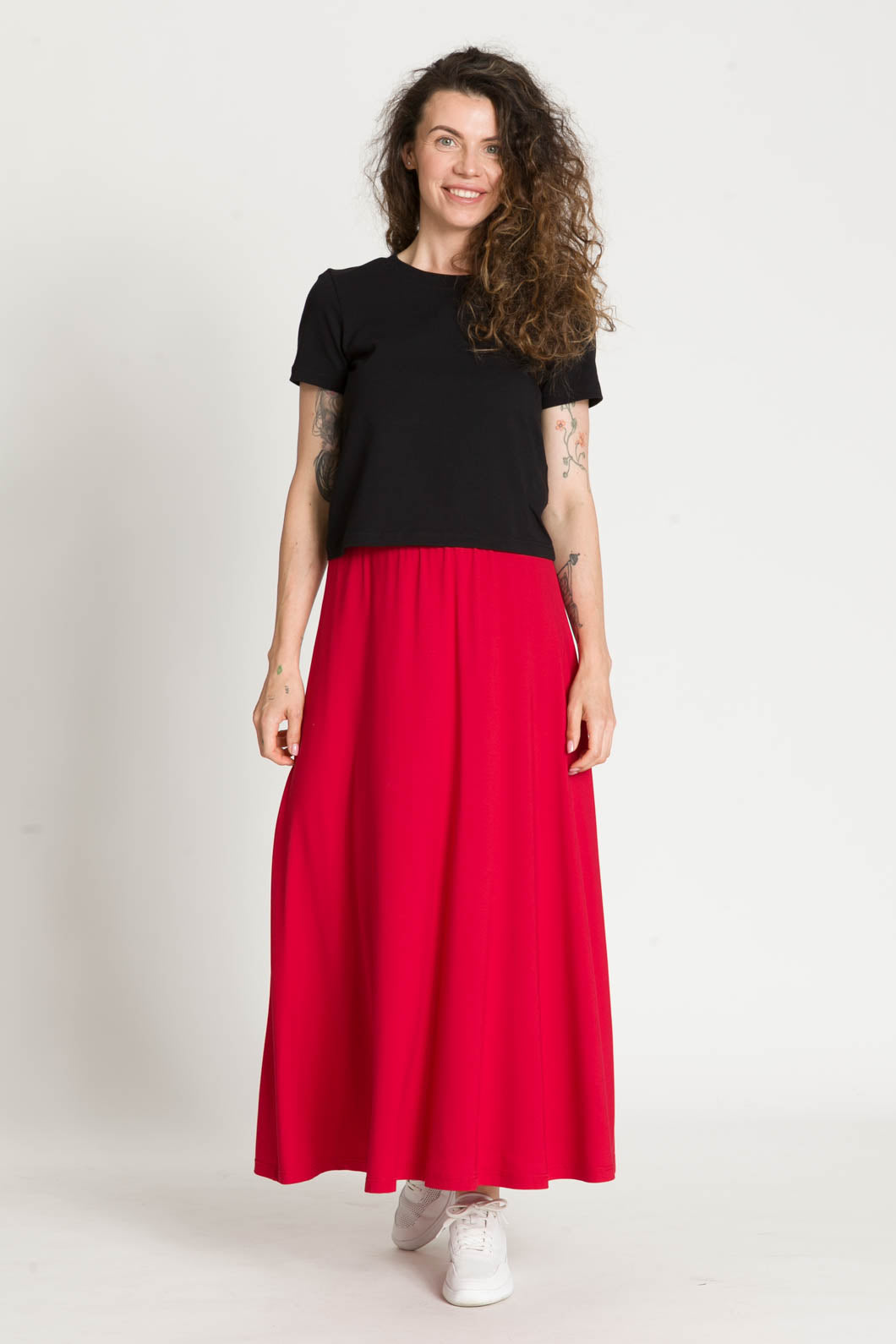 - LEXI to elegancka i wygodna spódnica, która sprawdzi się w wielu sytuacjach. W pasie ma lekkie marszczenie, które dodaje jej subtelnego uroku i kobiecości. Rozszerza się ku dołowi, co zapewnia swobodę ruchów oraz efektywnie układa się podczas chodzenia.