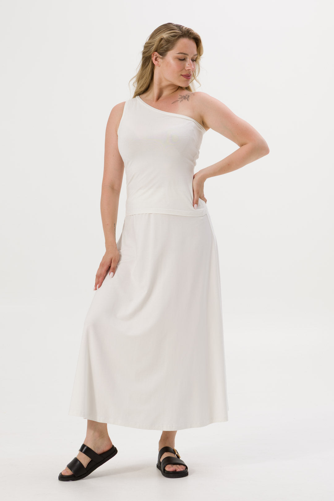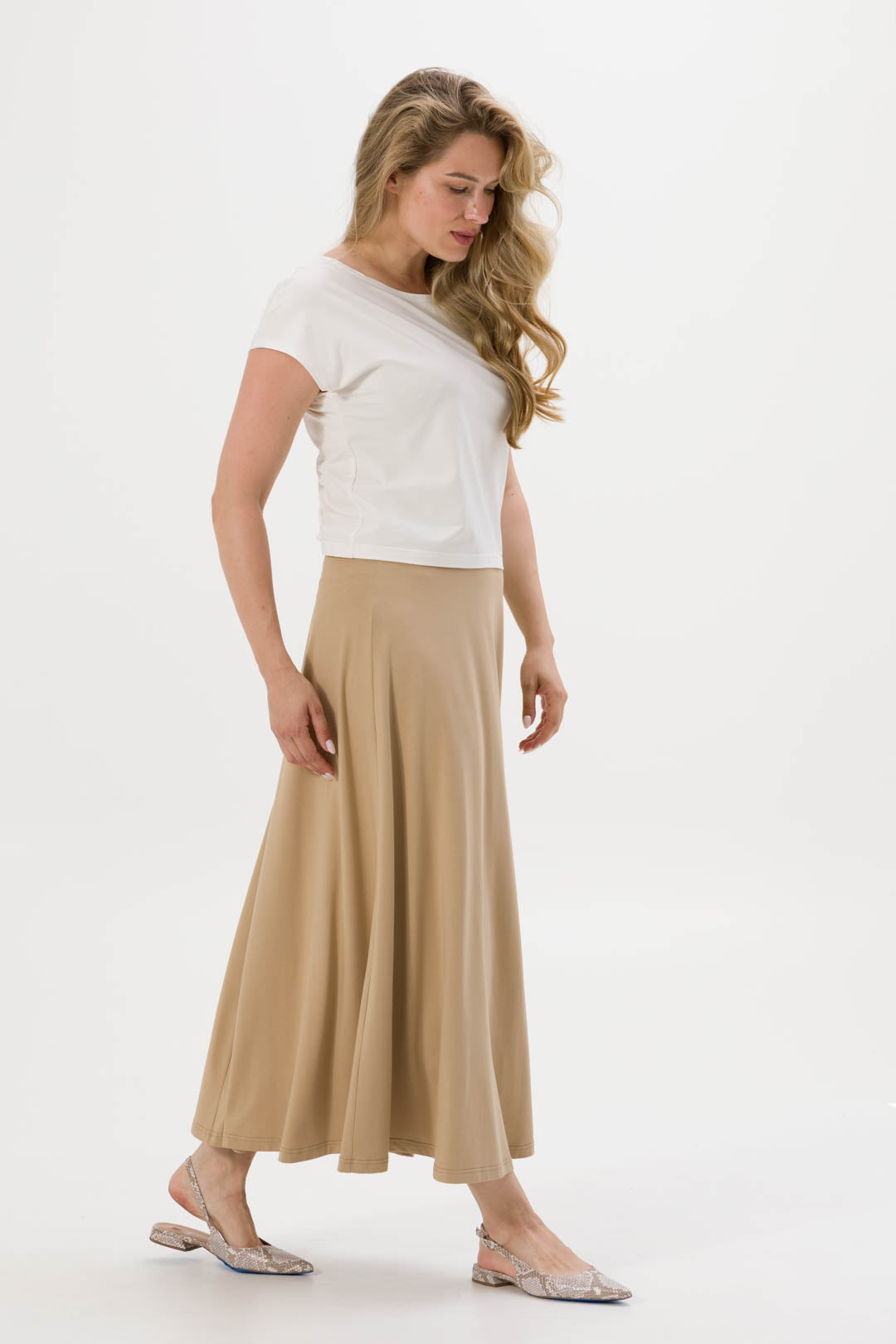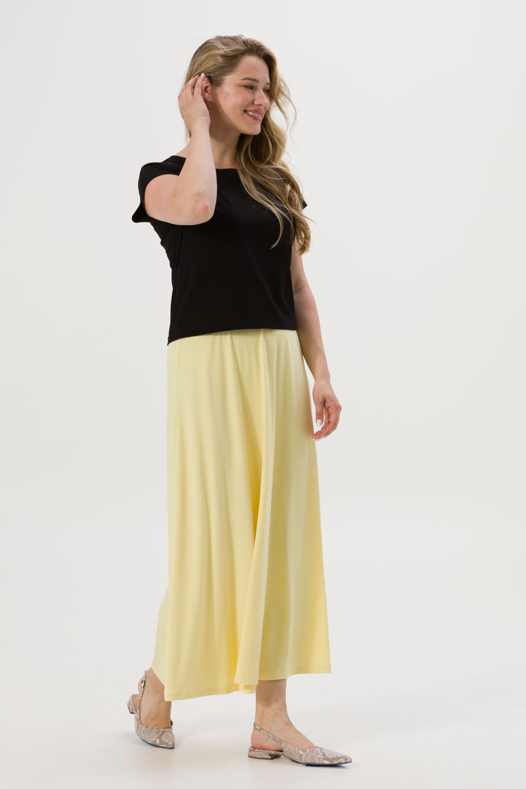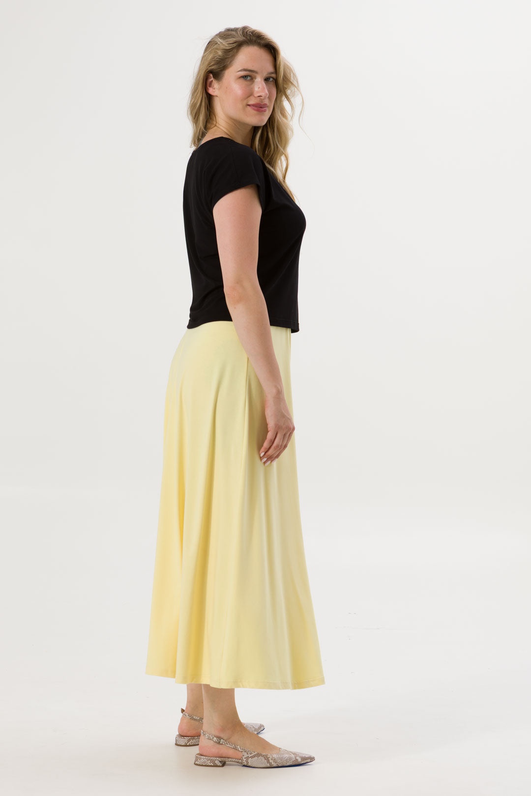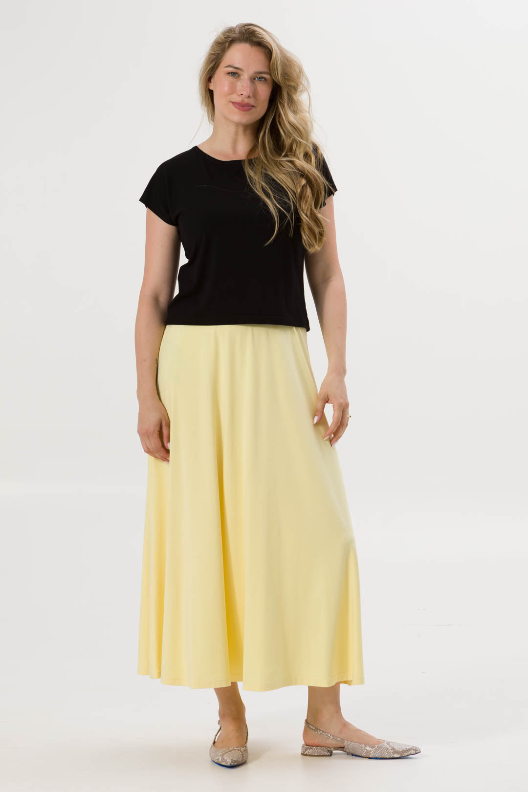 - LEXI to elegancka i wygodna spódnica, która sprawdzi się w wielu sytuacjach. W pasie ma lekkie marszczenie, które dodaje jej subtelnego uroku i kobiecości. Rozszerza się ku dołowi, co zapewnia swobodę ruchów oraz efektywnie układa się podczas chodzenia.