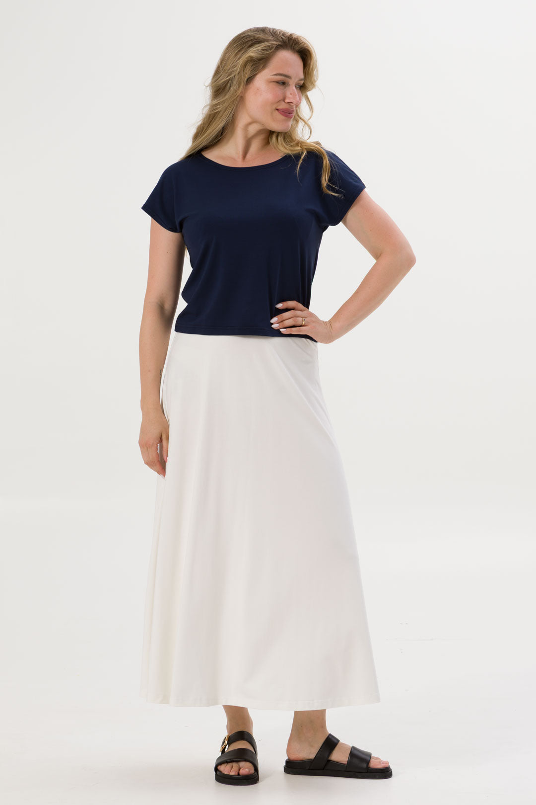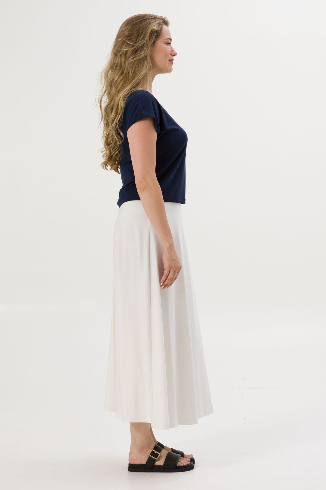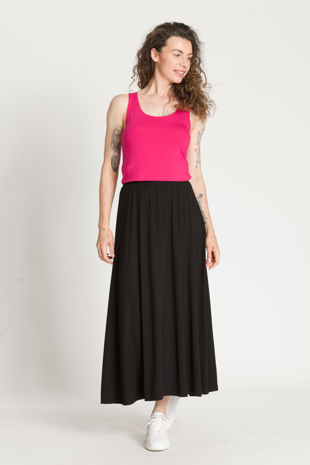 - LEXI to elegancka i wygodna spódnica, która sprawdzi się w wielu sytuacjach. W pasie ma lekkie marszczenie, które dodaje jej subtelnego uroku i kobiecości. Rozszerza się ku dołowi, co zapewnia swobodę ruchów oraz efektywnie układa się podczas chodzenia.