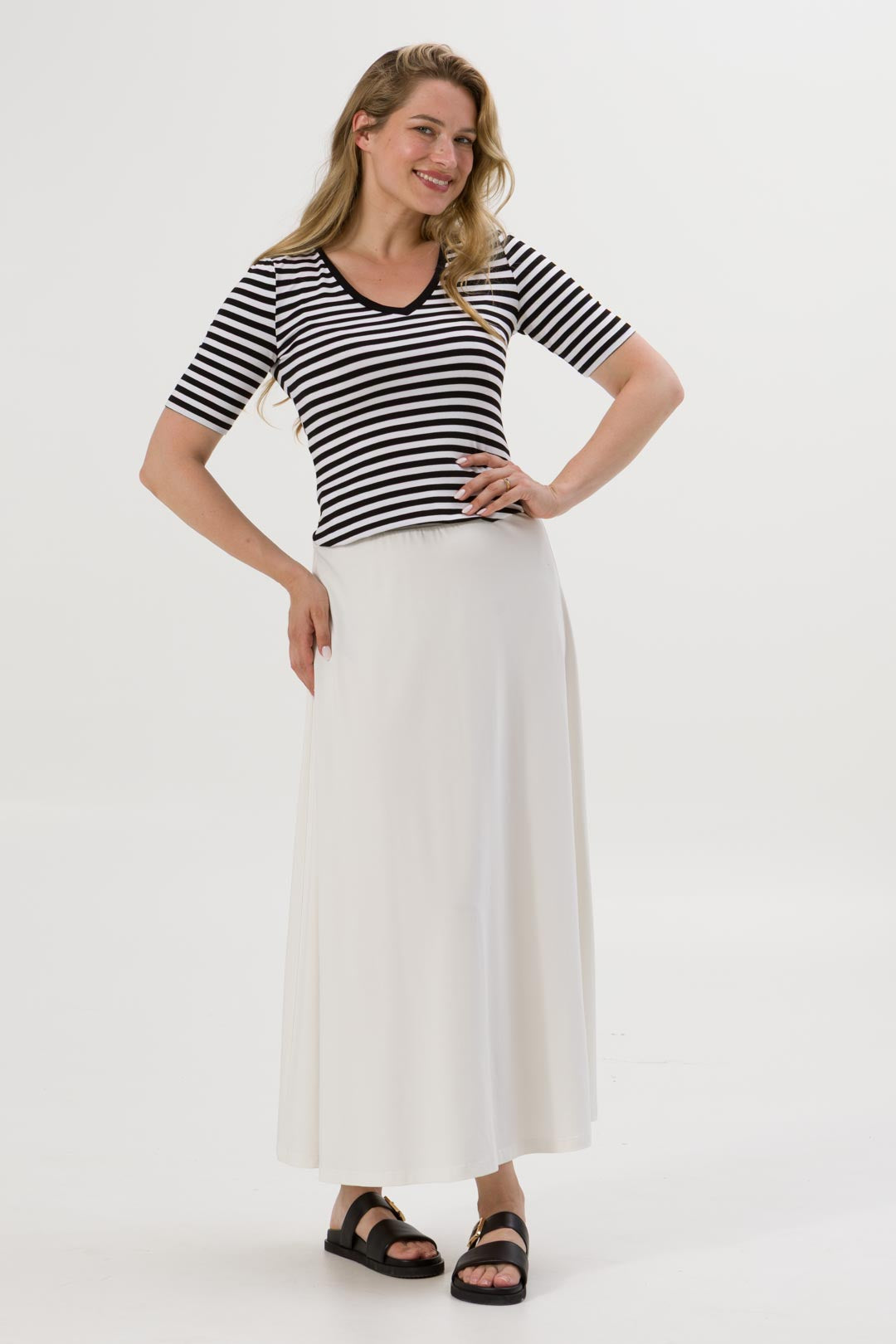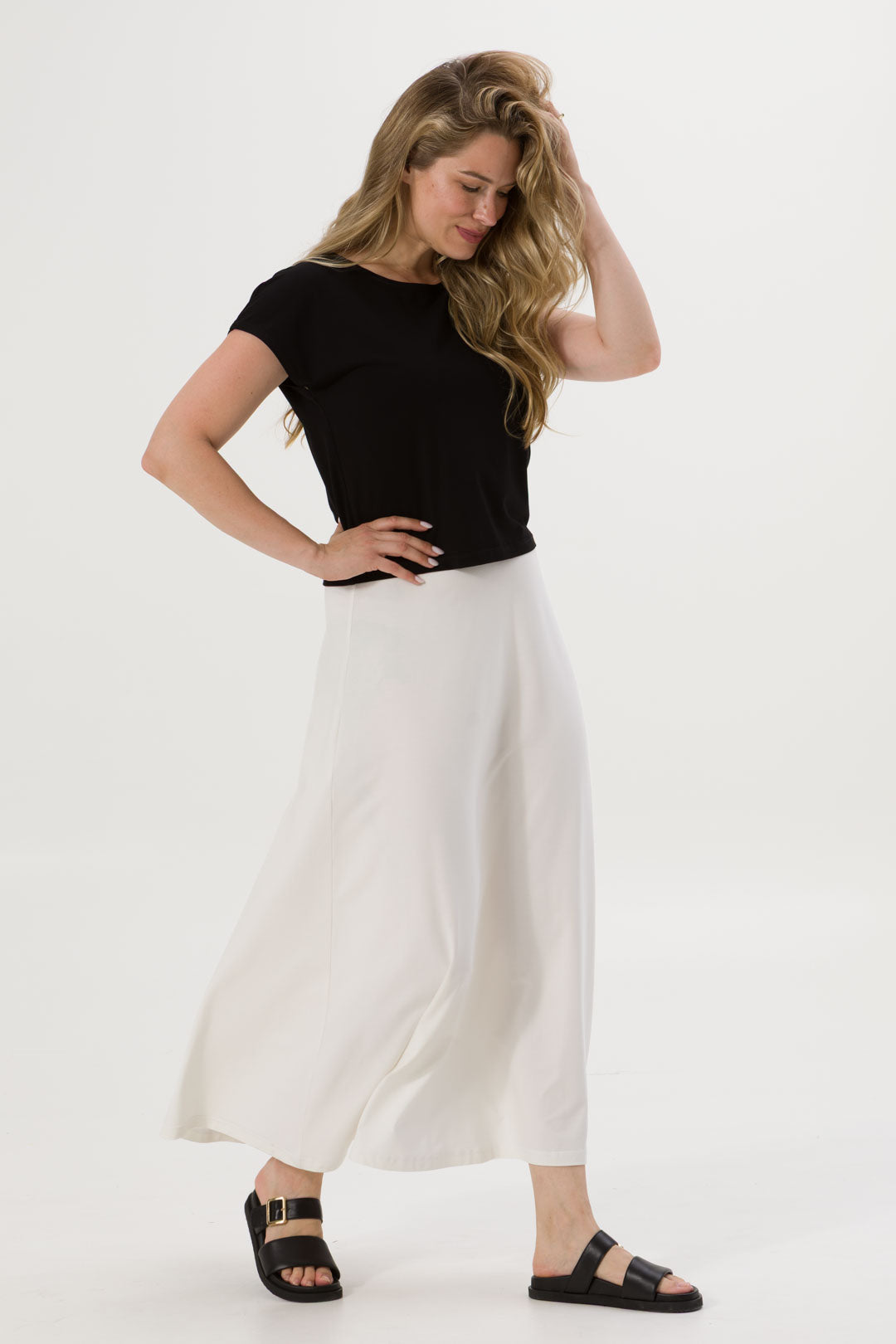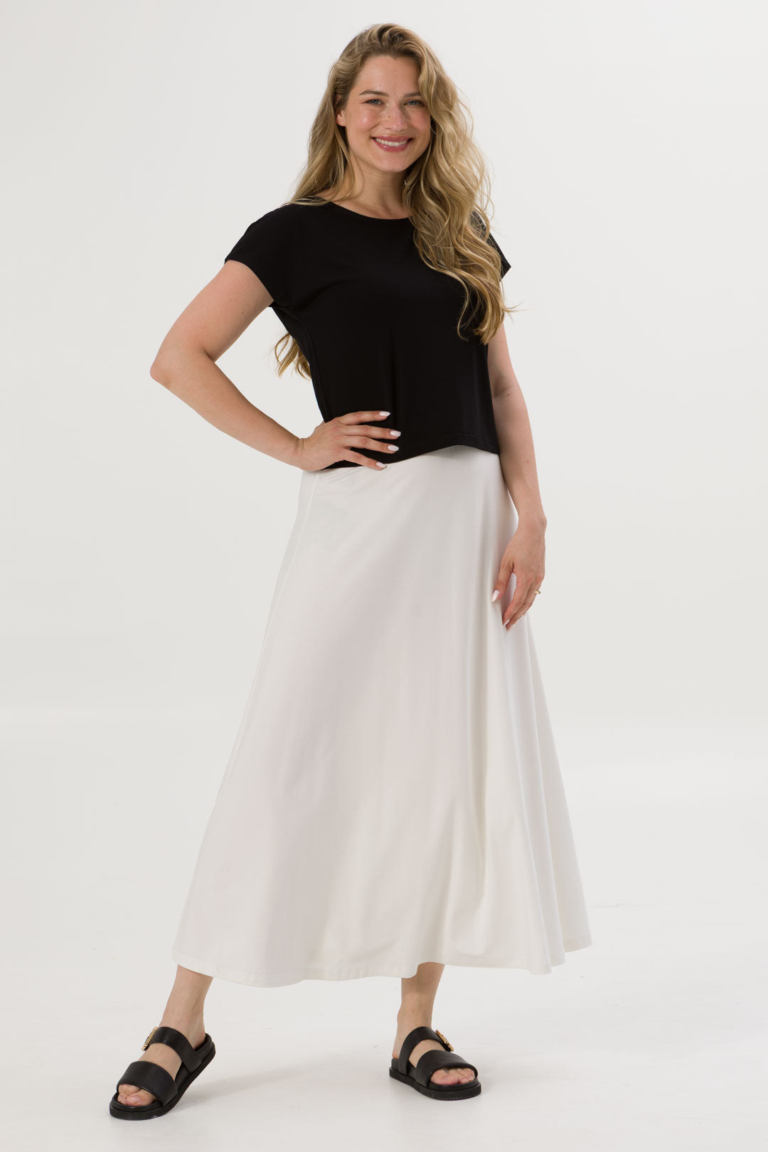 - LEXI to elegancka i wygodna spódnica, która sprawdzi się w wielu sytuacjach. W pasie ma lekkie marszczenie, które dodaje jej subtelnego uroku i kobiecości. Rozszerza się ku dołowi, co zapewnia swobodę ruchów oraz efektywnie układa się podczas chodzenia.