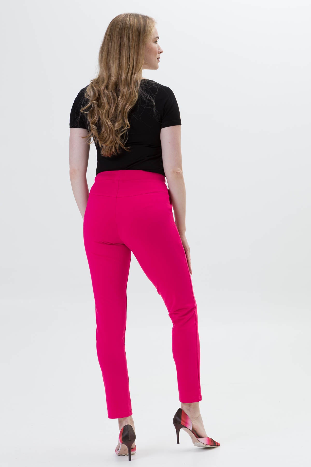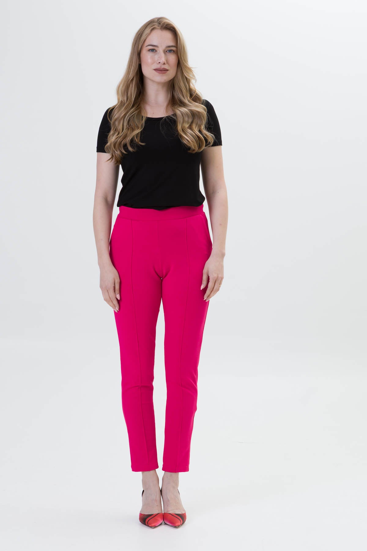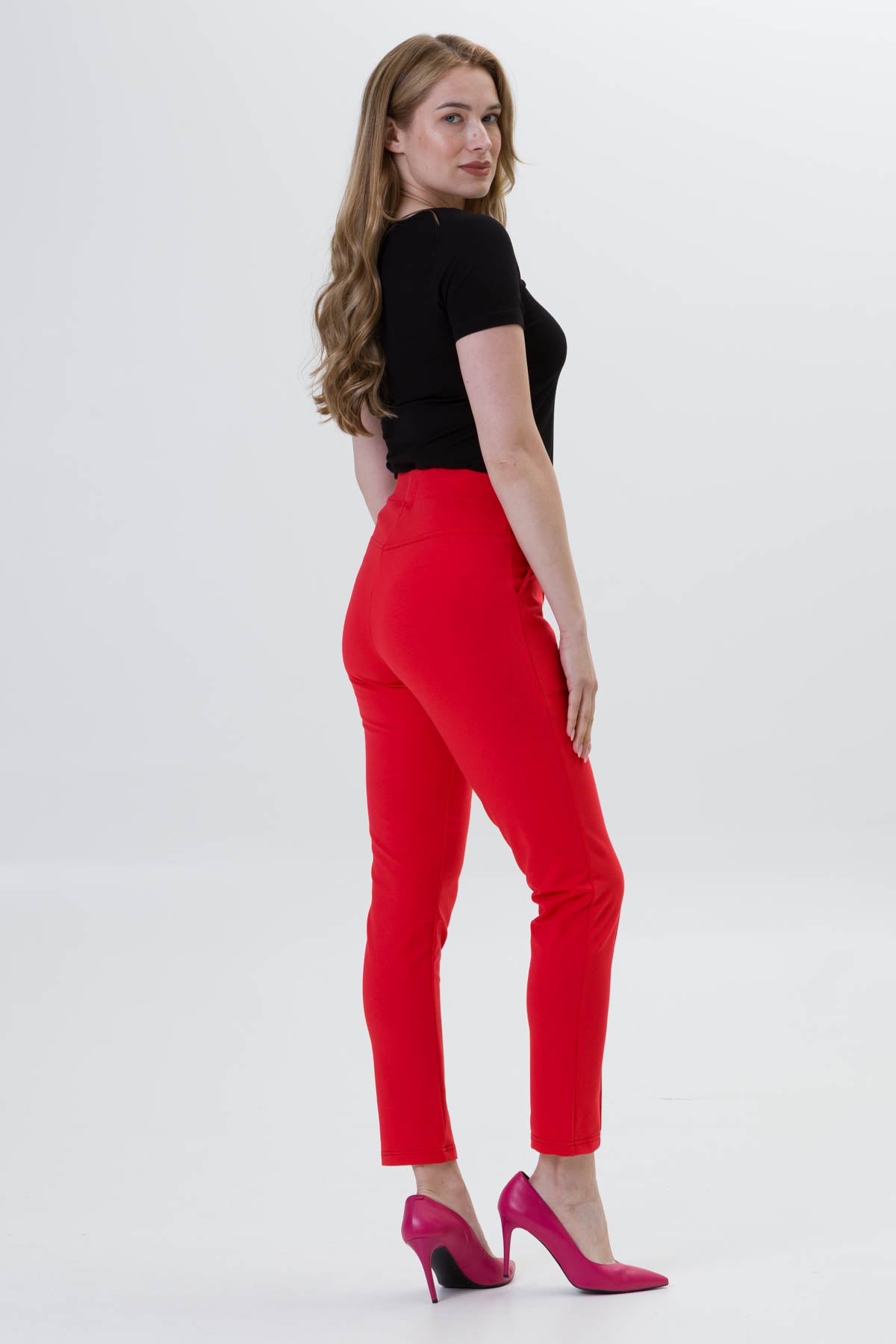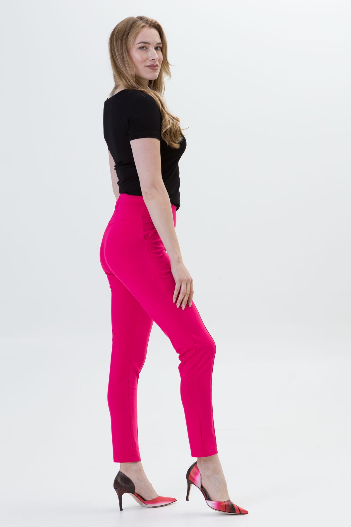 • Ozdobny karczek z tyłu pięknie modeluje pośladki. Te spodnie naprawdę potrafią przyciągnąć uwagę.