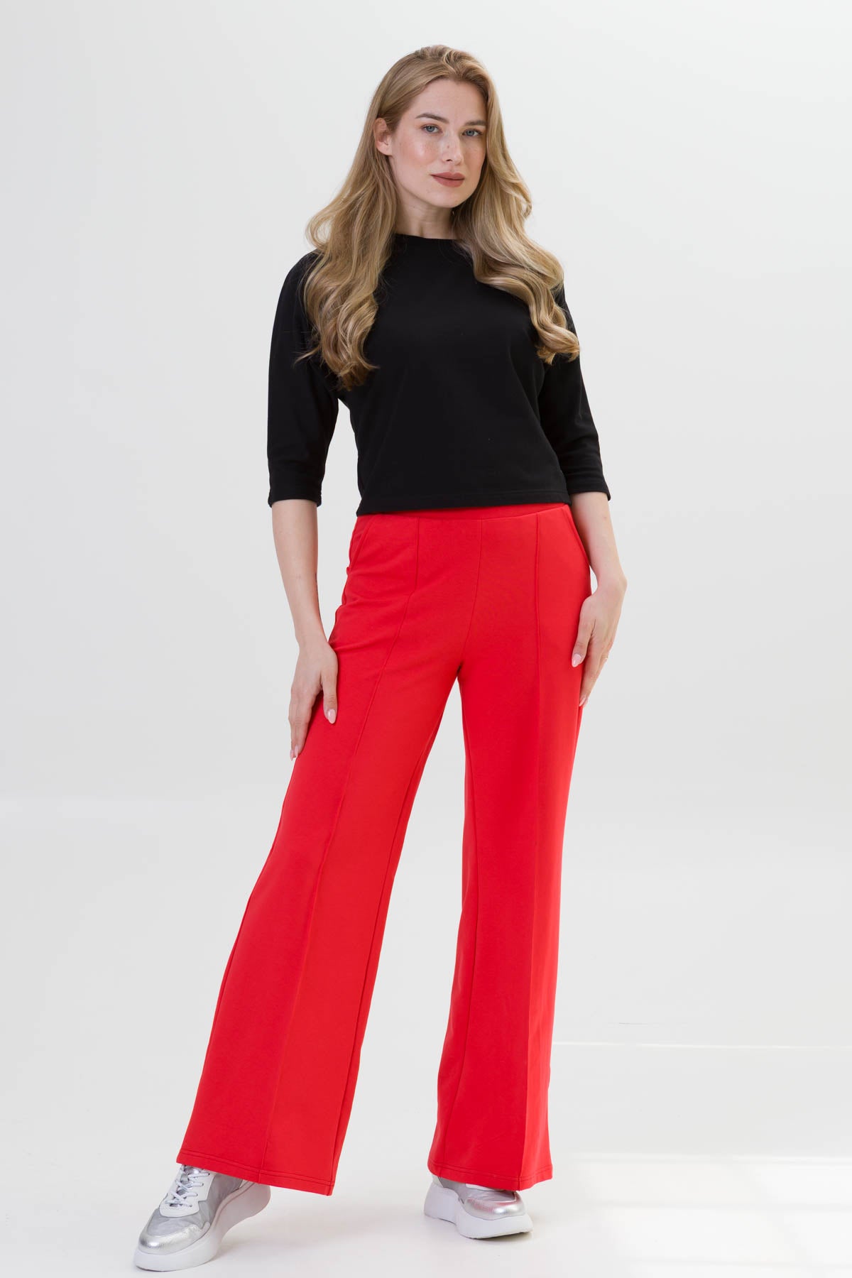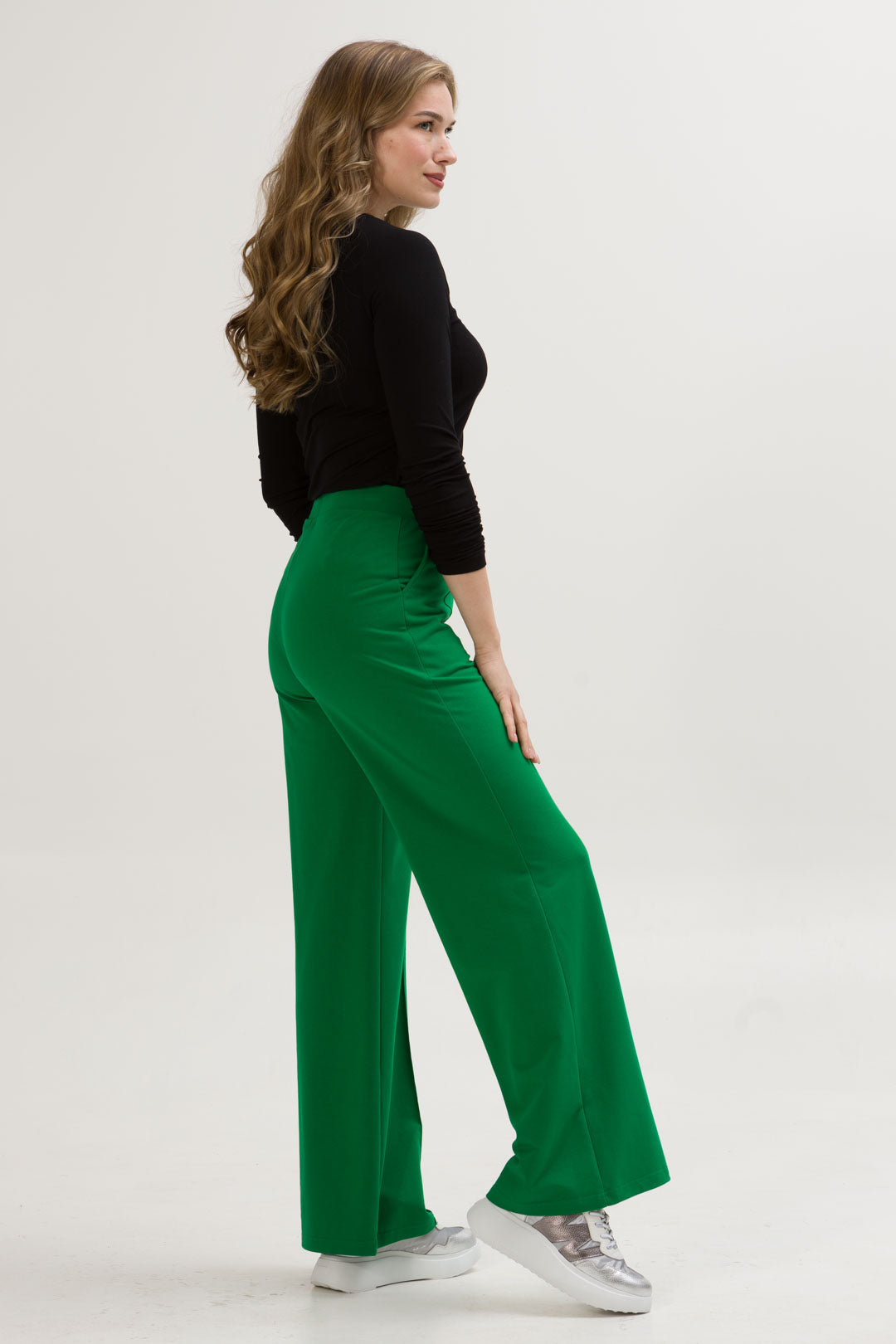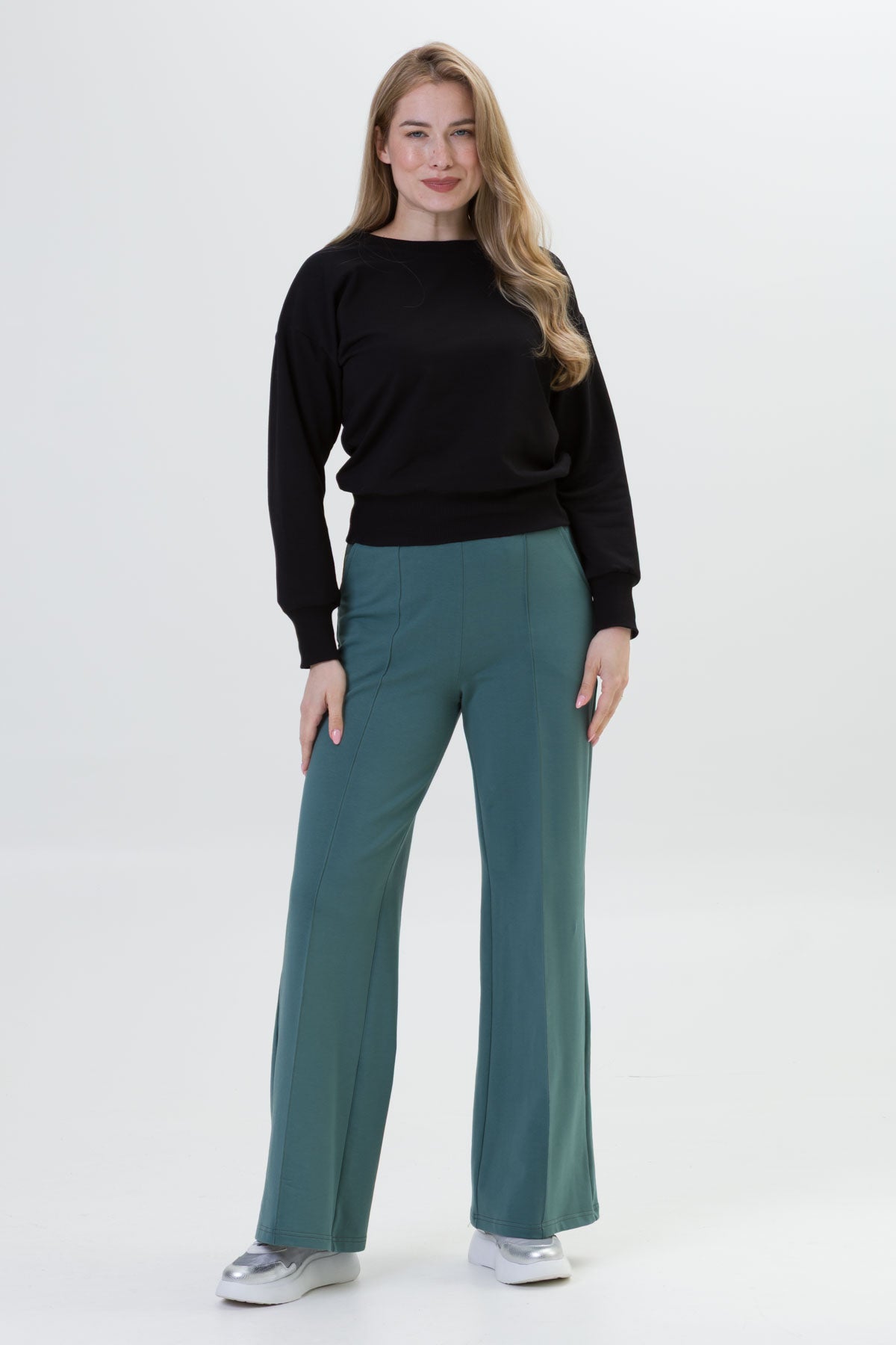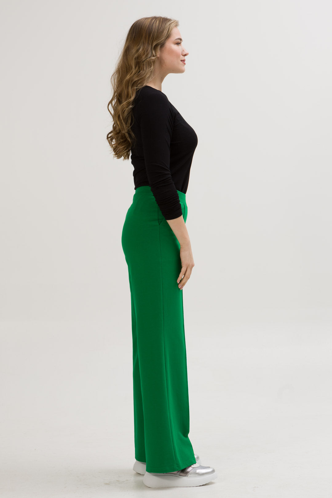 - SIENA to eleganckie spodnie o szerokiej nogawce i dopasowanej górze i wysokiej jakości dzianinie, co zapewnia komfort i styl na co dzień. Dzięki przeszyciom przypominającym kant na przedniej części nogawki, spodnie zyskują klasyczny wygląd.