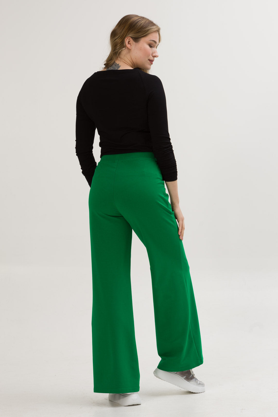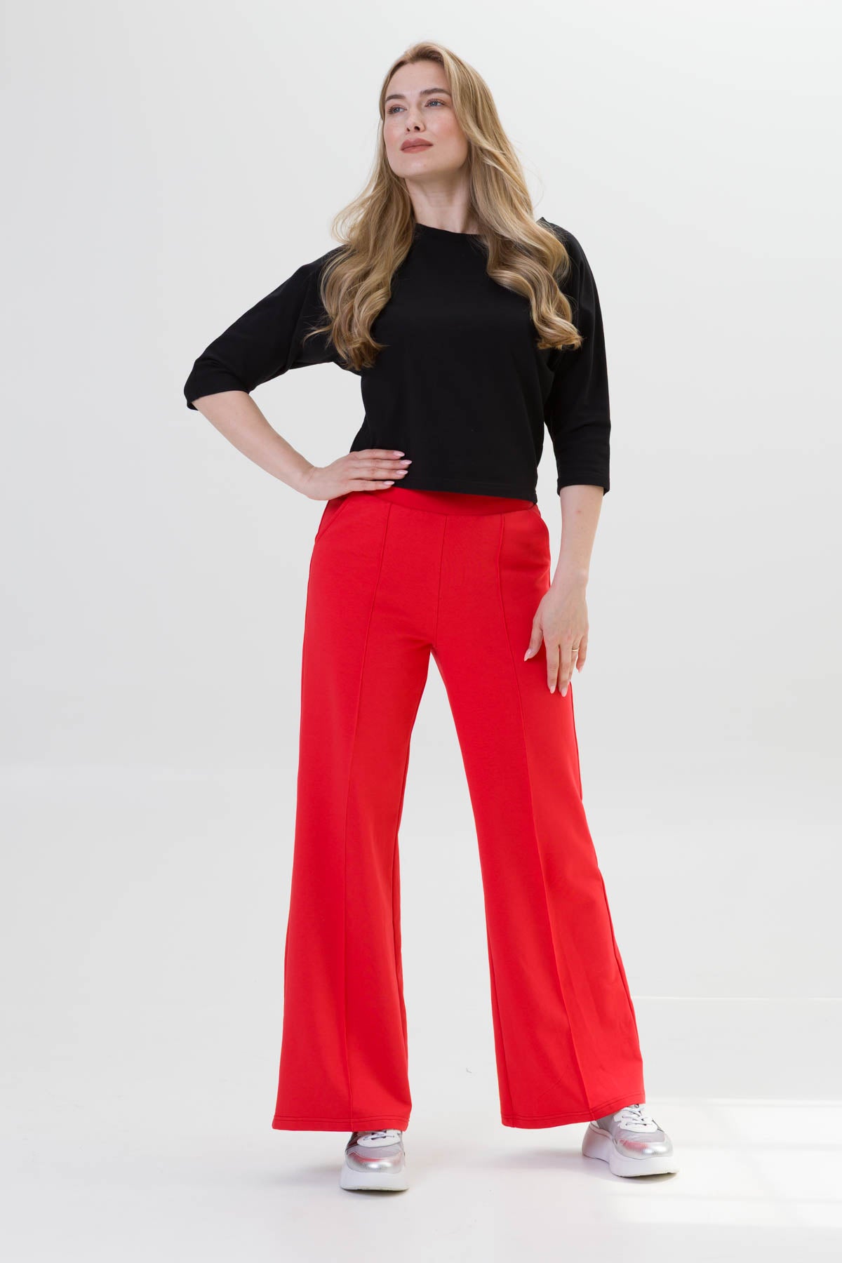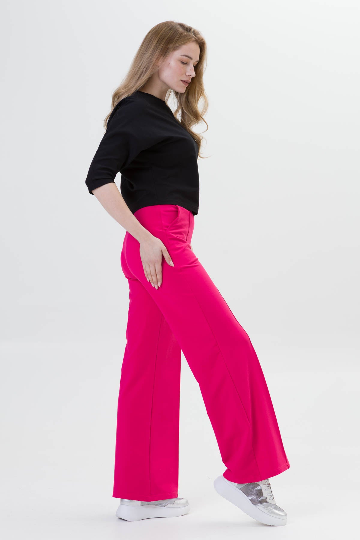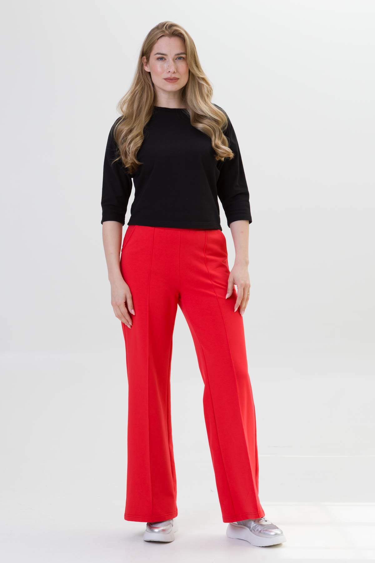 - SIENA to eleganckie spodnie o szerokiej nogawce i dopasowanej górze i wysokiej jakości dzianinie, co zapewnia komfort i styl na co dzień. Dzięki przeszyciom przypominającym kant na przedniej części nogawki, spodnie zyskują klasyczny wygląd.