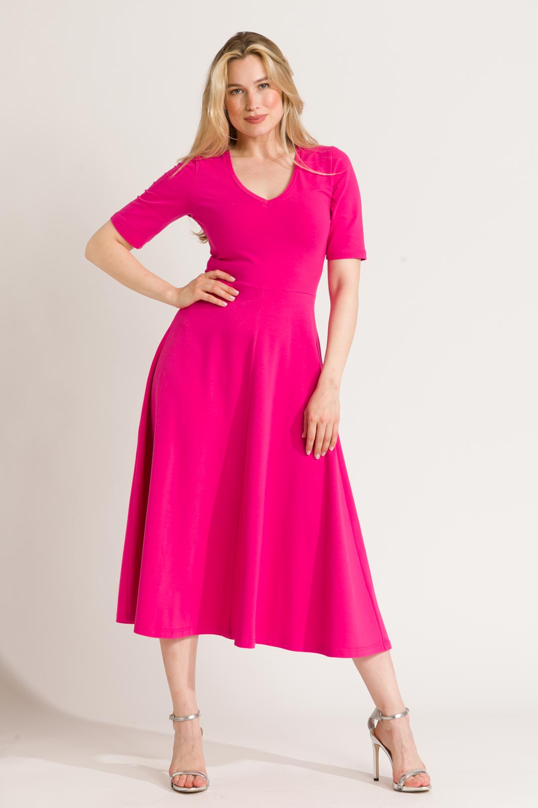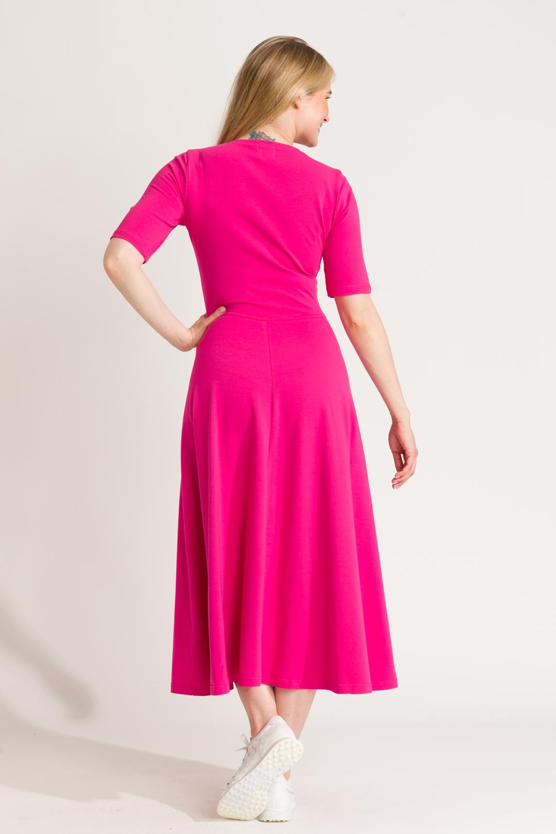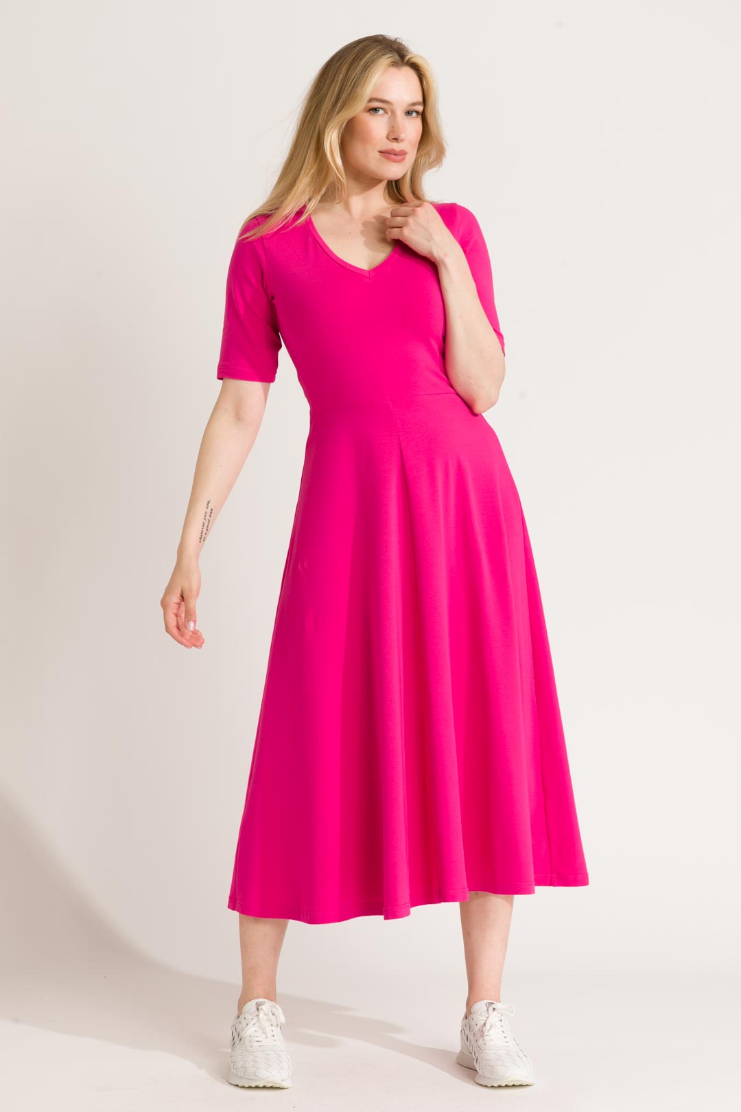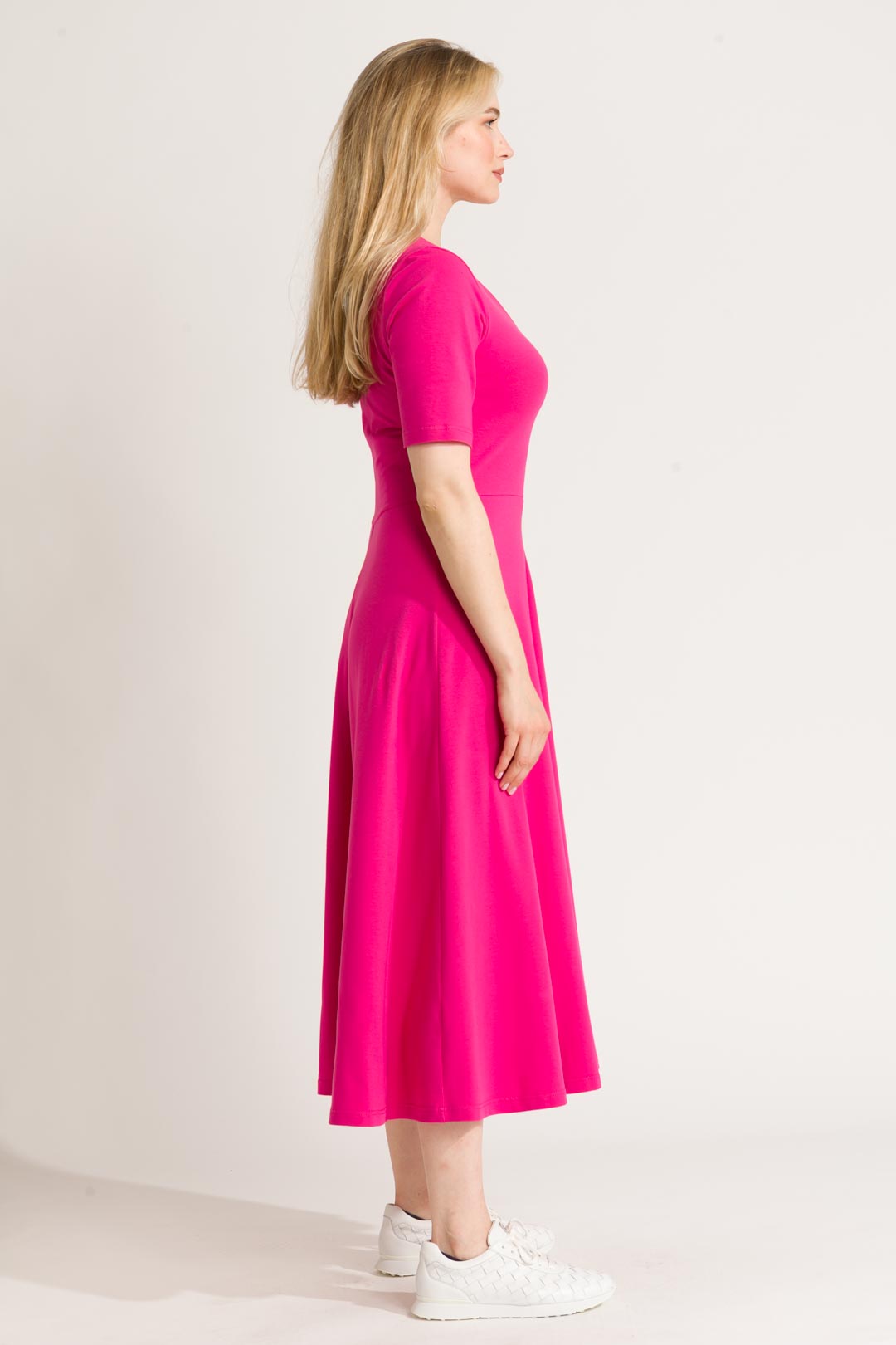Capri ma rozkloszowany dół, który składa się z 4 klinów. Dekolt jest wykończony pliską w kolorze dzianiny, a rękaw główkowy o długości bardzo kobiecej i eleganckiej. W talii jest pięknie wymodelowana, co nadaje jej stylu.