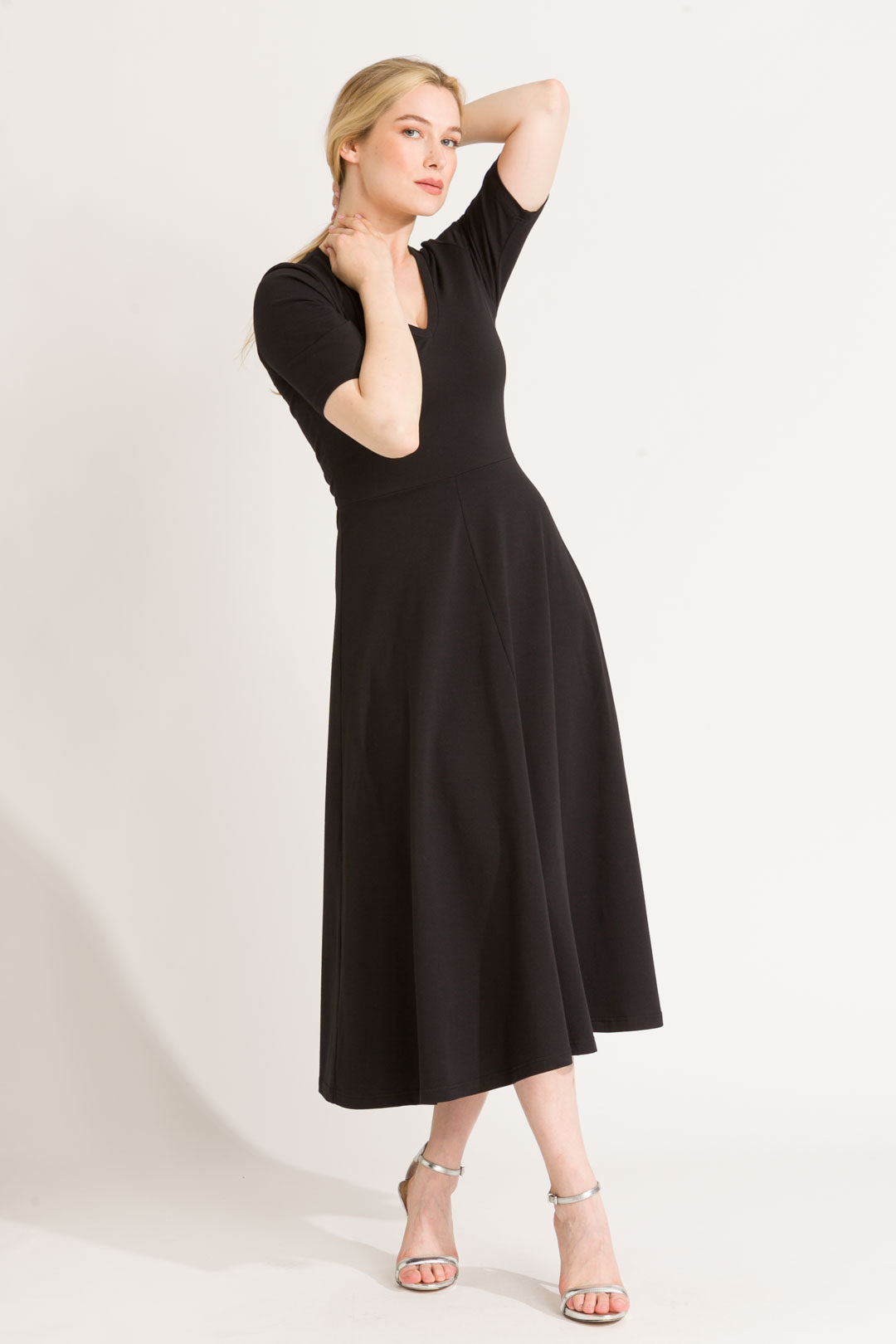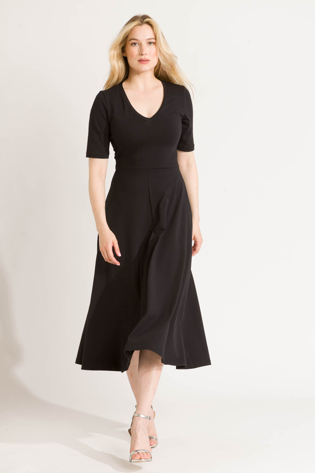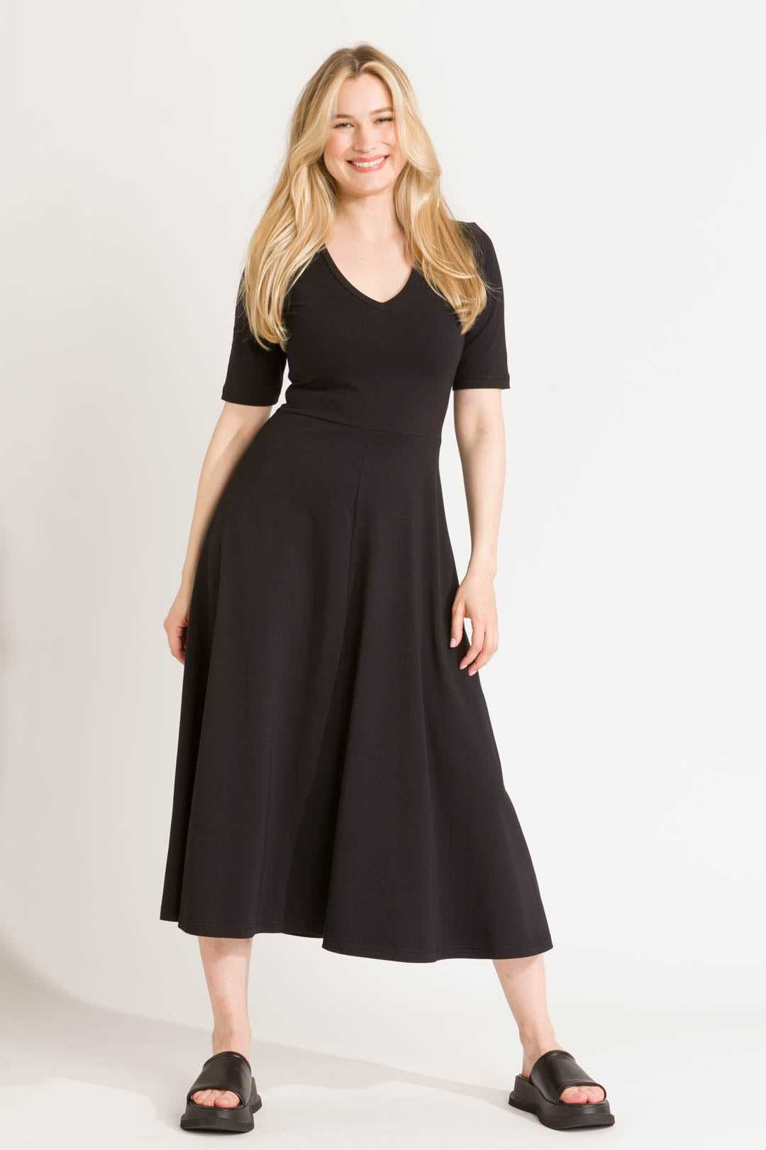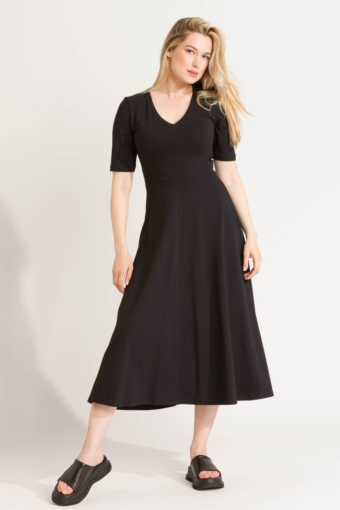 Capri ma rozkloszowany dół, który składa się z 4 klinów. Dekolt jest wykończony pliską w kolorze dzianiny, a rękaw główkowy o długości bardzo kobiecej i eleganckiej. W talii jest pięknie wymodelowana, co nadaje jej stylu.