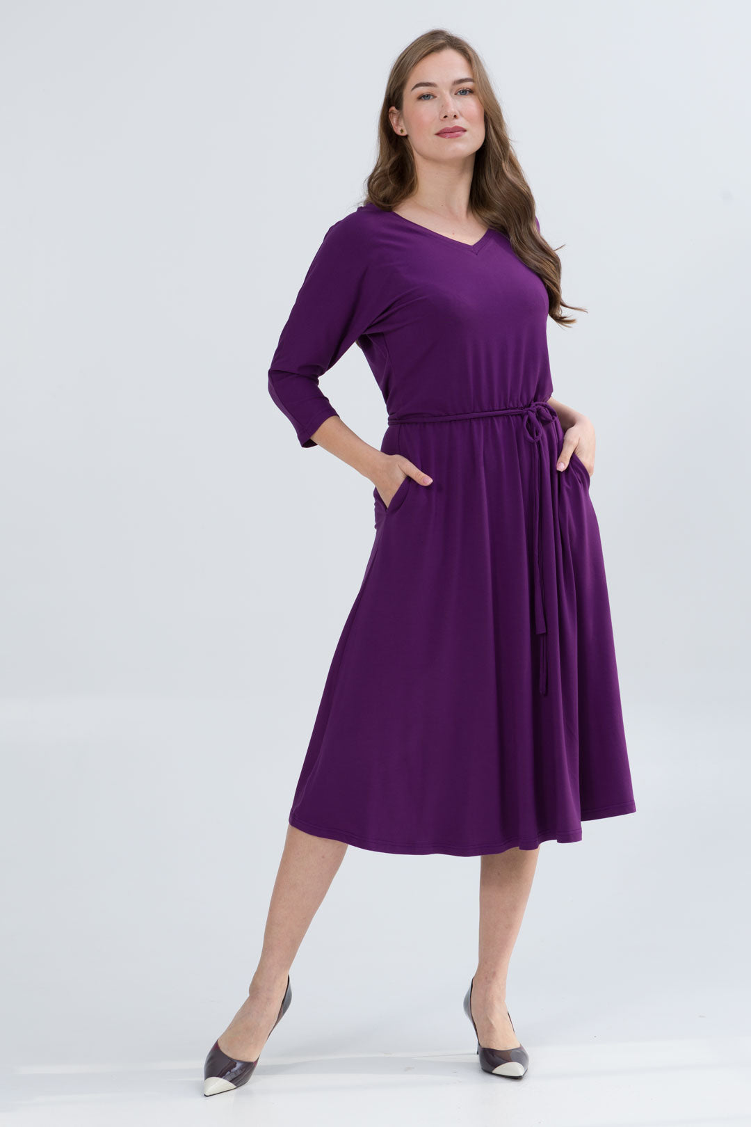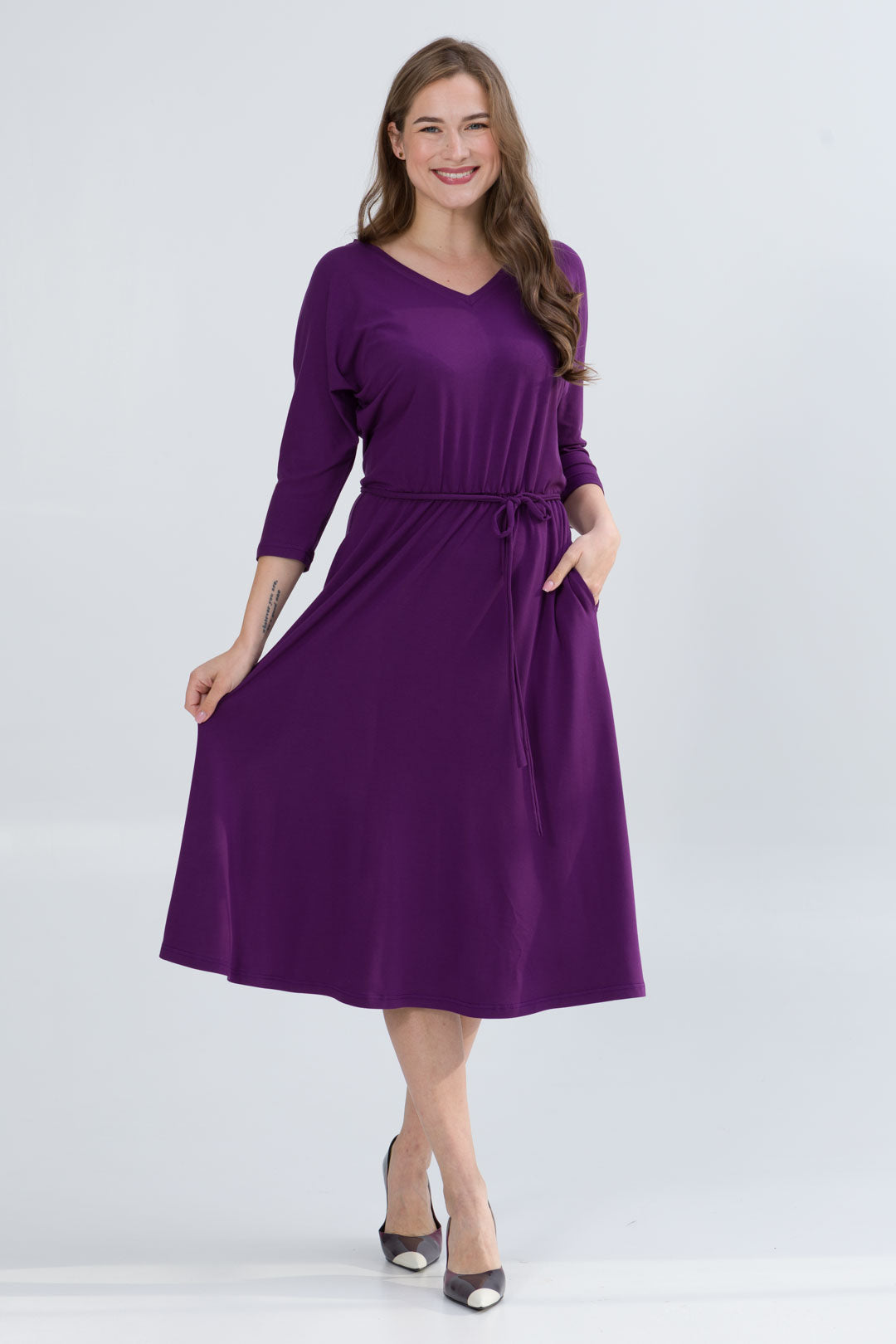 - Sukienka LAYLA to połączenie elegancji i komfortu, idealna na każdą okazję. Kimonowa góra z dekoltem w kształcie litery V i rękaw 3/4 subtelnie podkreśla górną część sylwetki.