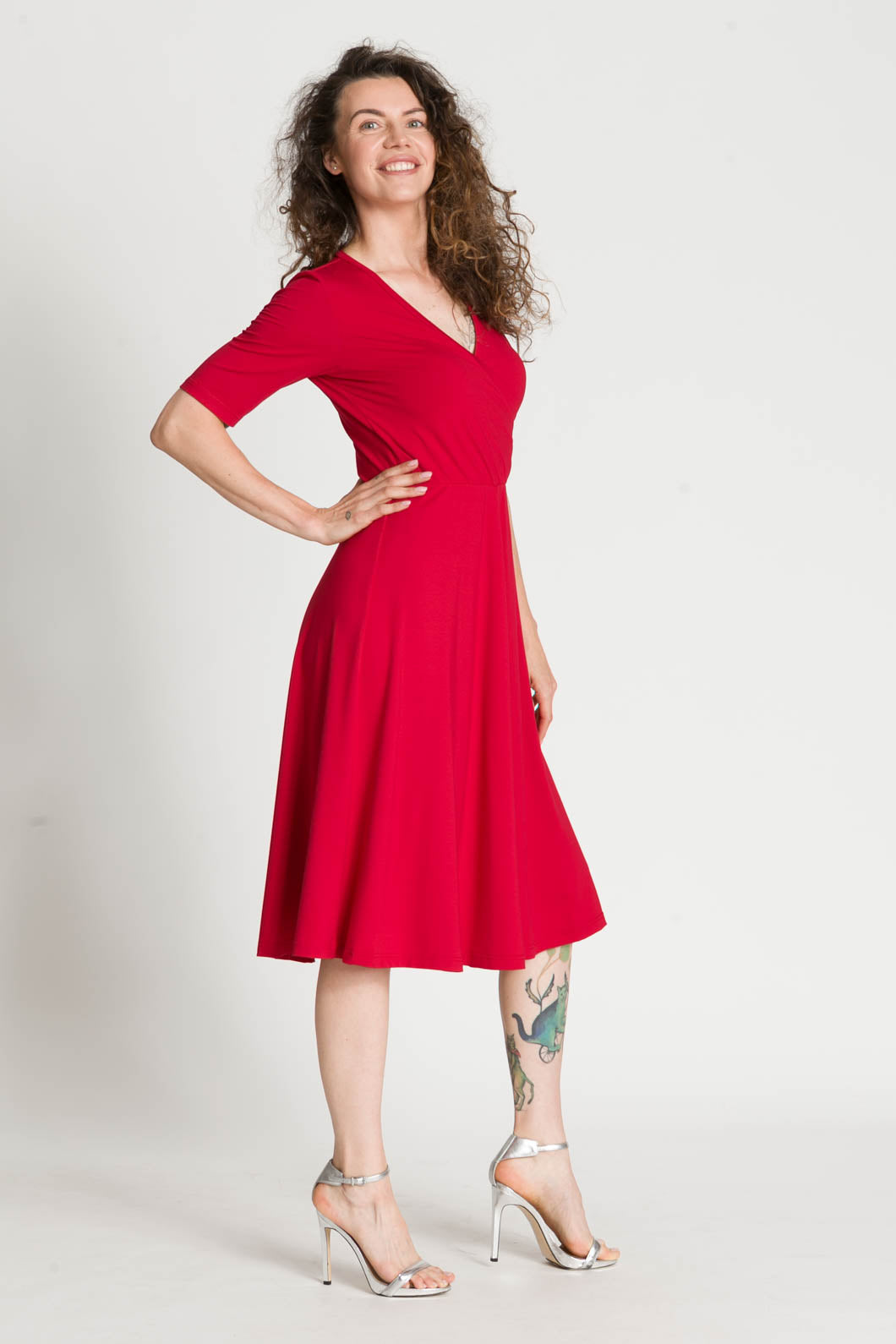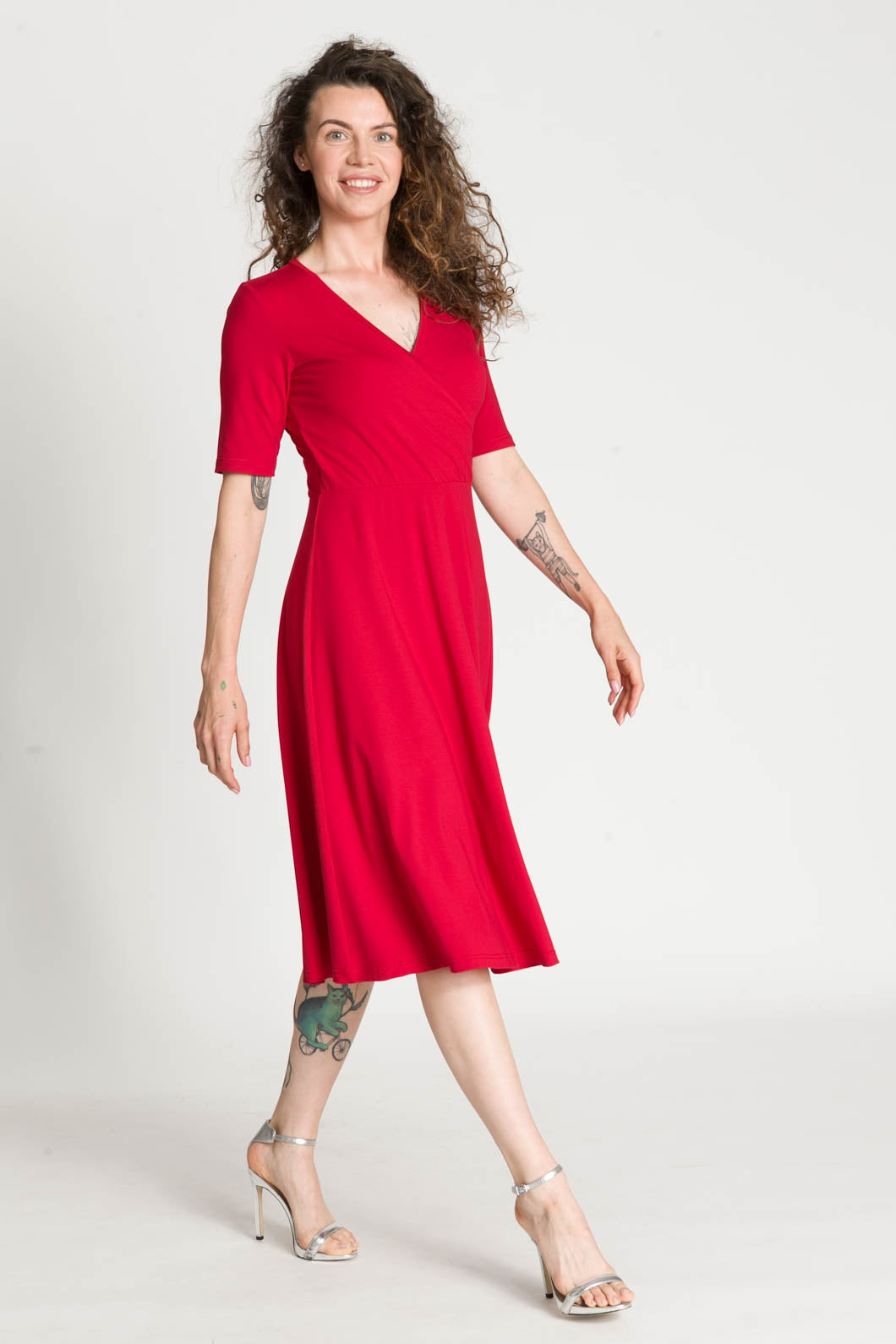 - RITA jest uszyta z polskiej naturalnej wiskozy, dzięki czemu jest przewiewna i bezpieczna dla skóry. Kopertowy dekolt wydłuża szyję i podkreśla biust. Dekolt jest wykończony wypustką, przez co nie będzie się rozchodził. W pasie wszyliśmy cienką gumkę, które pozwoli na idealne dopasowanie sukienki do Twoich wymiarów.