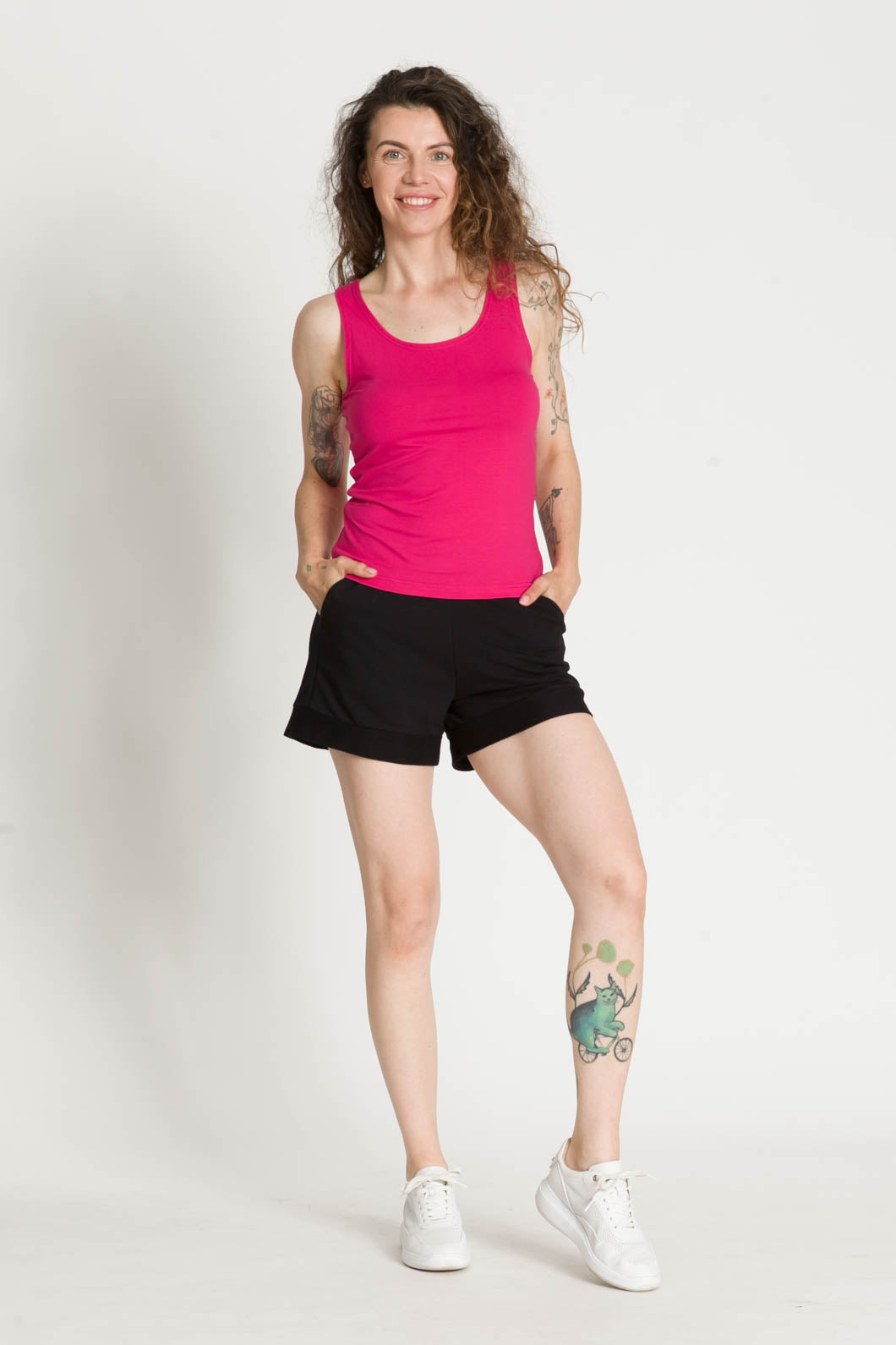 - Szorty Sunny są bardzo wygodne i stylowe. Dzięki ukrytej gumie w pasie idealnie dopasowują się do sylwetki, a wpuszczane kieszenie pomieszczą wszystkie skarby. Sunny łączy w sobie funkcjonalność z estetyką.