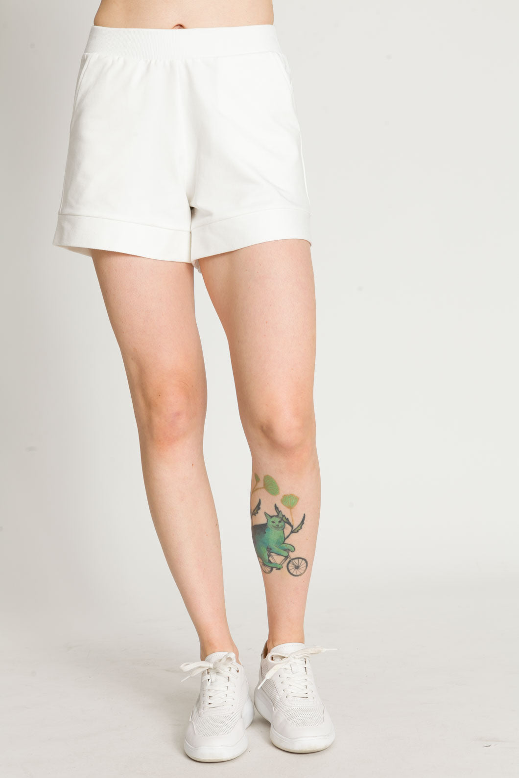 Wykończenie nogawek odwróconą dzianiną z pętelką na wierzchu dodaje im charakteru i stylu. Są idealnym wyborem na letnie dni, łącząc w sobie komfort z modnym wyglądem.