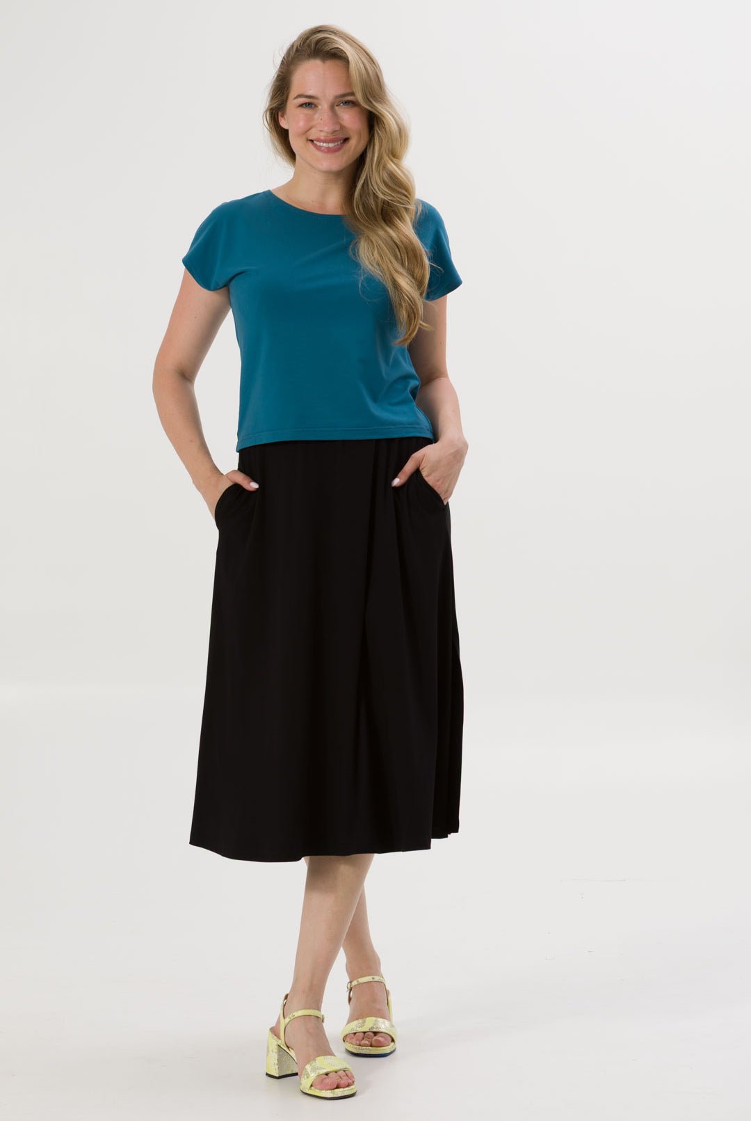 Wszystko zaczęło się od stworzenia projektów, w których starałam się zawrzeć wygodę, kobiecość, elegancję i lekkość. Następnie podjęła się doboru polskich certyfikowanych dzianin, które musiały spełniać trzy zadania - być delikatne dla skóry, wytrzymałe i po prostu piękne. Całą resztą zajęła się nasza doświadczona i niezastąpiona krawcowa, która ręcznie uszyła każdą spódnicę dostępną w sklepie - NANCY, IGA, KATE, LONNA i inne modele powstały w całości w Świdnicy!