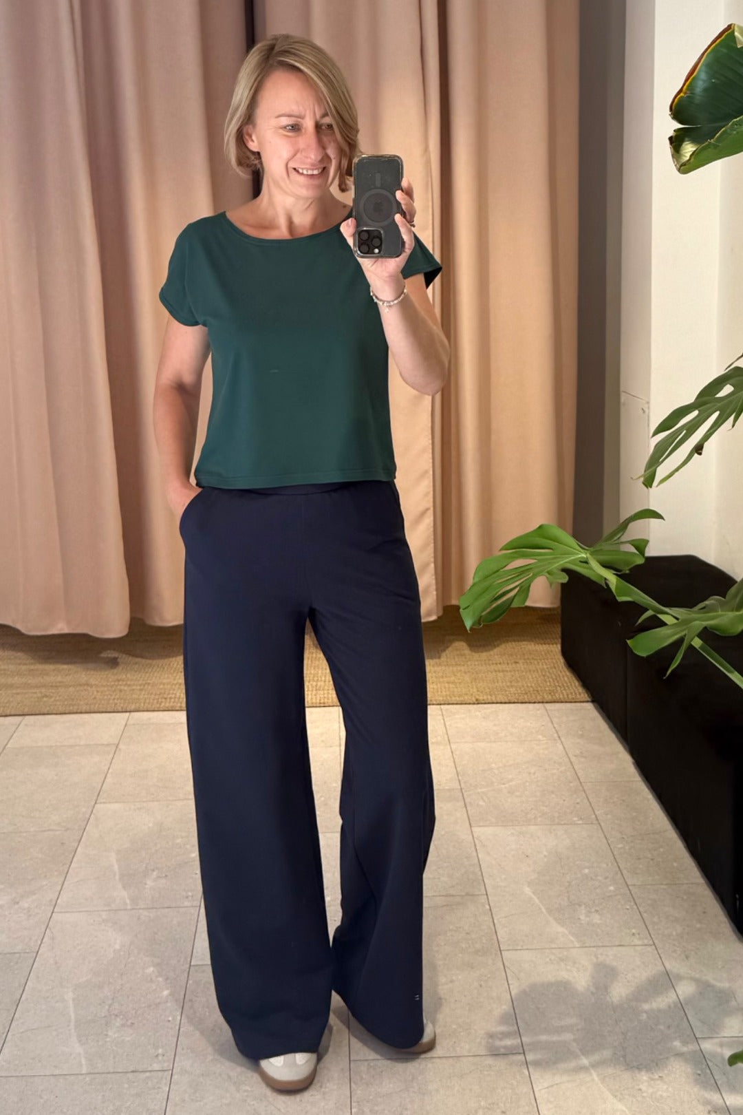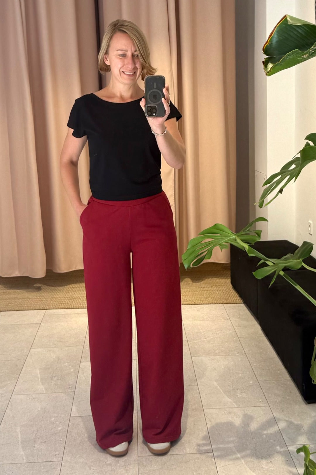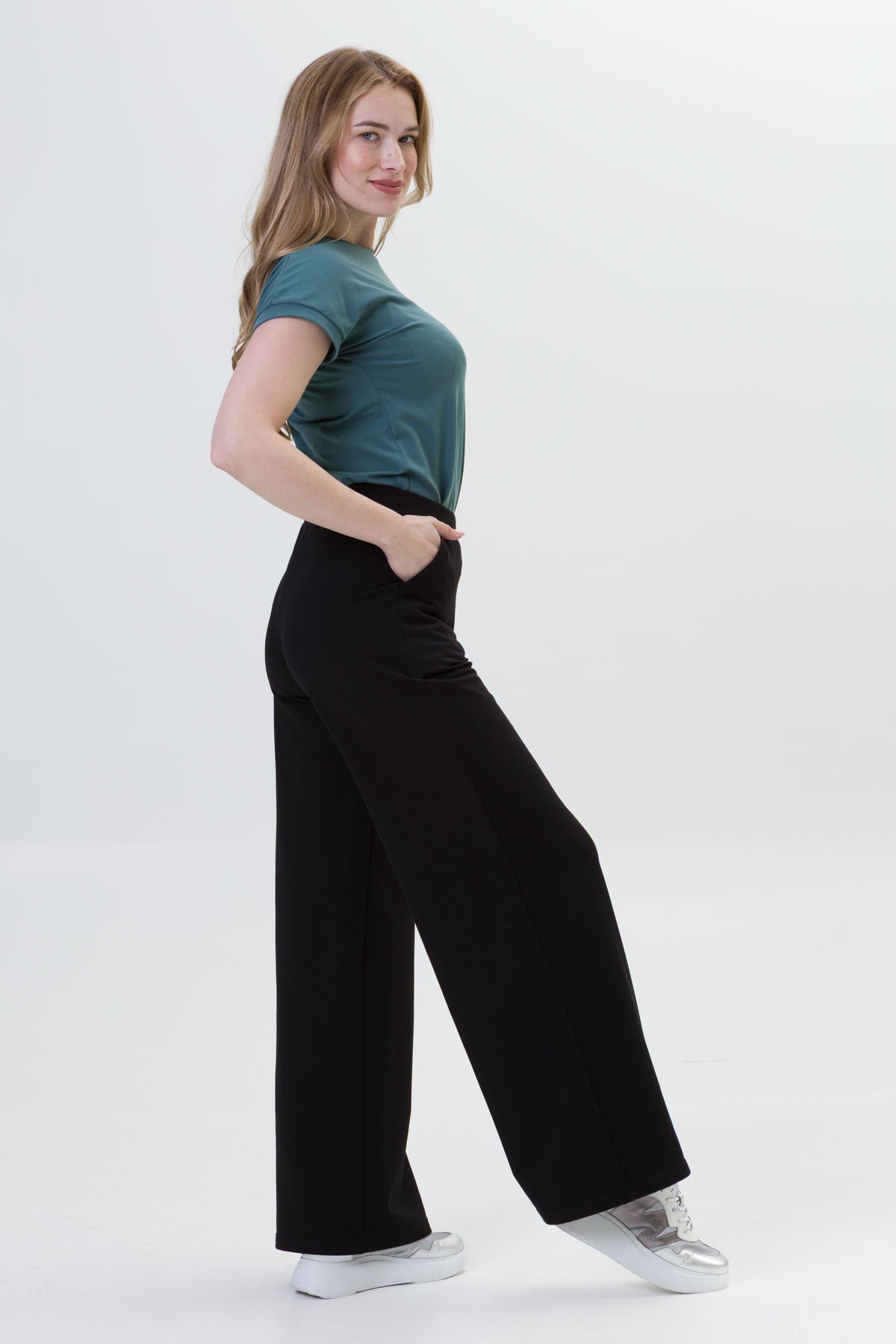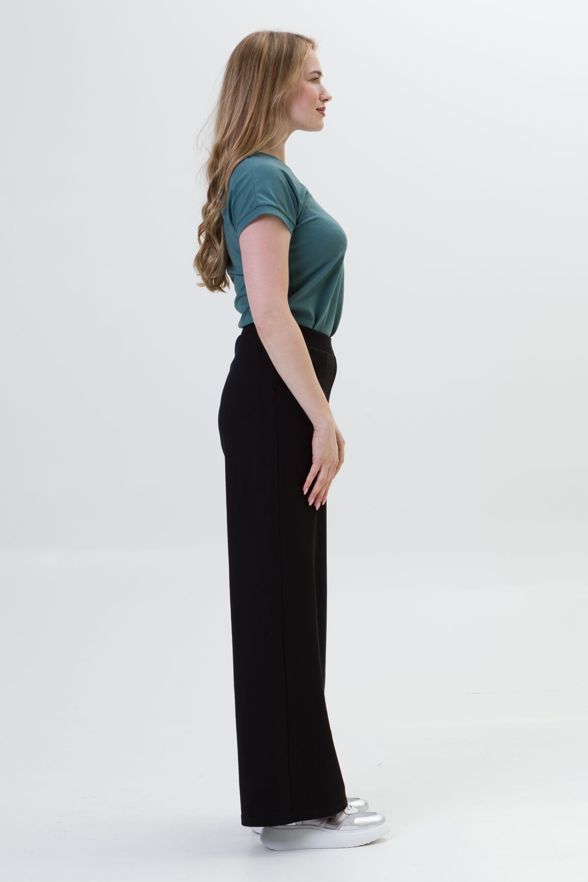 Spodnie EMMA to połączenie minimalistycznej formy z maksymalnym komfortem noszenia. Uszyte z miękkiej dzianiny bawełnianej, pięknie układają się na sylwetce i są przyjemne w dotyku - idealne na co dzień, do pracy czy na luźne spotkanie.