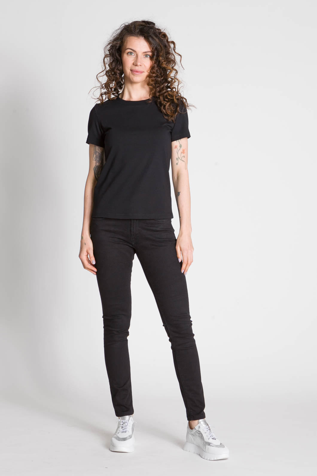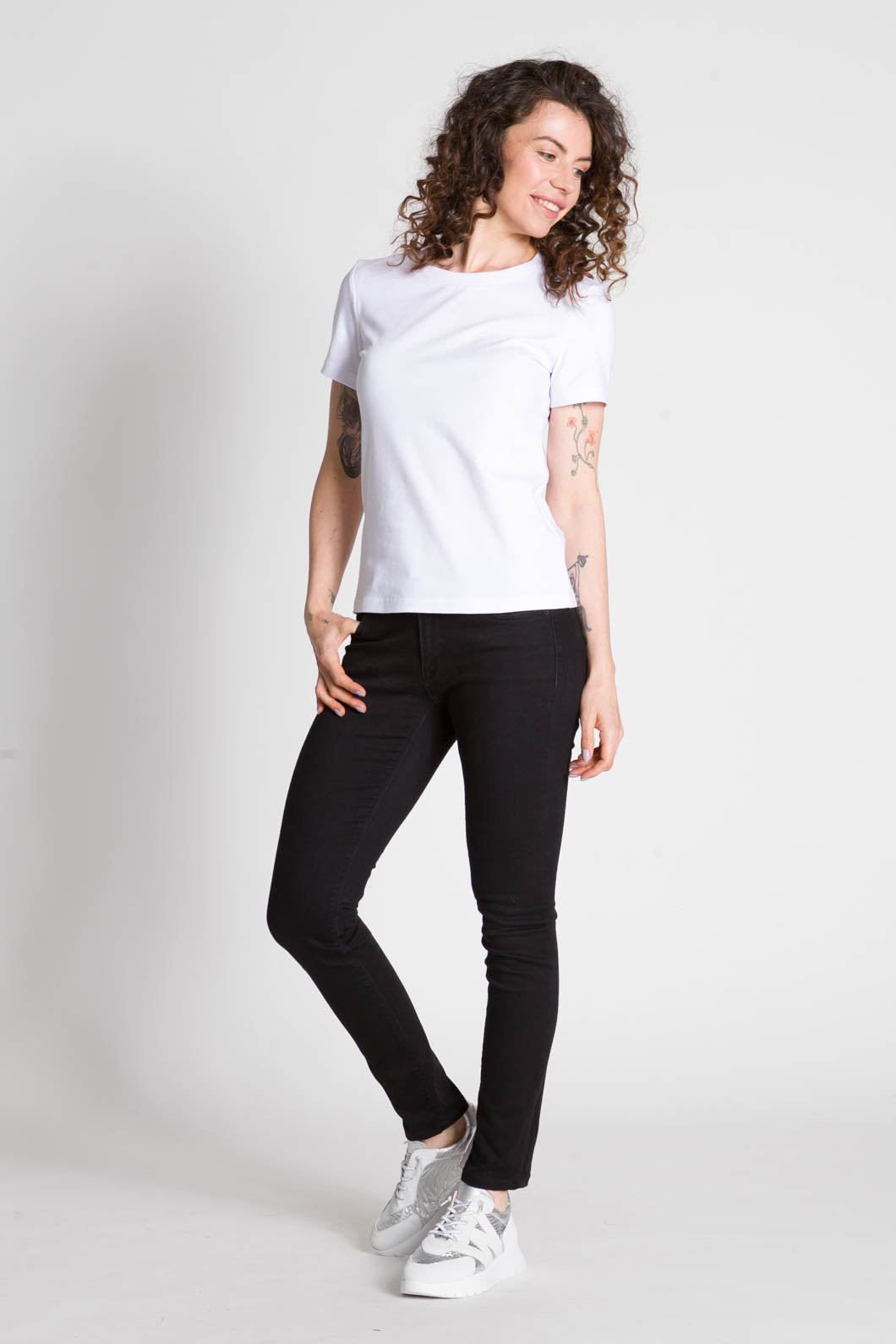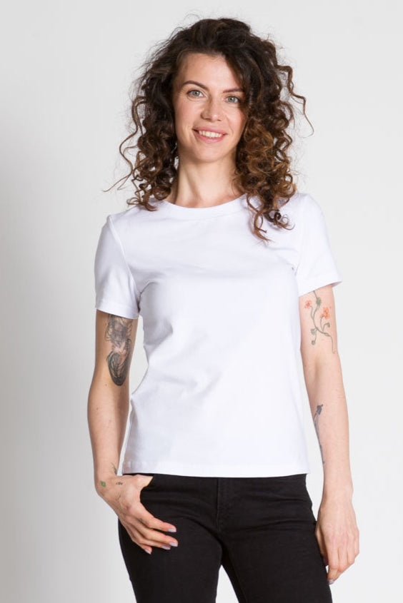 - Ta dopasowana bluzka z krótkim rękawem to esencja klasyki w nowoczesnym wydaniu. Uszyta z wysokogatunkowej bawełny, gwarantuje komfort i przewiewność, a jednocześnie zachowuje swój kształt przez cały dzień.