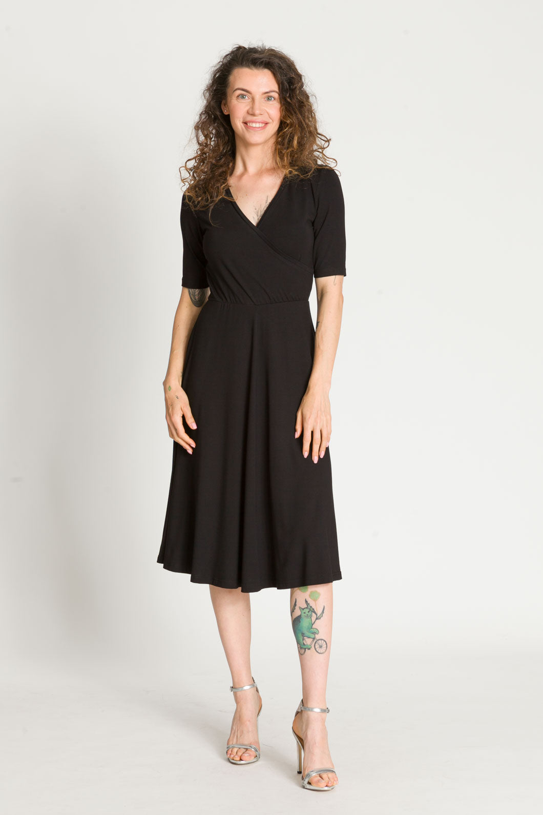 - RITA jest uszyta z polskiej naturalnej wiskozy, dzięki czemu jest przewiewna i bezpieczna dla skóry. Kopertowy dekolt wydłuża szyję i podkreśla biust. Dekolt jest wykończony wypustką, przez co nie będzie się rozchodził. W pasie wszyliśmy cienką gumkę, które pozwoli na idealne dopasowanie sukienki do Twoich wymiarów.